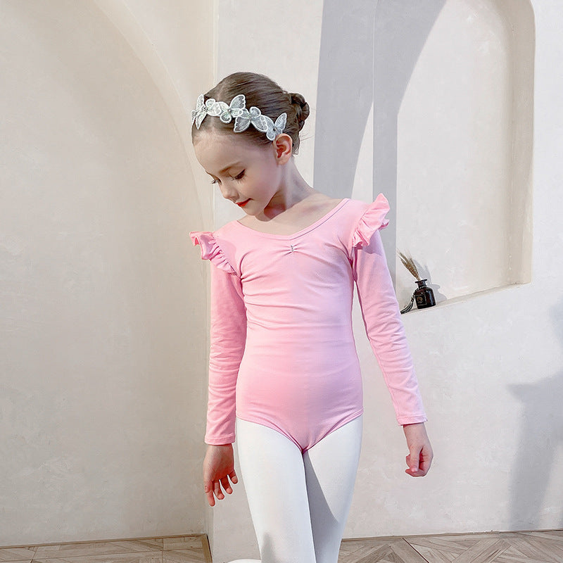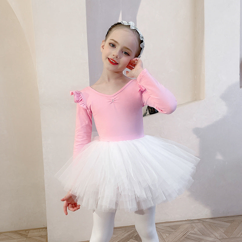 Ballet Leotards for kids short/long slevee Dance Dancer Outfit Rhythmic Gymnastics Bodysuit Dress Skate pink