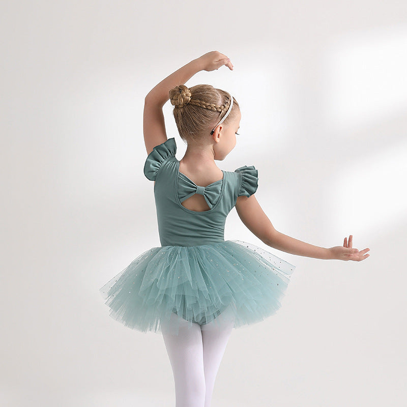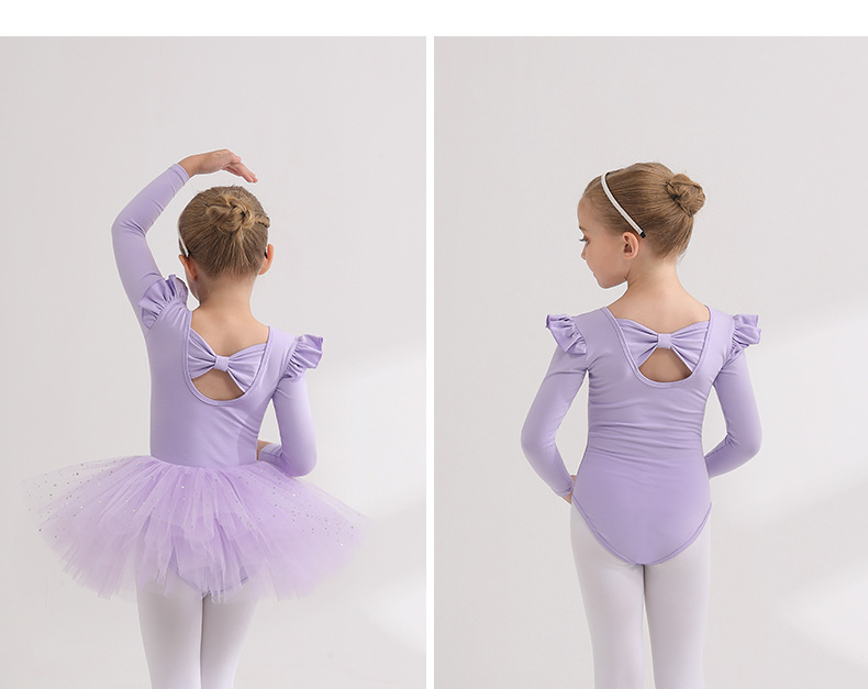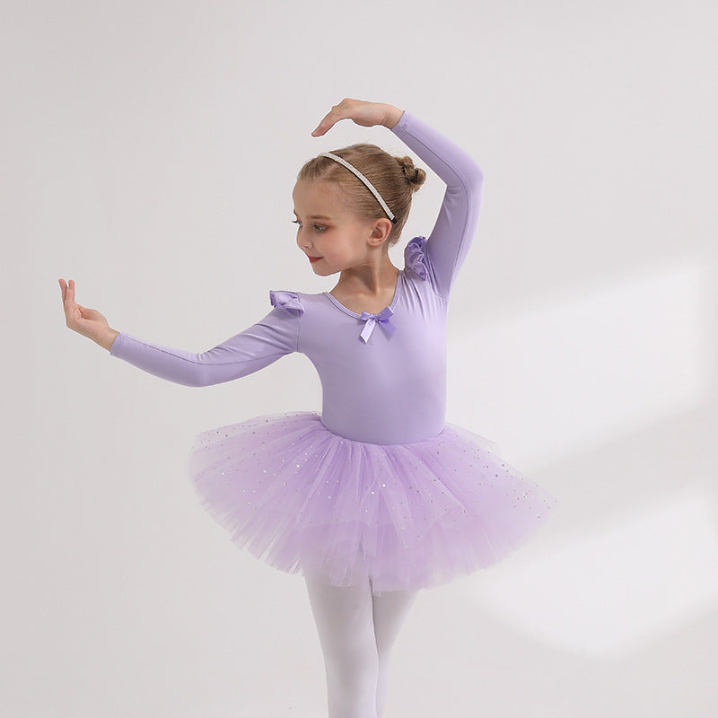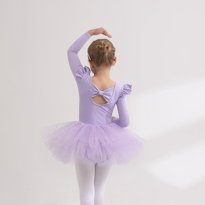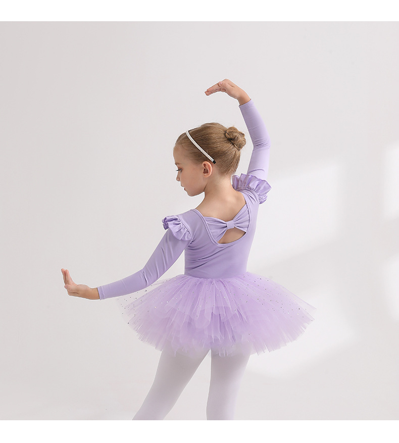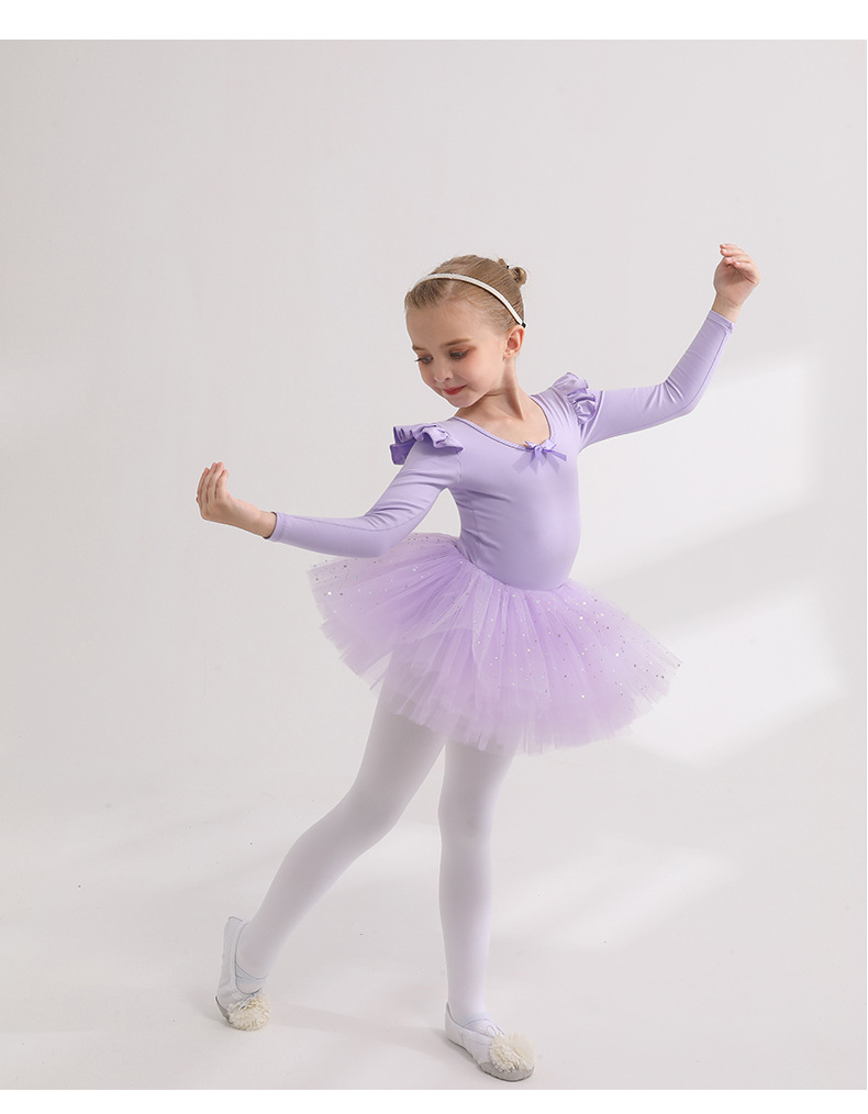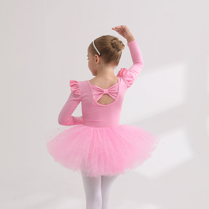 Children sparkly chiffon Dance Dress Separate Detachable Tutu Dance Costume cotton short/long sleeve risscross Back