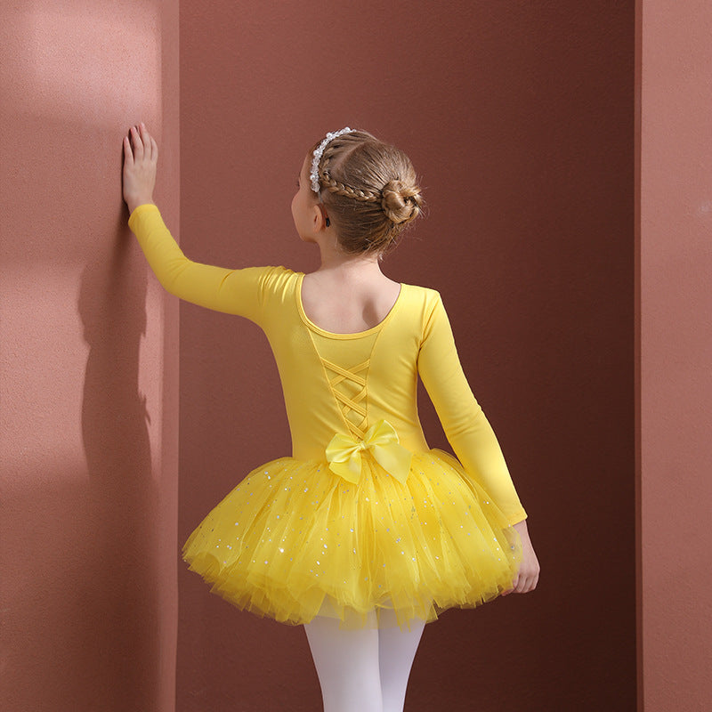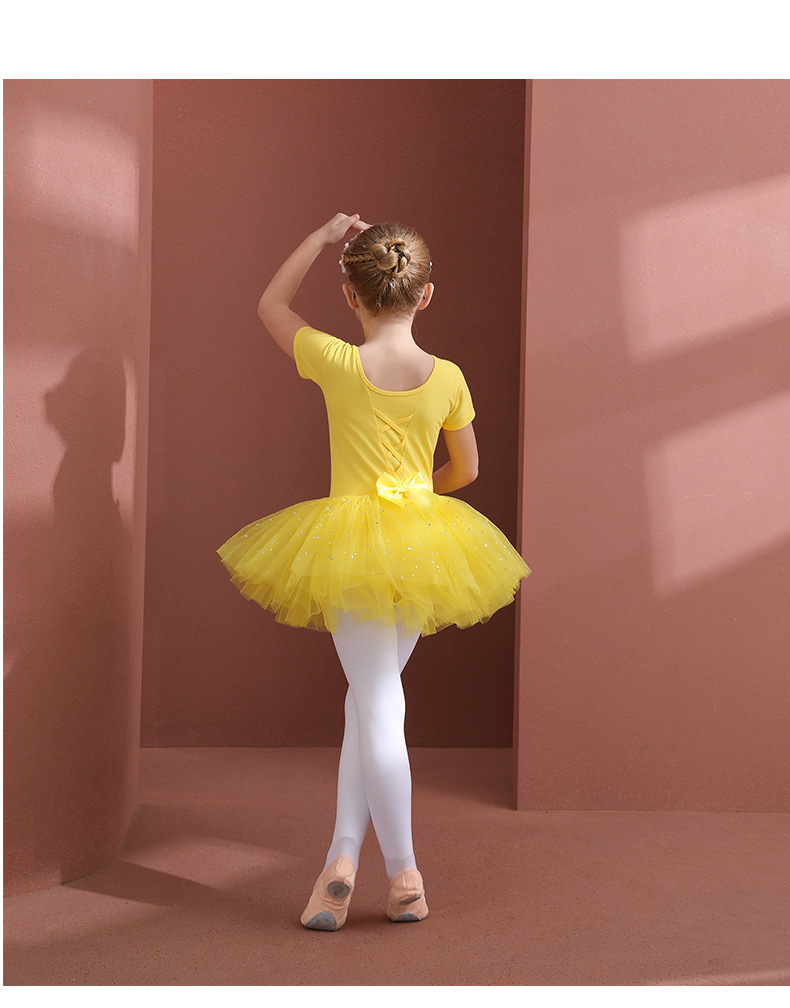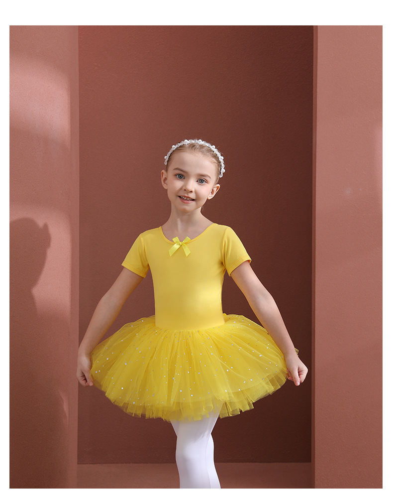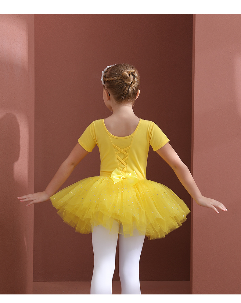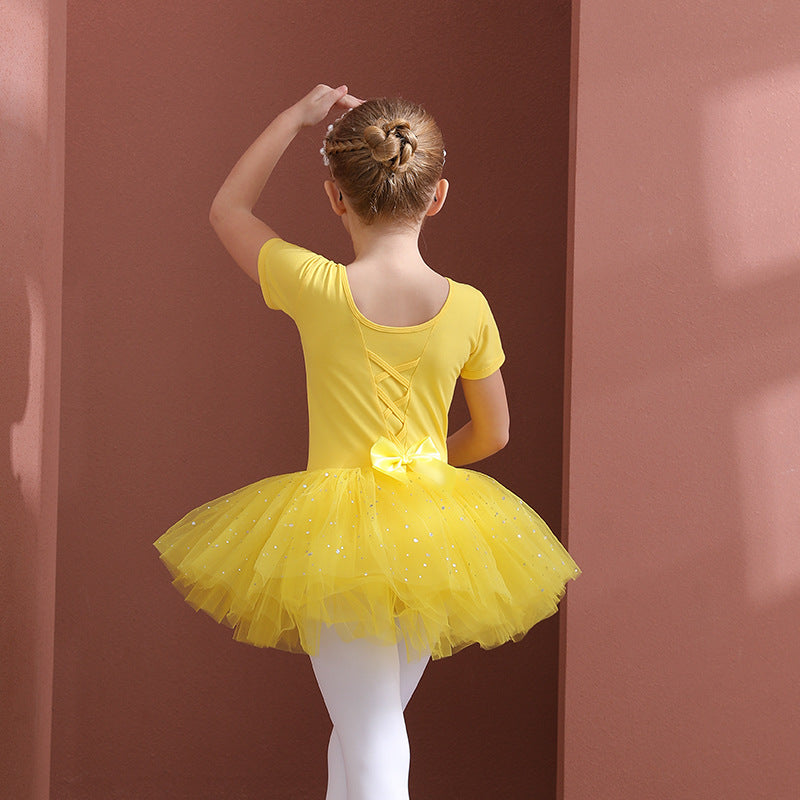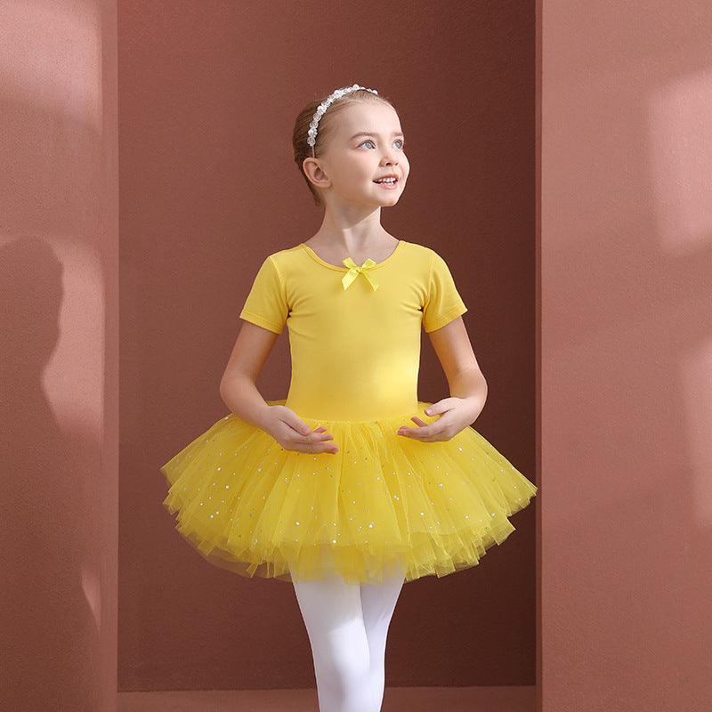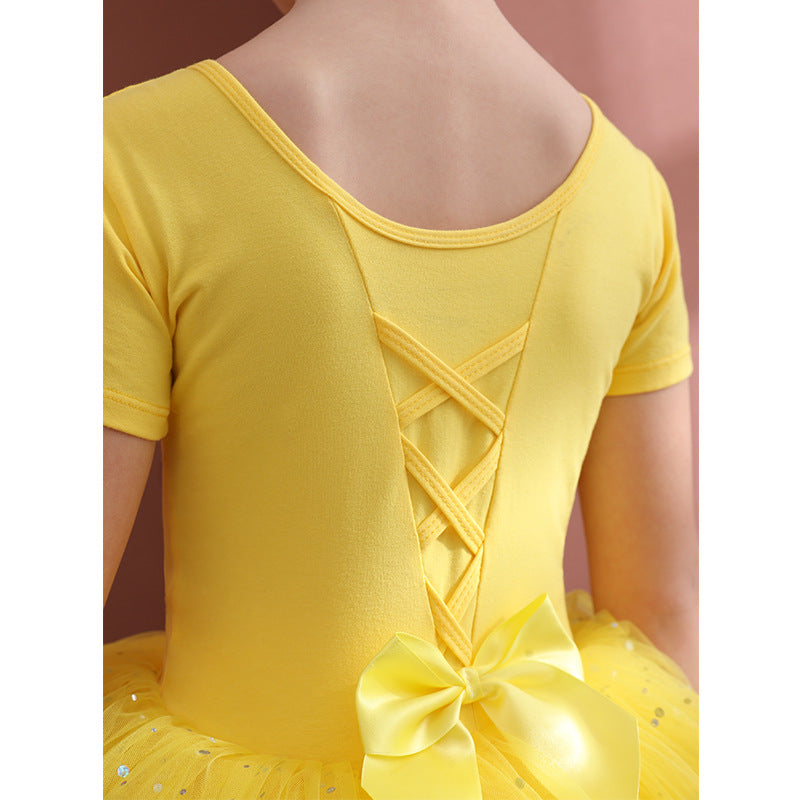 Children's dance costume Short-sleeved yellow cotton Ballet Princess dress Ballerina Outfit Girls Ballet Gauze Dress