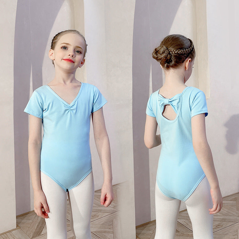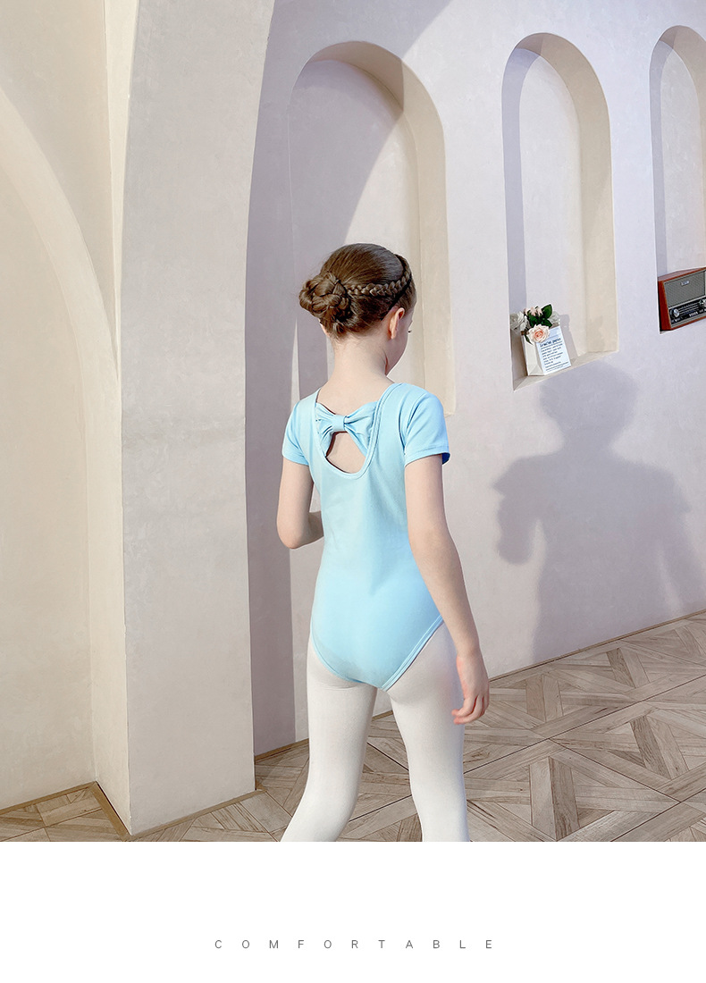 Children's dance costumes Girls' light blue pure cotton practice dress - White chiffon skirt-Performance Costumes Solid