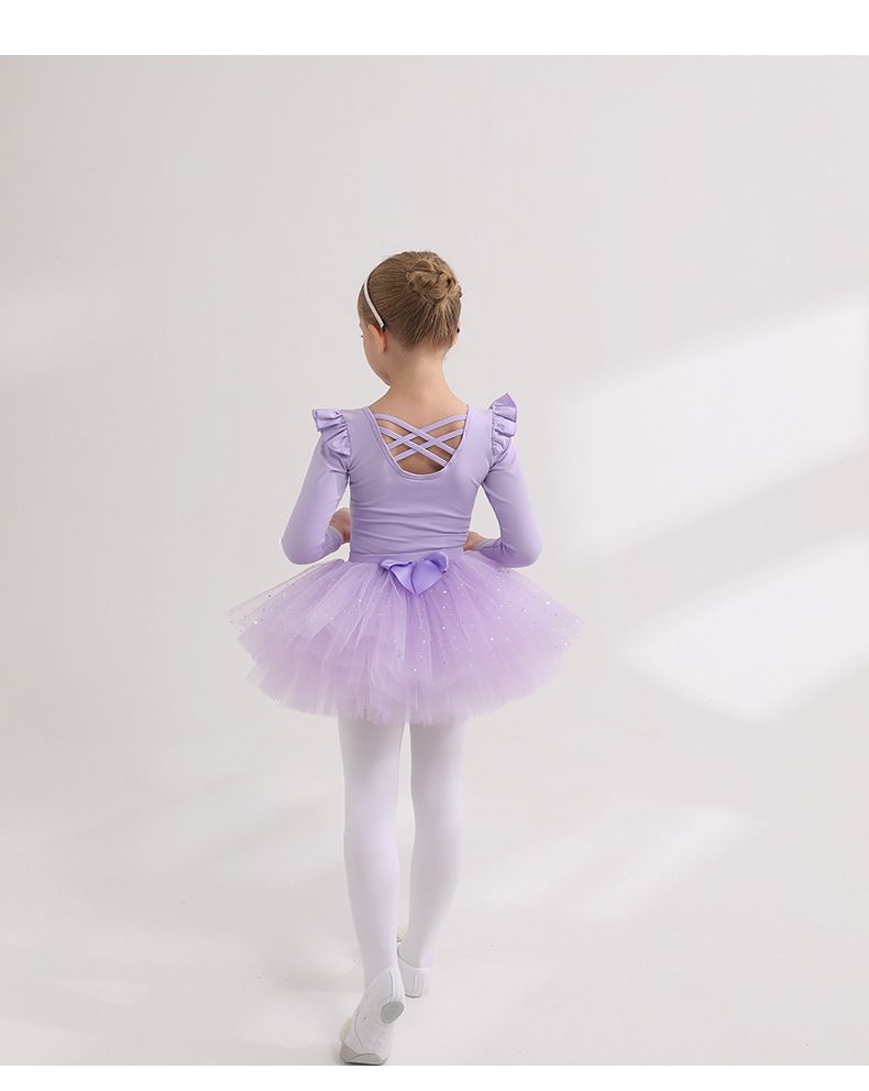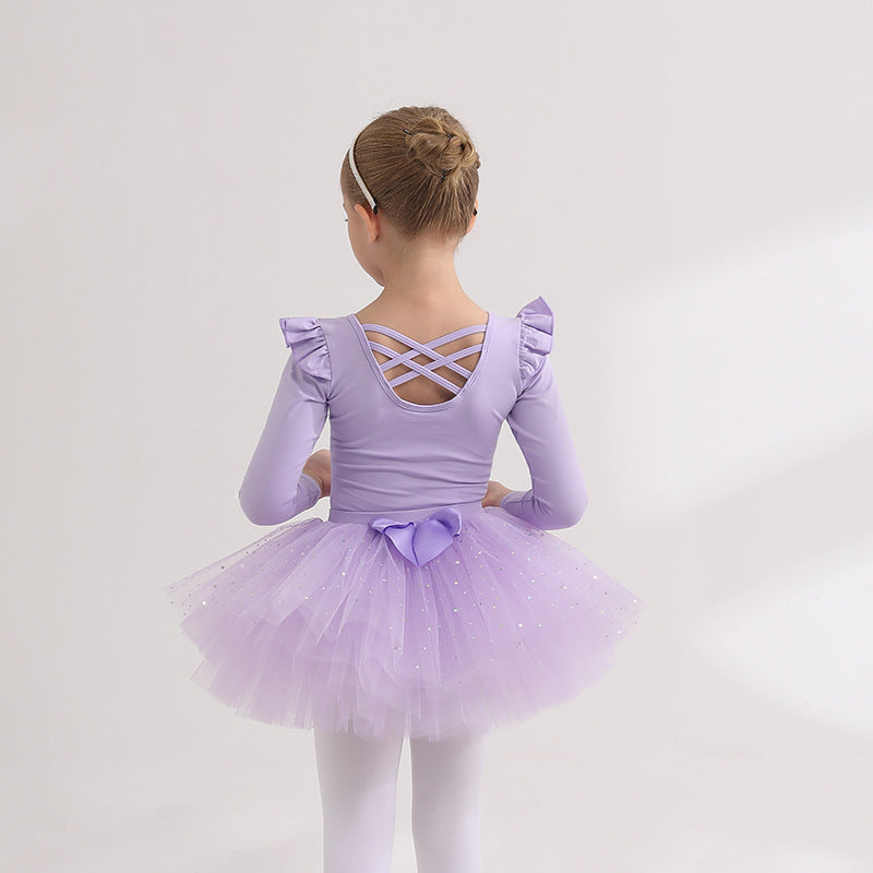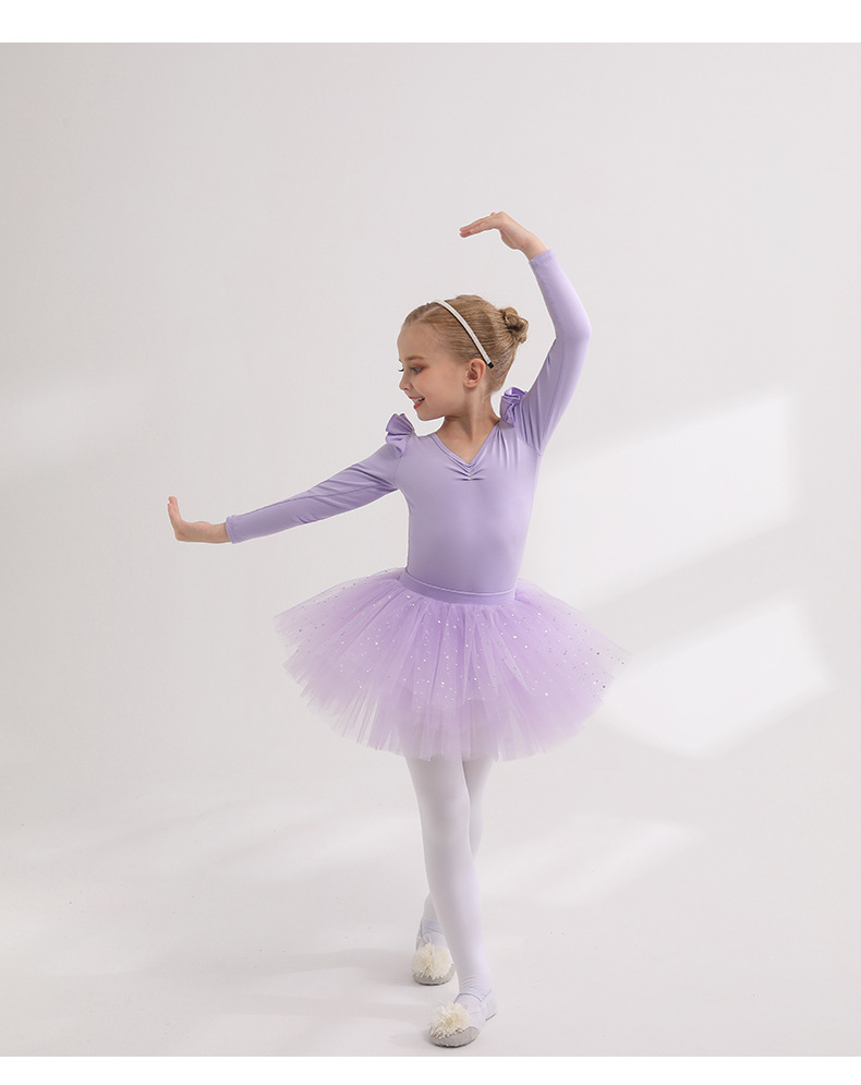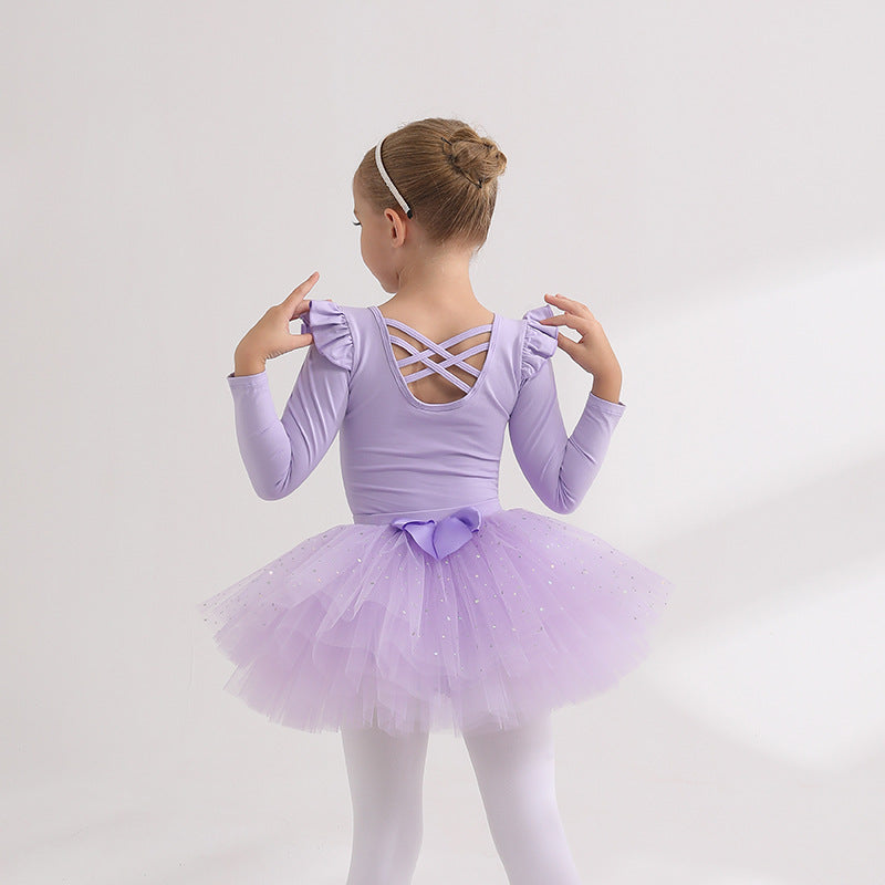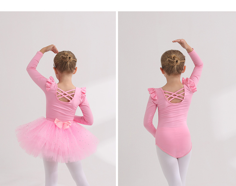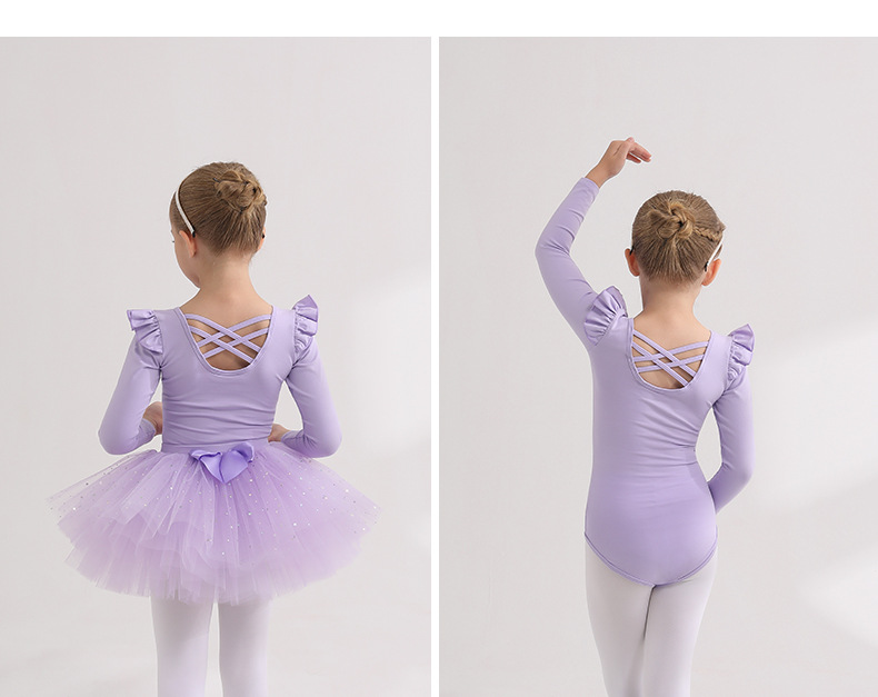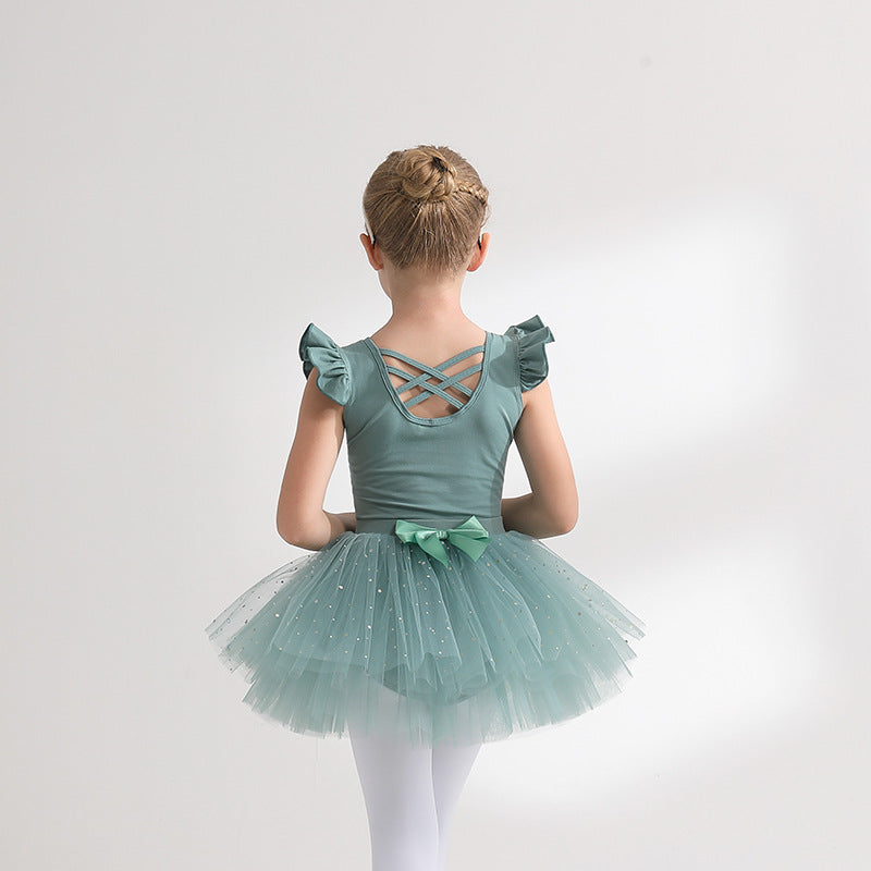 Detachable kidsTutu Dance Costume Flutter Sleeve Ballet Leotards with tutu Skirt Performance Training Costume