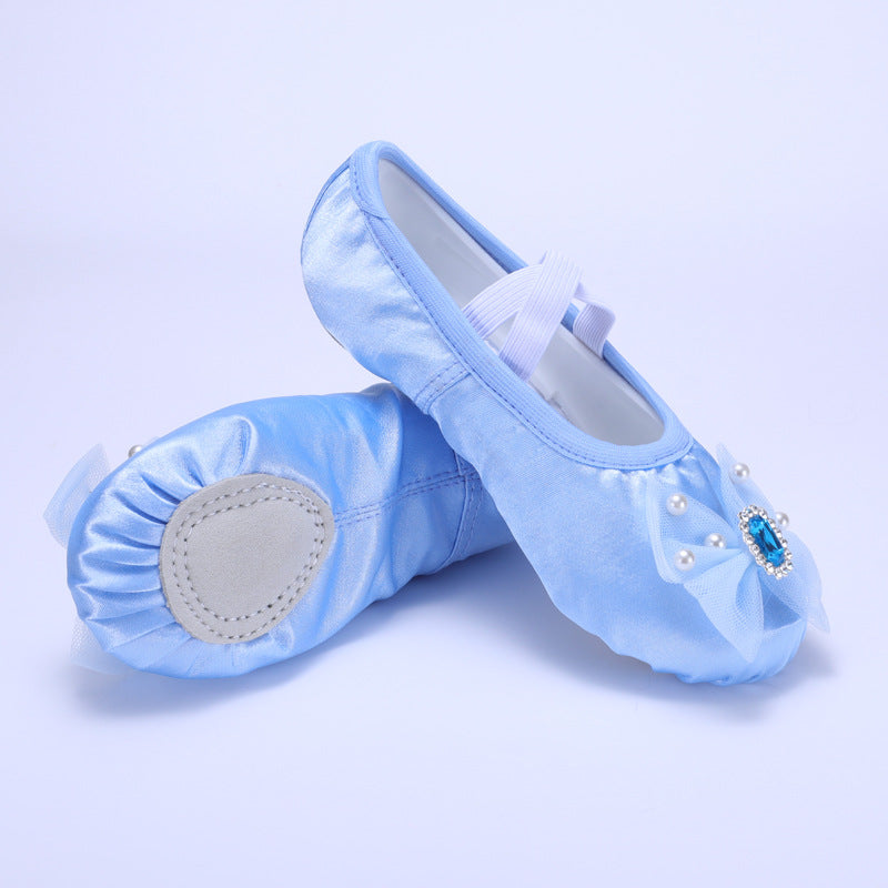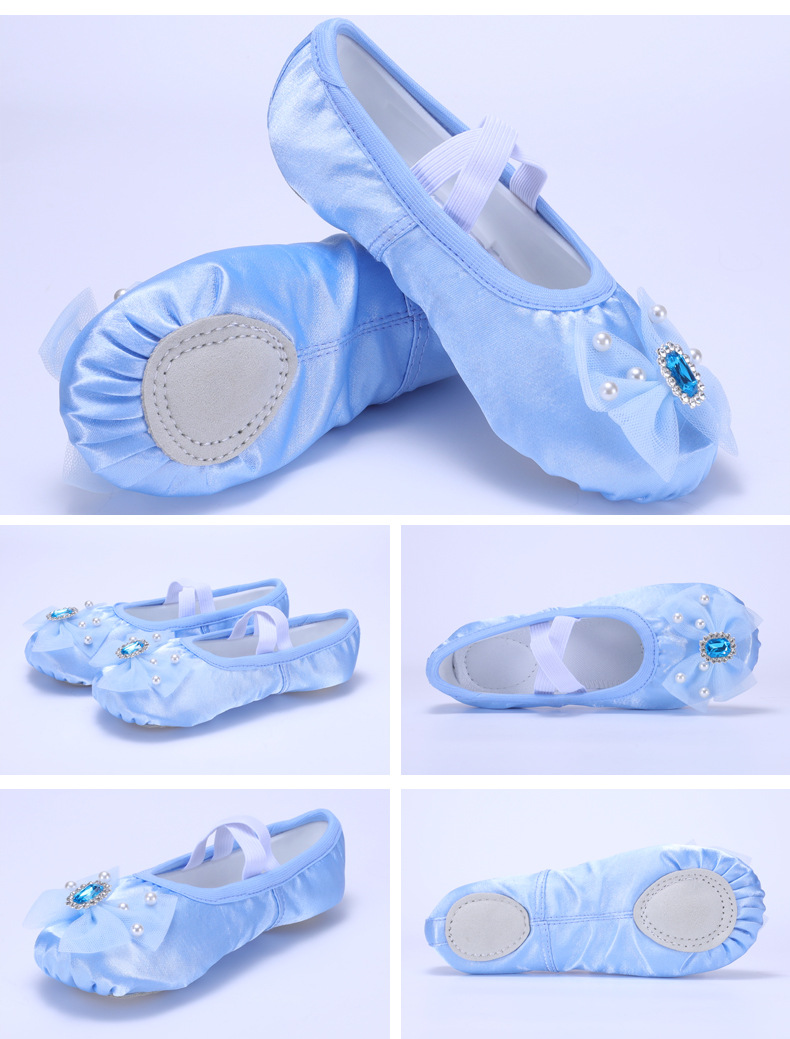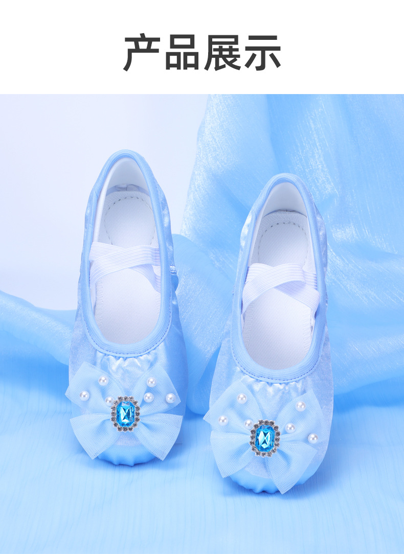 Blue dancing shoes, children's anti-slip dancing shoes, soft-bottom practice dancing shoes, girls' ballet shoes