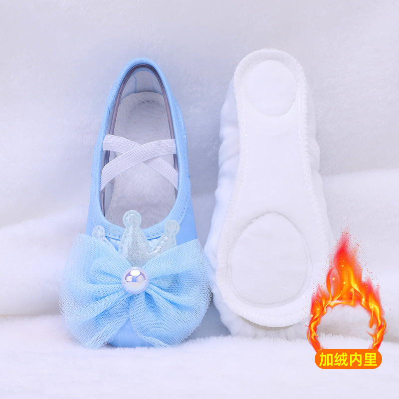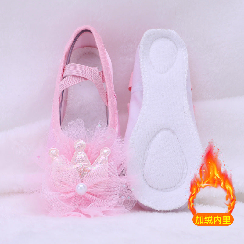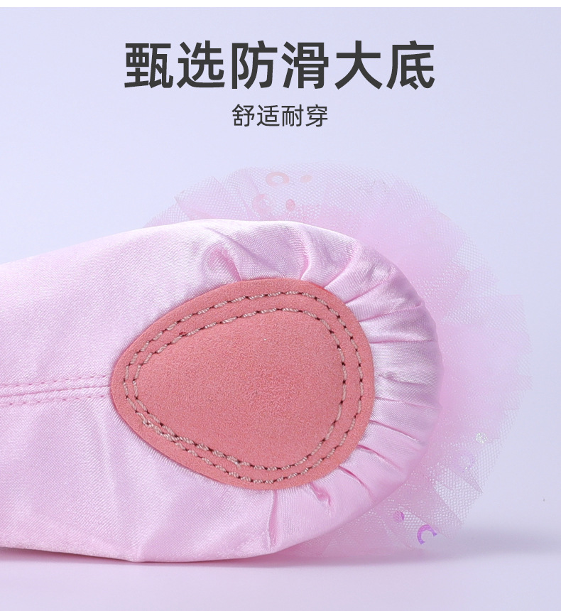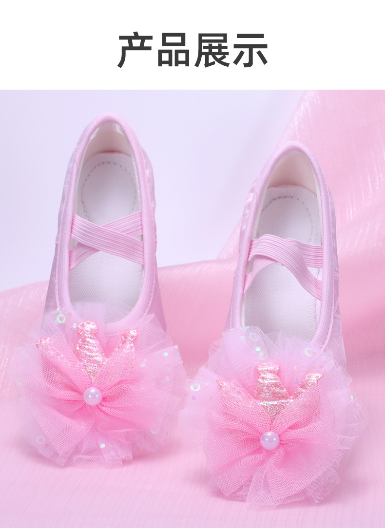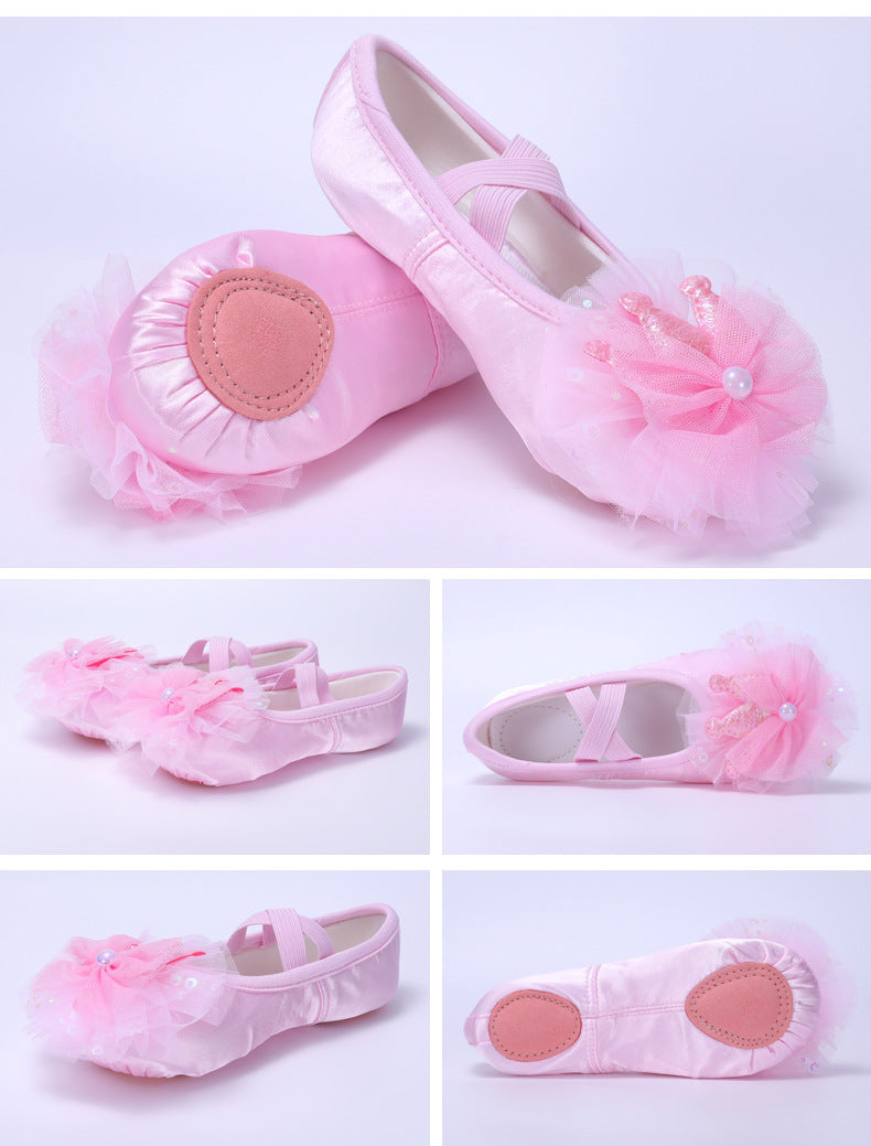 Lace flower dancing shoes, kids' pink ballet shoes, anti-slip dancing shoes, purple soft-soled performance shoes, girl's cat claw shoes