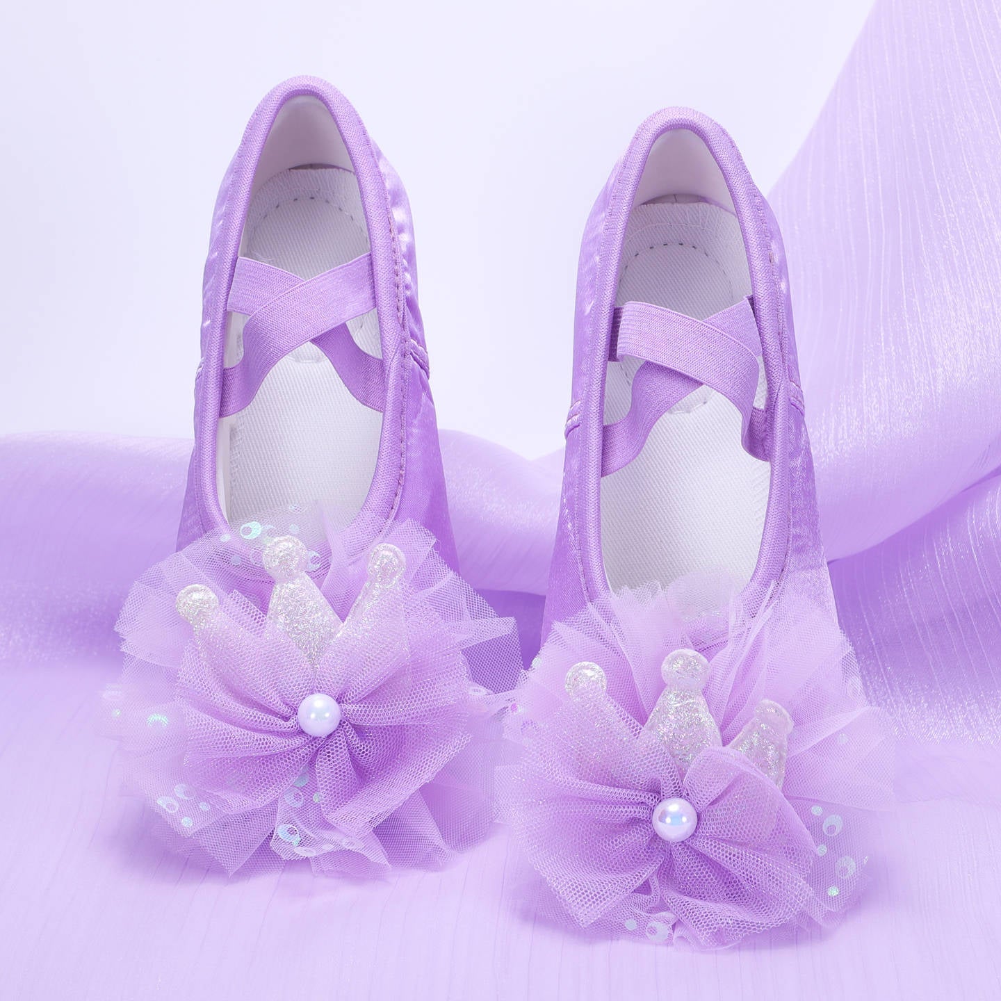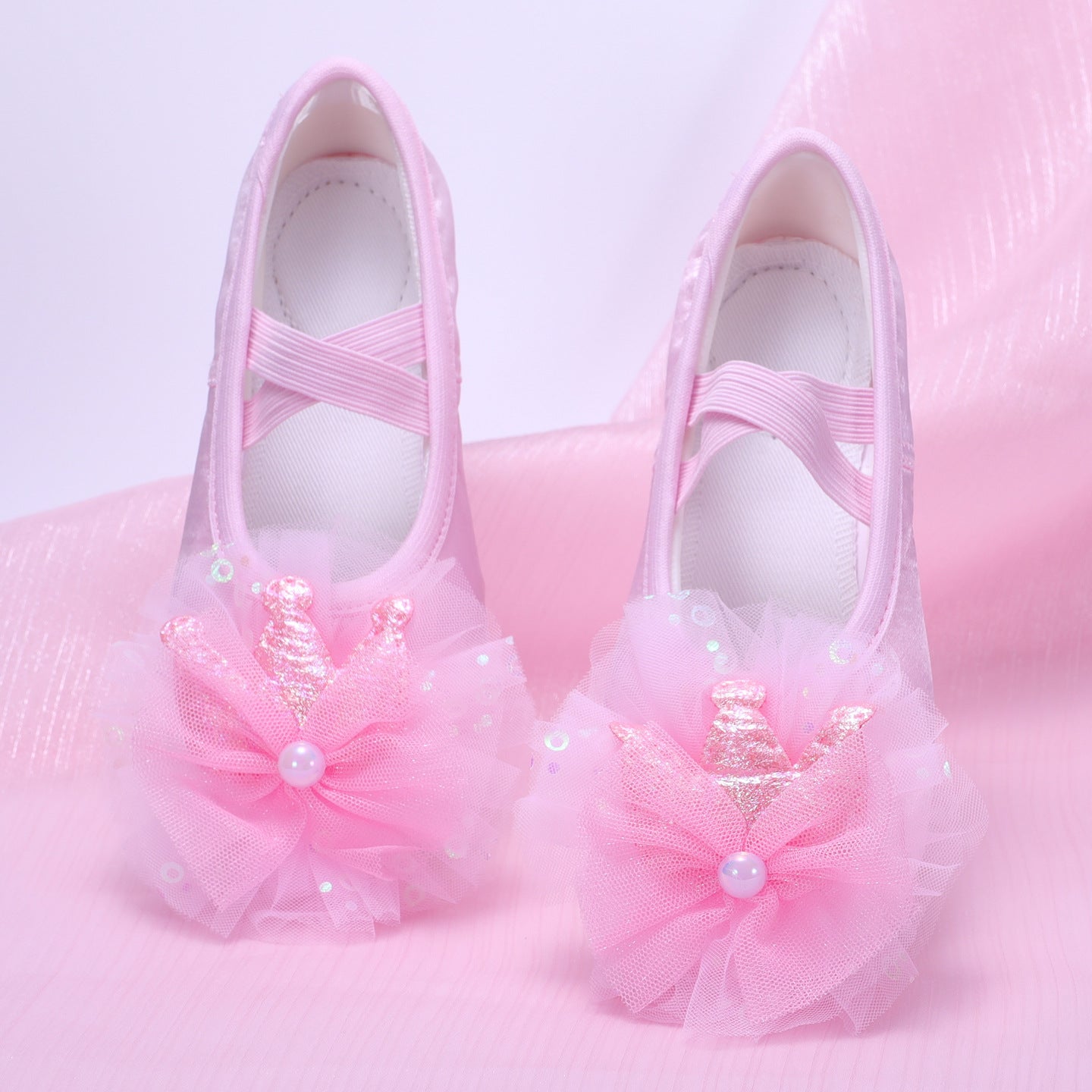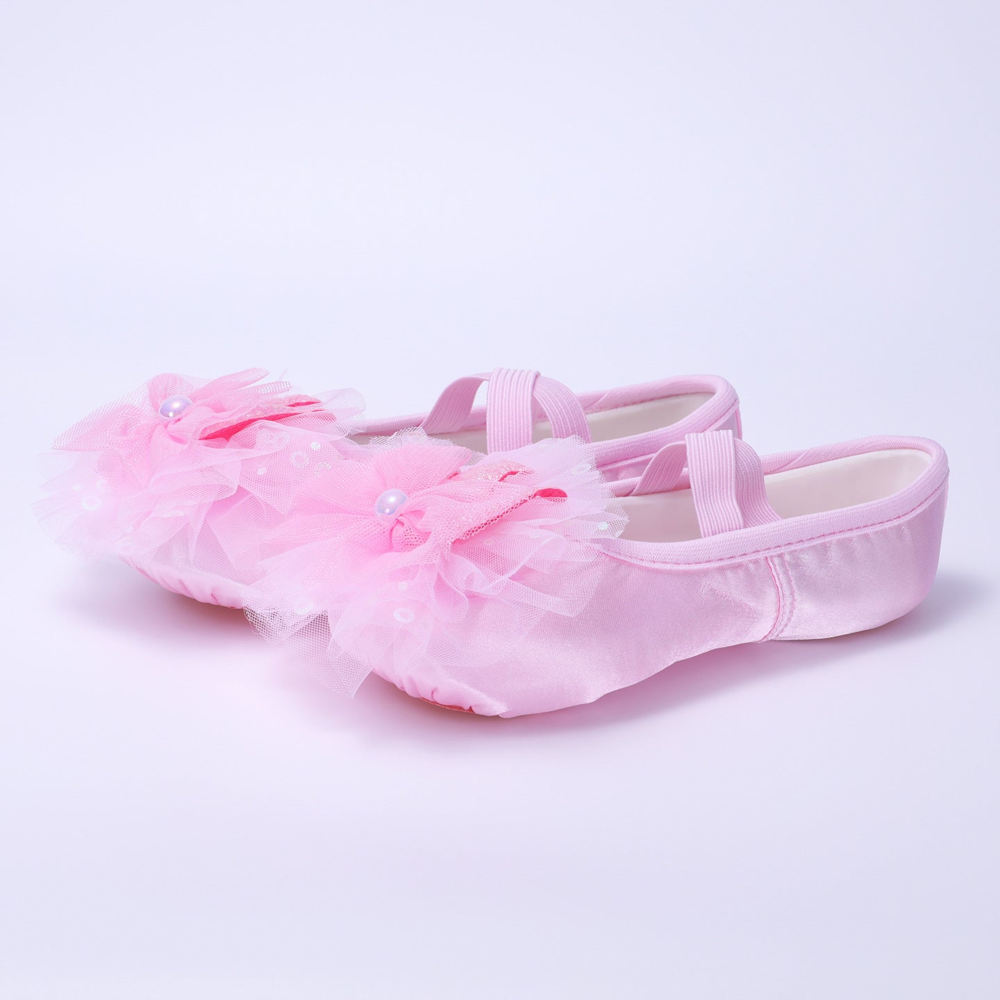 Lace flower dancing shoes, kids' pink ballet shoes, anti-slip dancing shoes, purple soft-soled performance shoes, girl's cat claw shoes