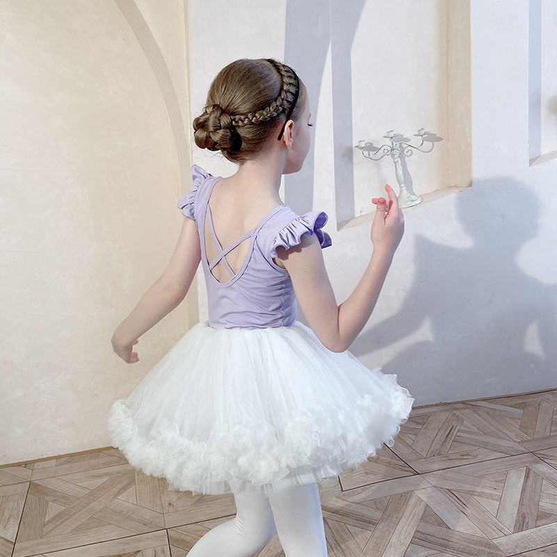 High quality Children's dance dress Ballet-style chiffon dress Kids' skirt White/Pink/Purple Bulky skirt Fluffy skirt