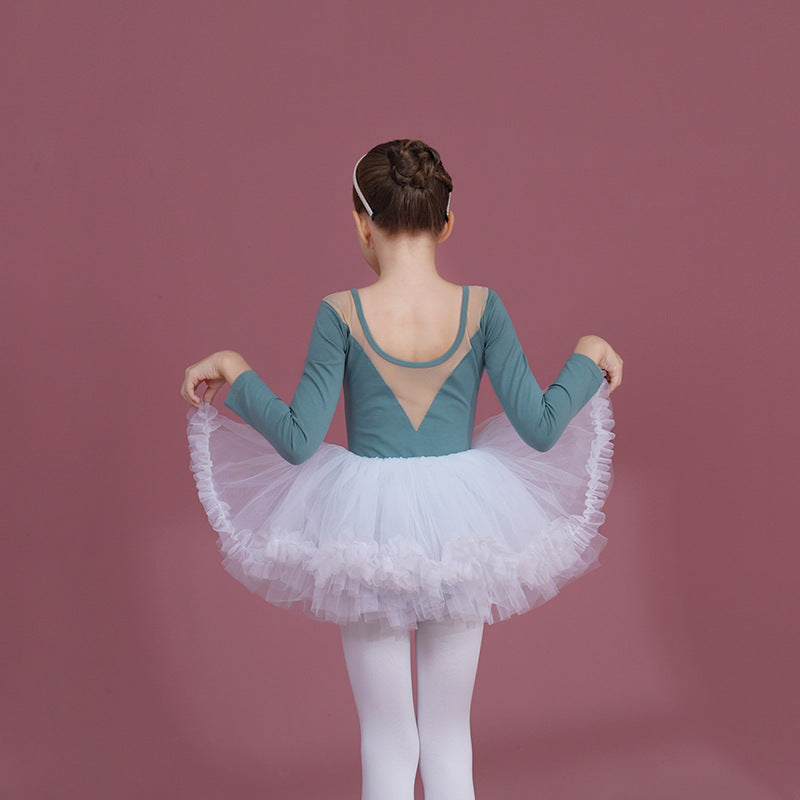 Detachable Tutu Dance Costume for kids Dark green cotton Dance Performance ClothingBallerina Outfit dance Princess dress