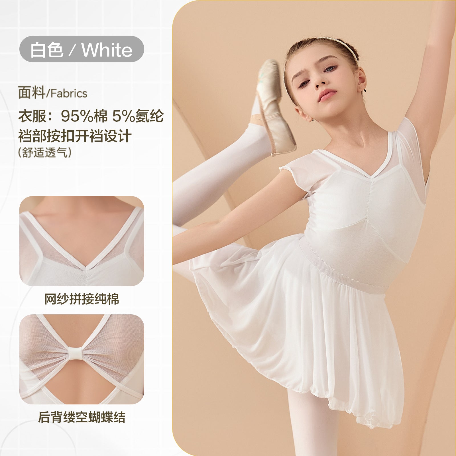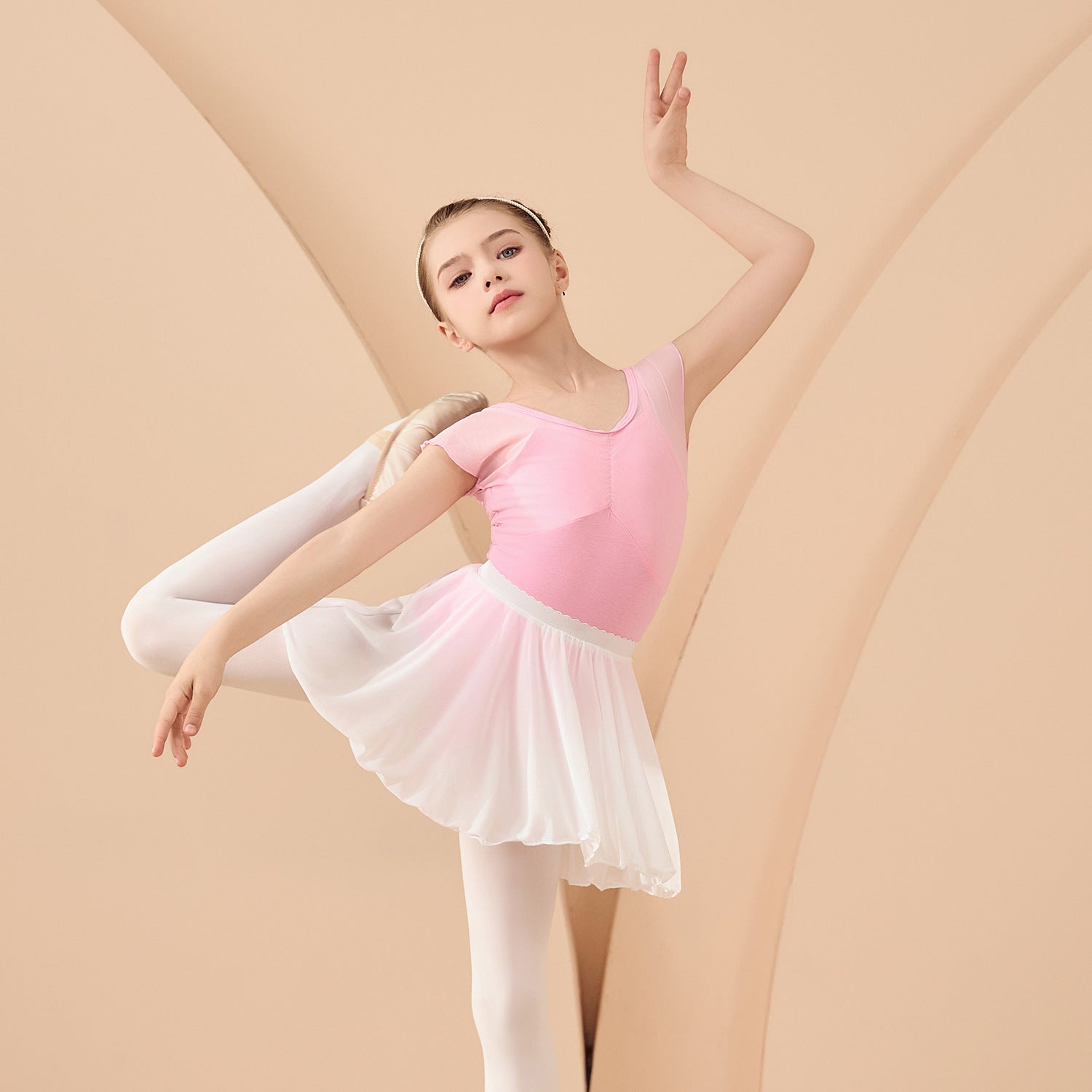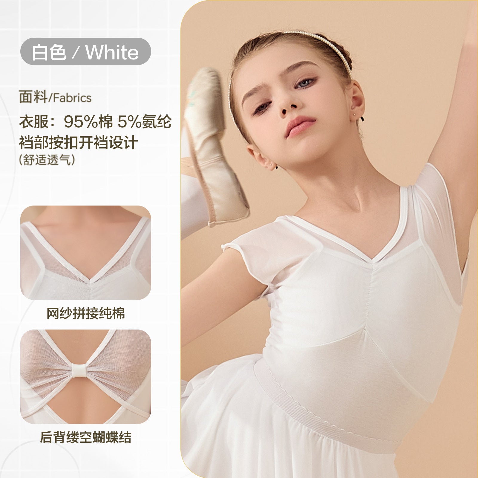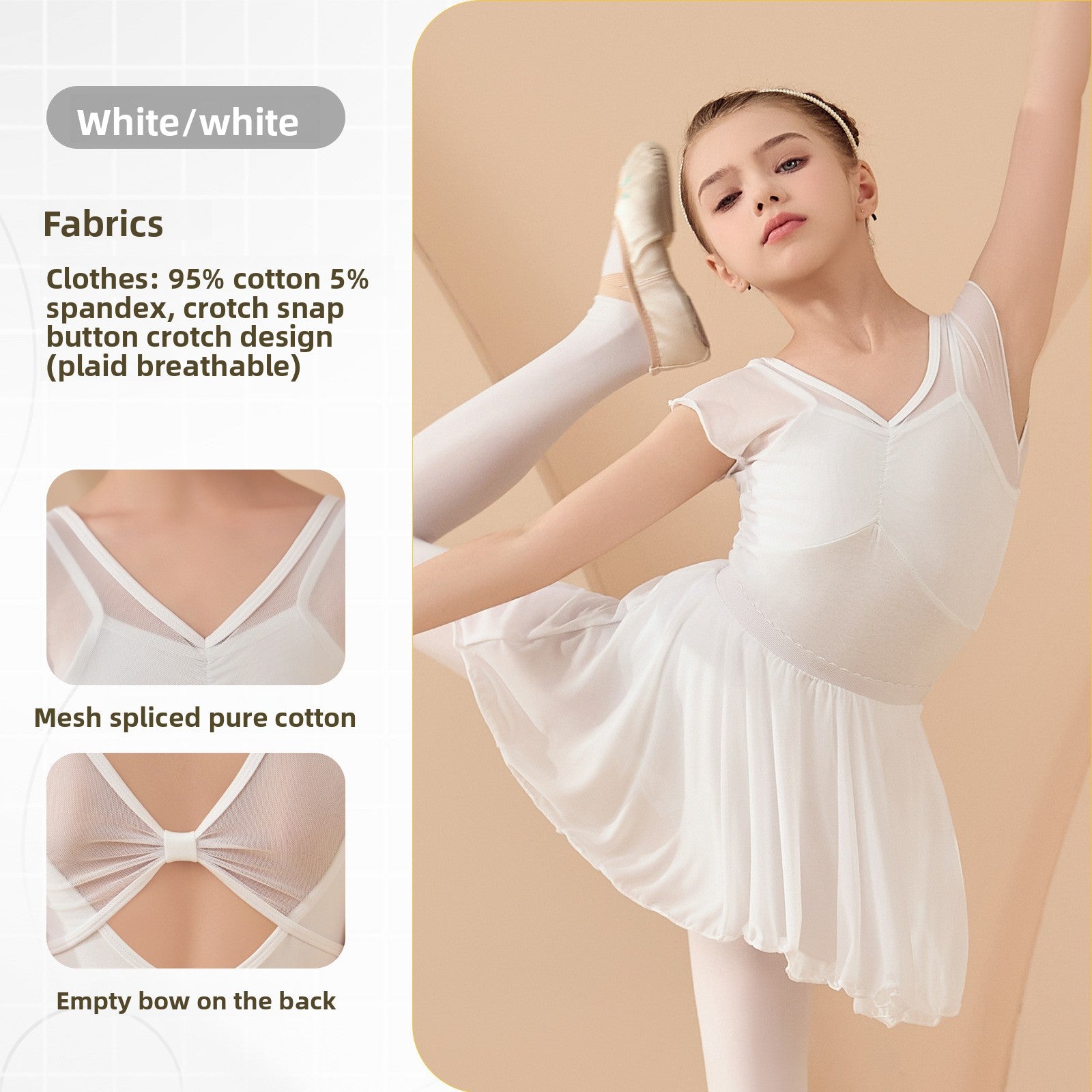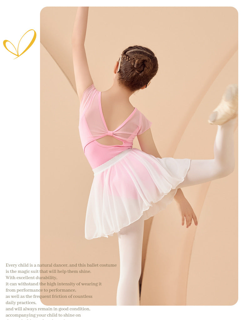 Girl Ballet Leotards with white Chiffon Skirt Detachable Tutu Dance Costume short sleeve kids Ballerina Outfit Princess dress