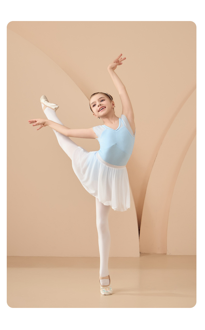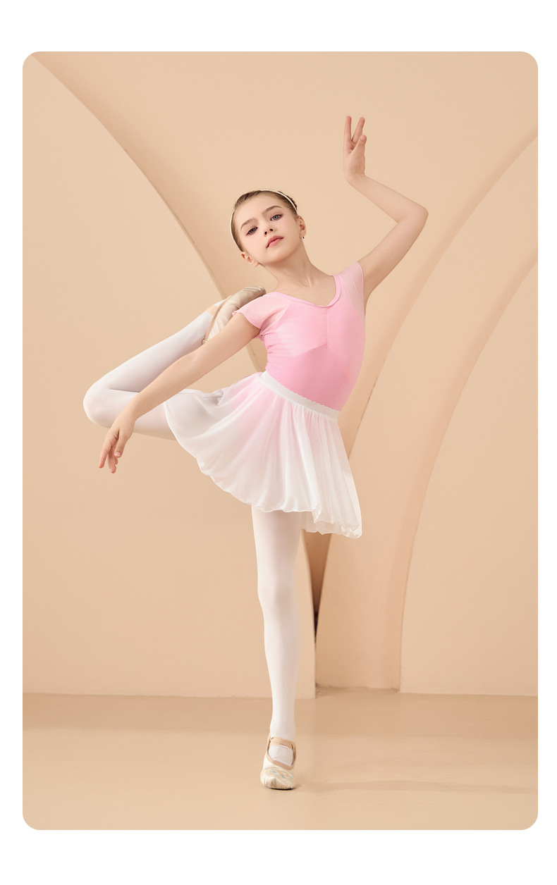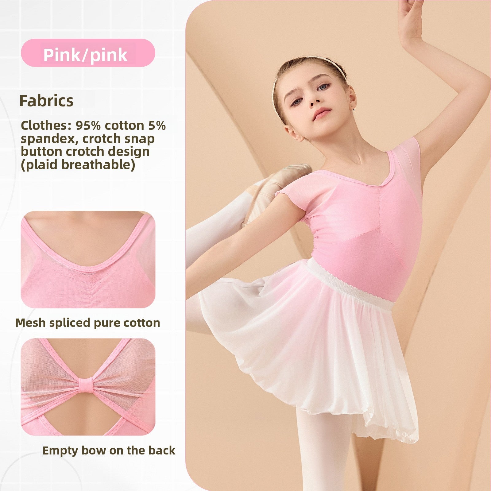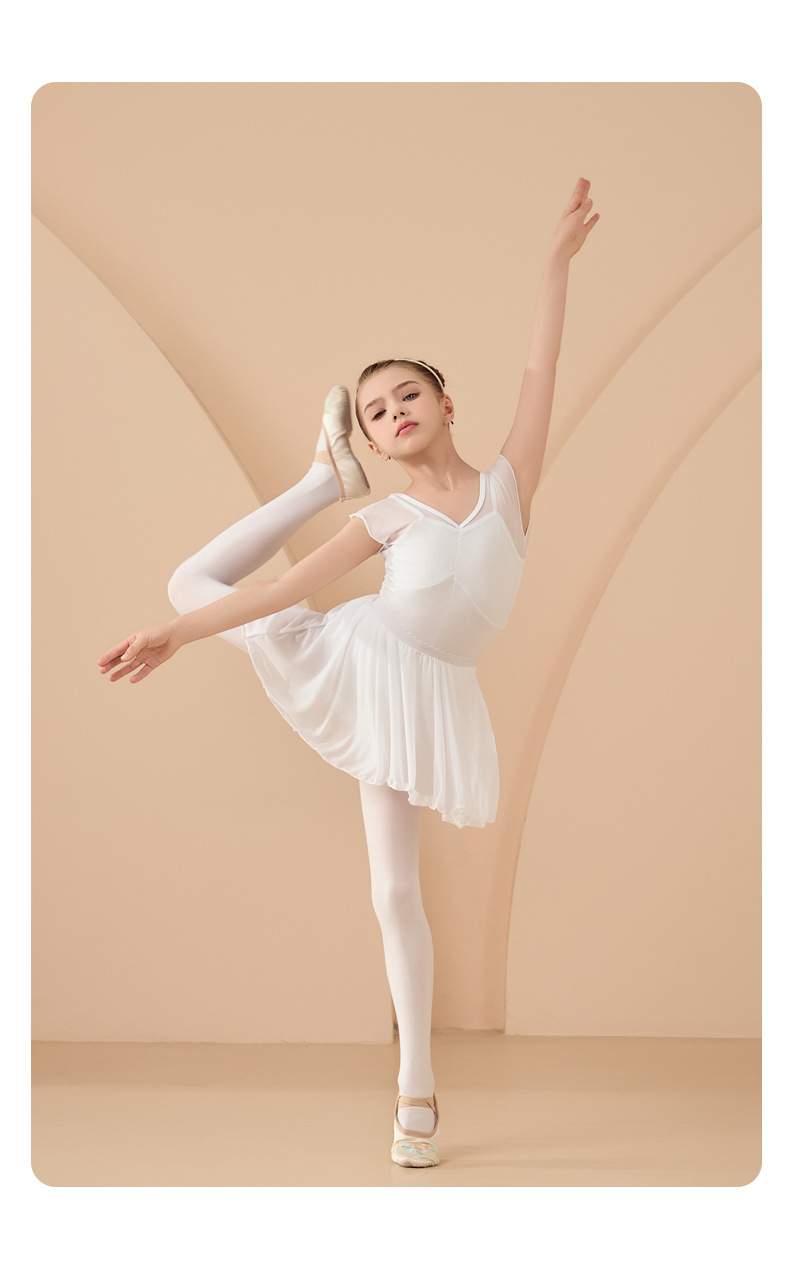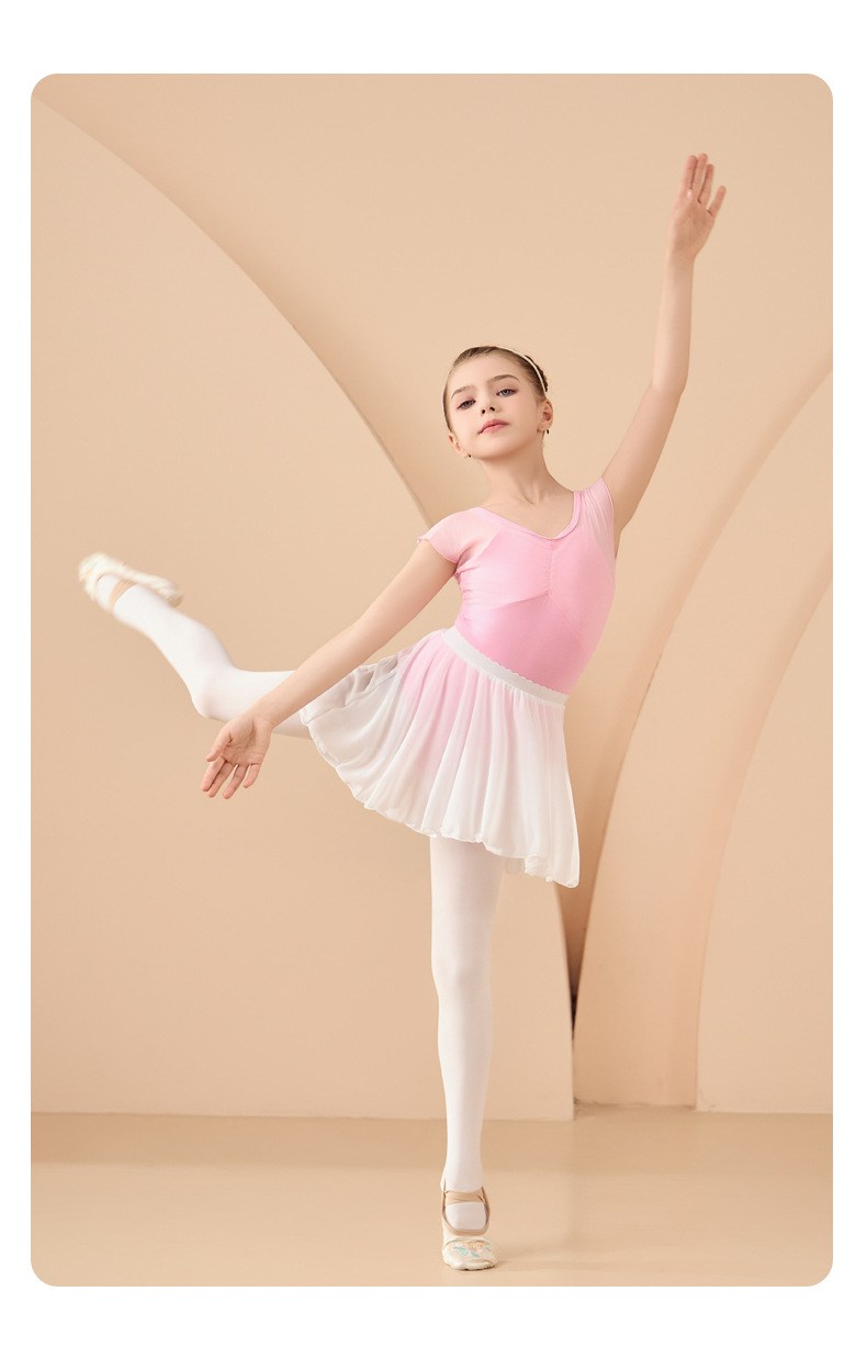 Girl Ballet Leotards with white Chiffon Skirt Detachable Tutu Dance Costume short sleeve kids Ballerina Outfit Princess dress