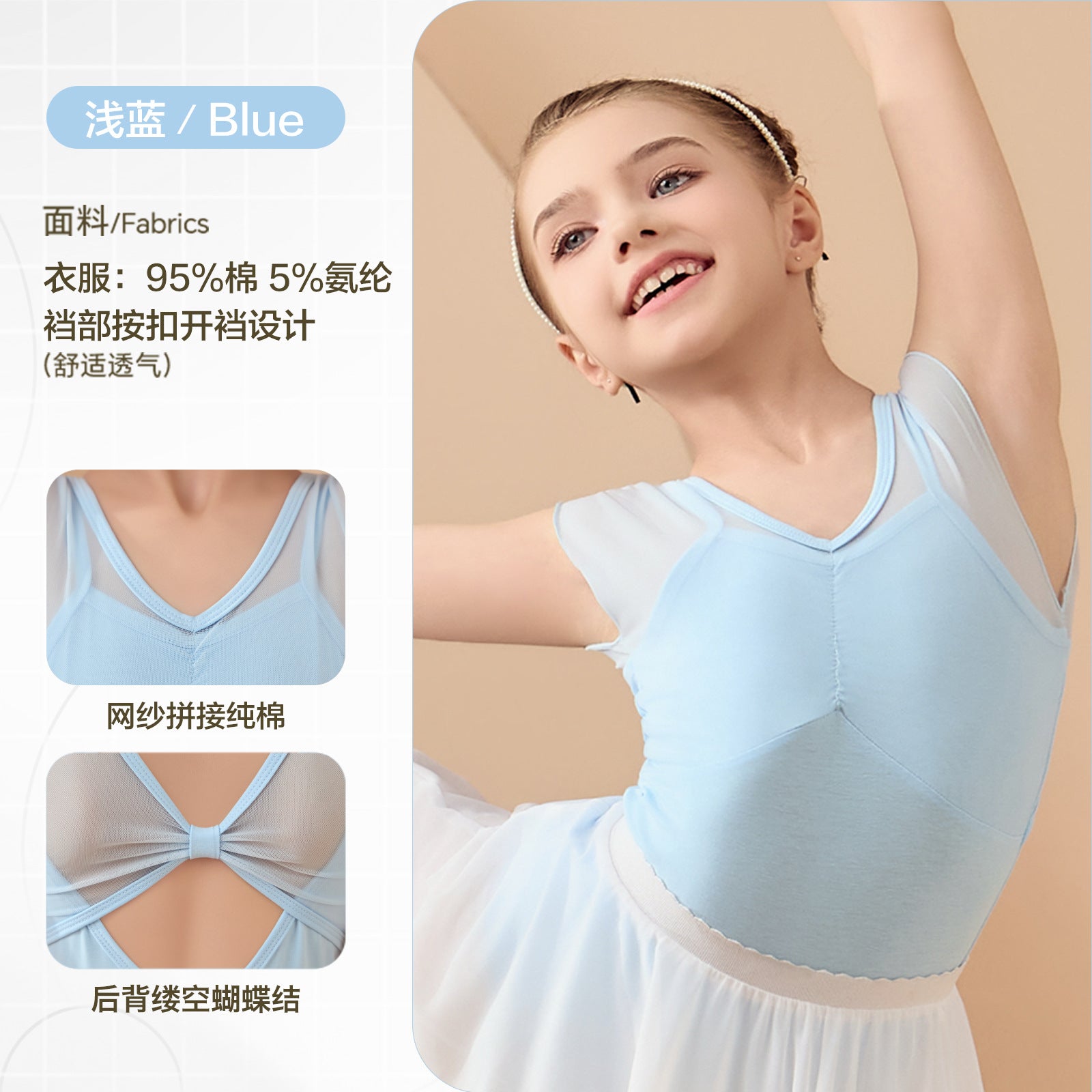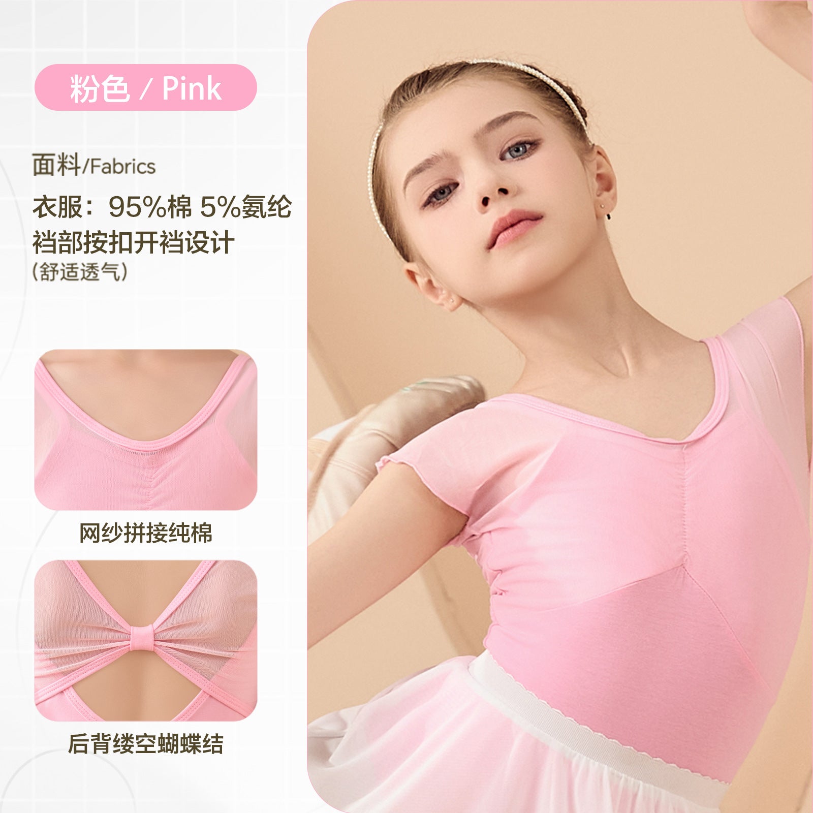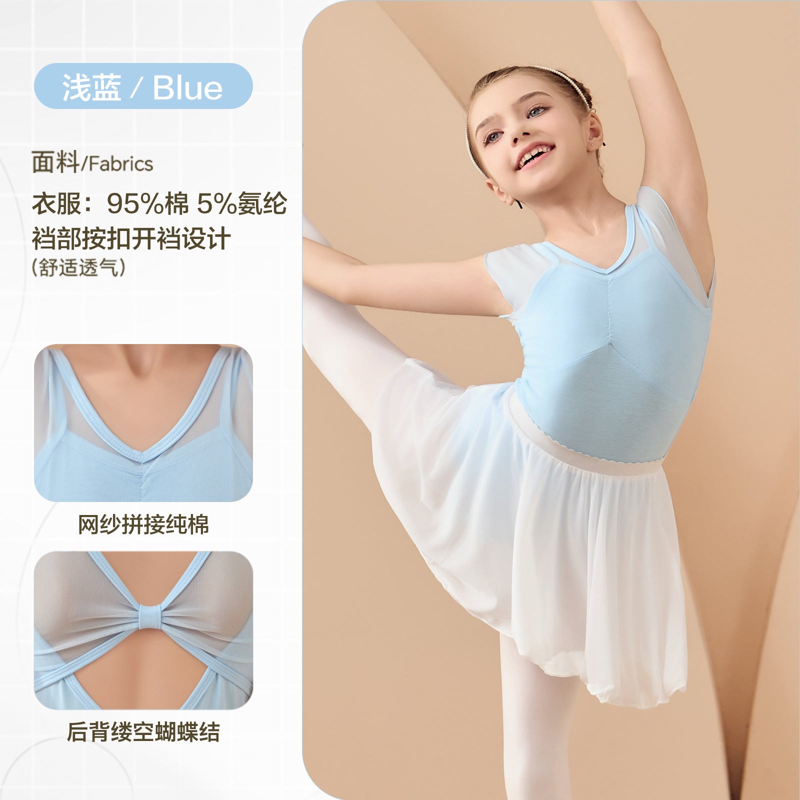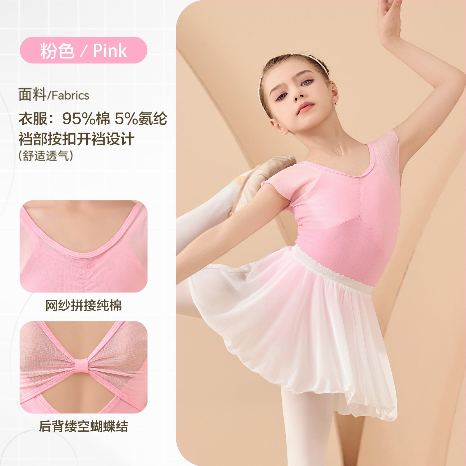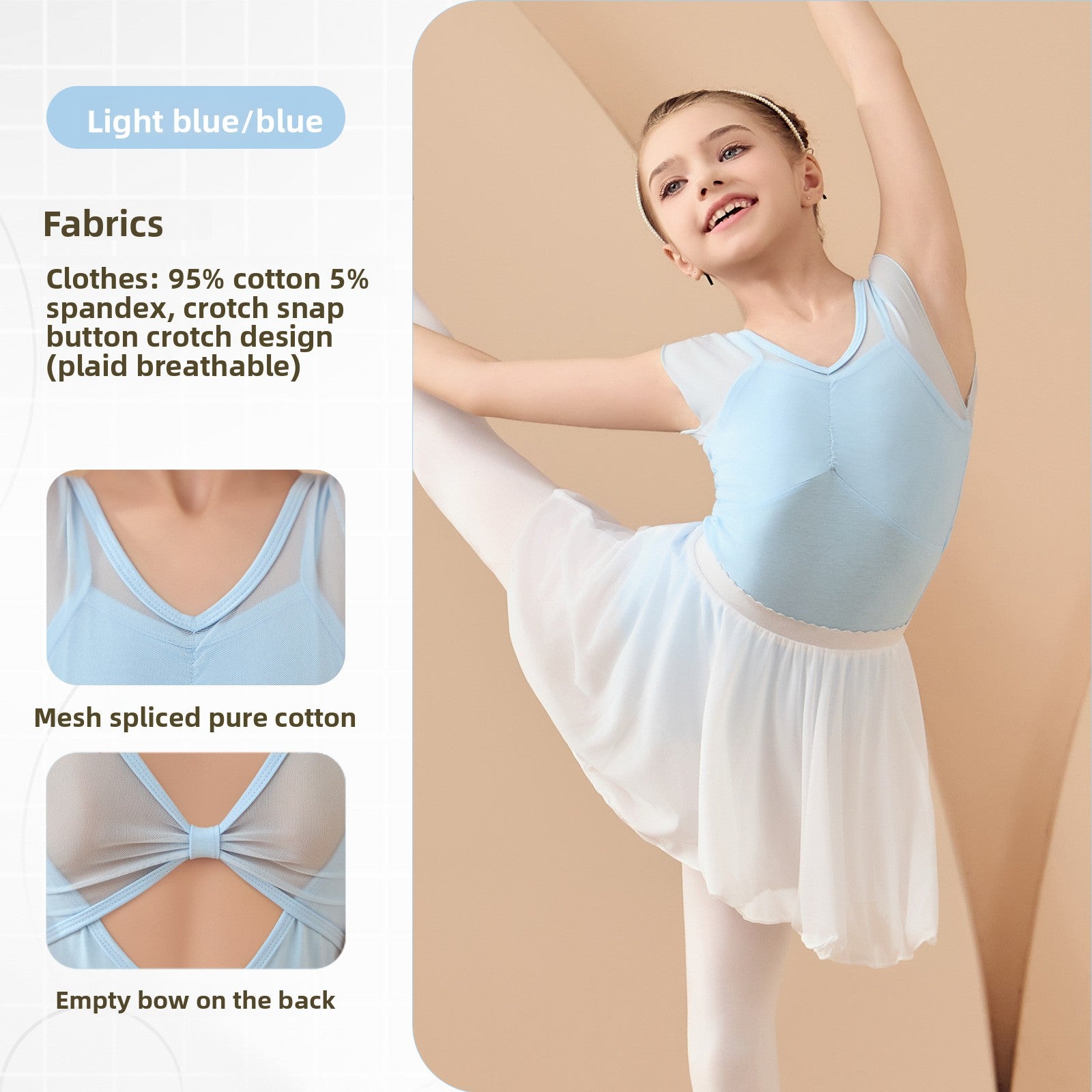 Girl Ballet Leotards with white Chiffon Skirt Detachable Tutu Dance Costume short sleeve kids Ballerina Outfit Princess dress