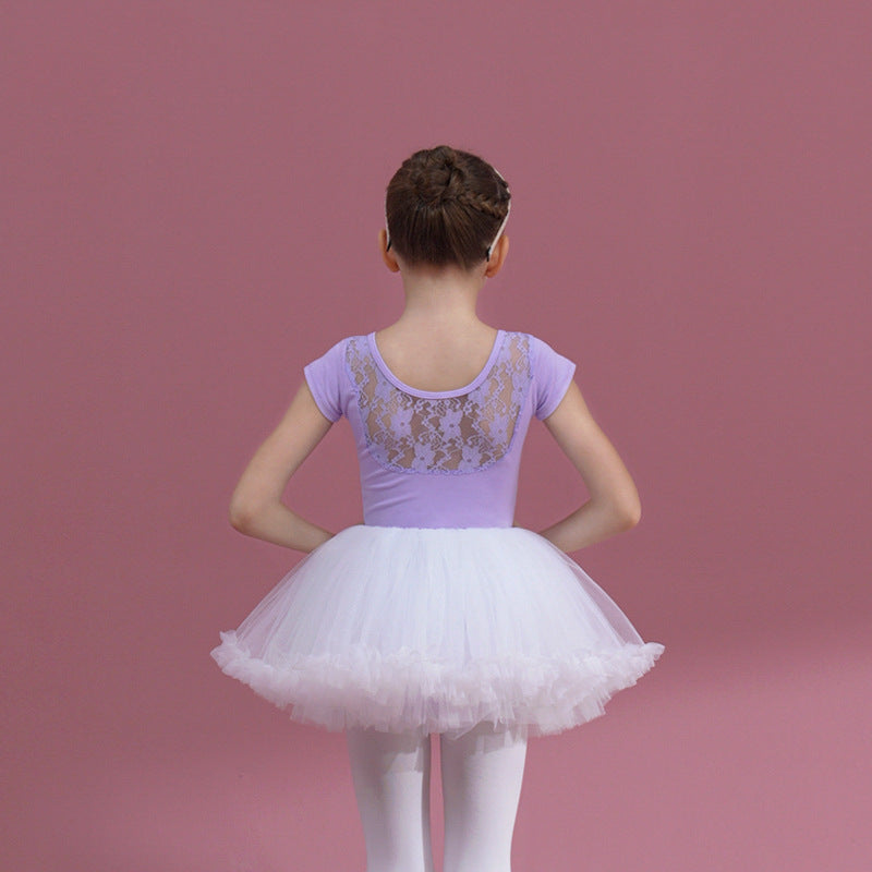 Girl purple Ballet Leotards with white tutu Skirt Detachable Tutu Dance Costume Ballerina Outfit Princess dress cotton Lace back