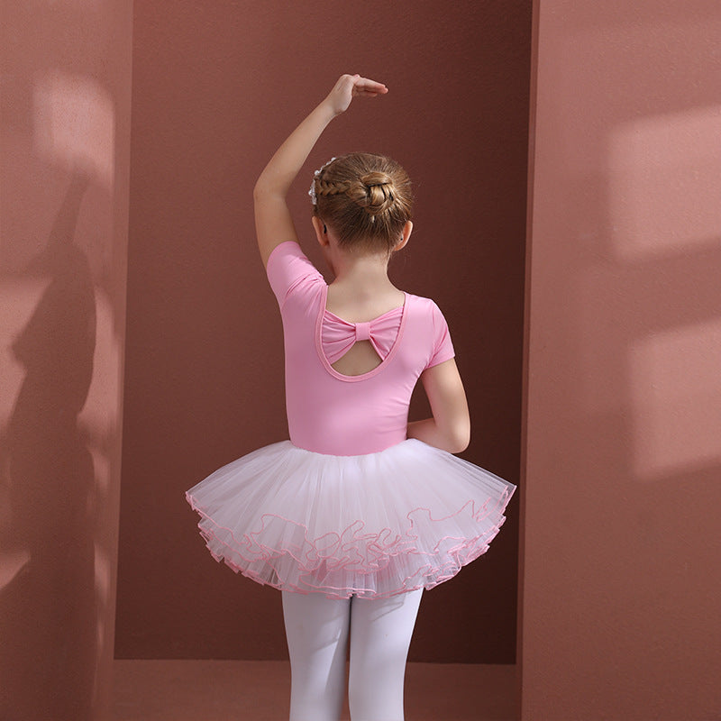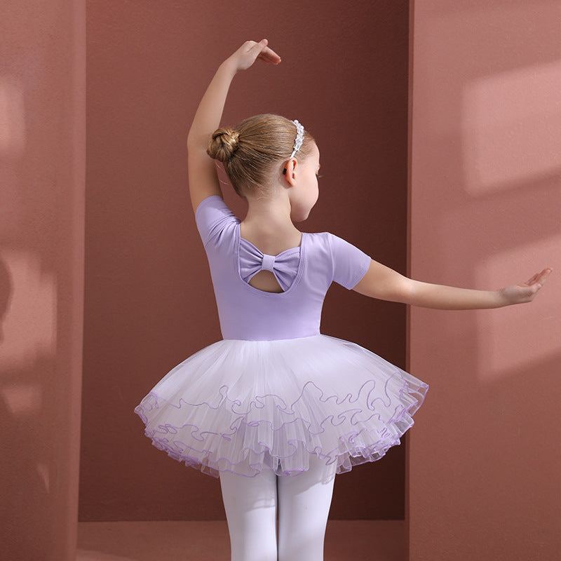 Girls Ballet Leotards with 4 layers of gauze Skirt bowknot Back Detachable Tutu Dance Costume for kids light purple