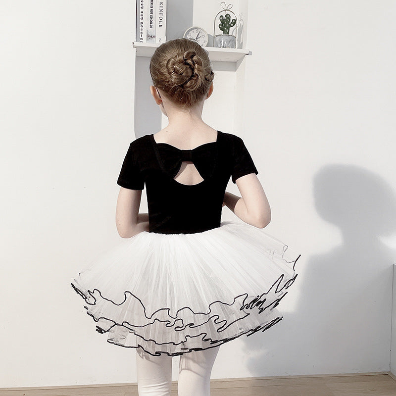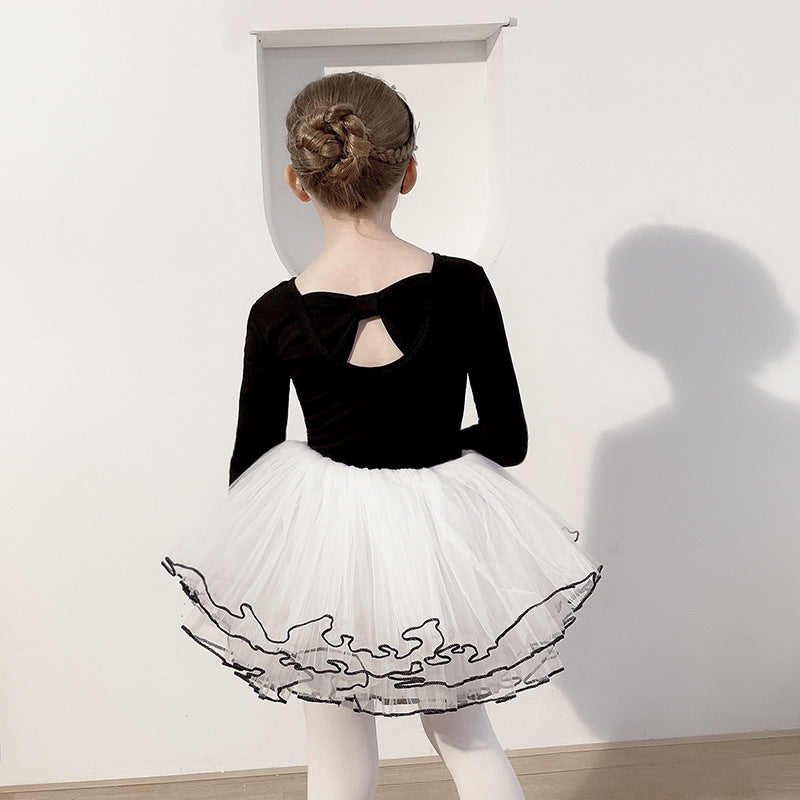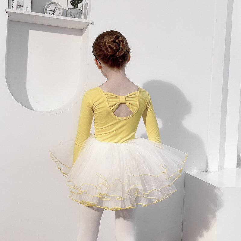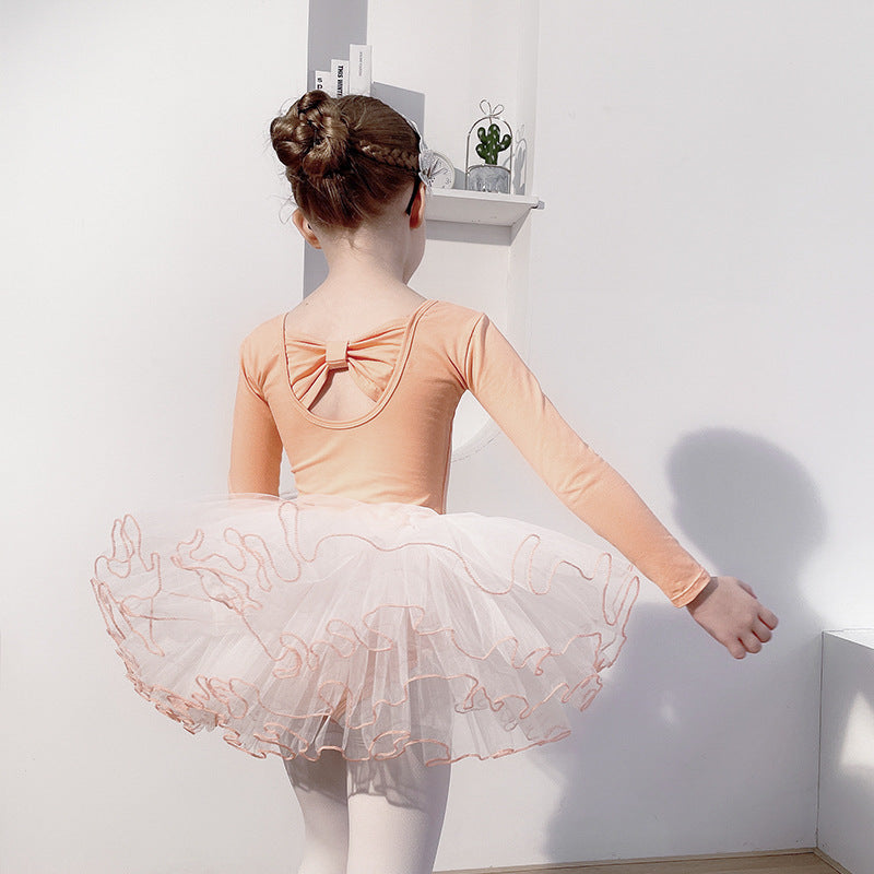 Girls Ballet Tutu Skirt Children's Jumpsuit Training Clothes Leotard For Gymnastics Skate Princess Long Sleeve Top Fluffy Fairy