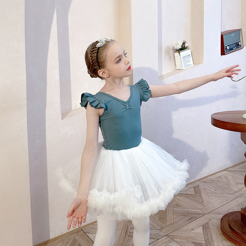 Girls Dance Ballet Leotard with Skirt Short Sleeve Ballerina Dancewear Rhythmic Gymnastics Classical purple