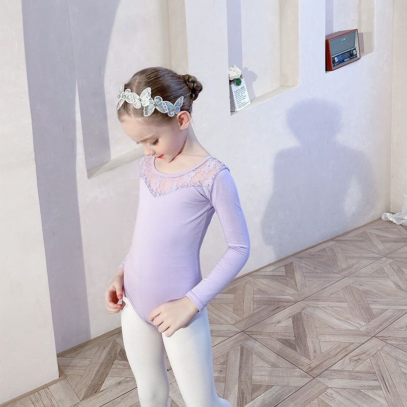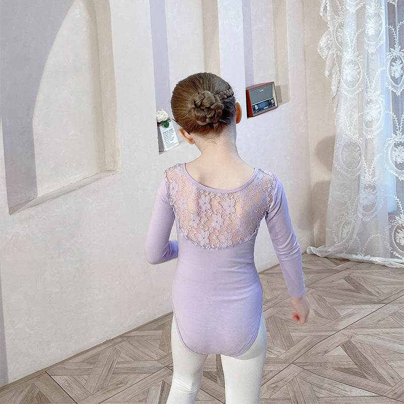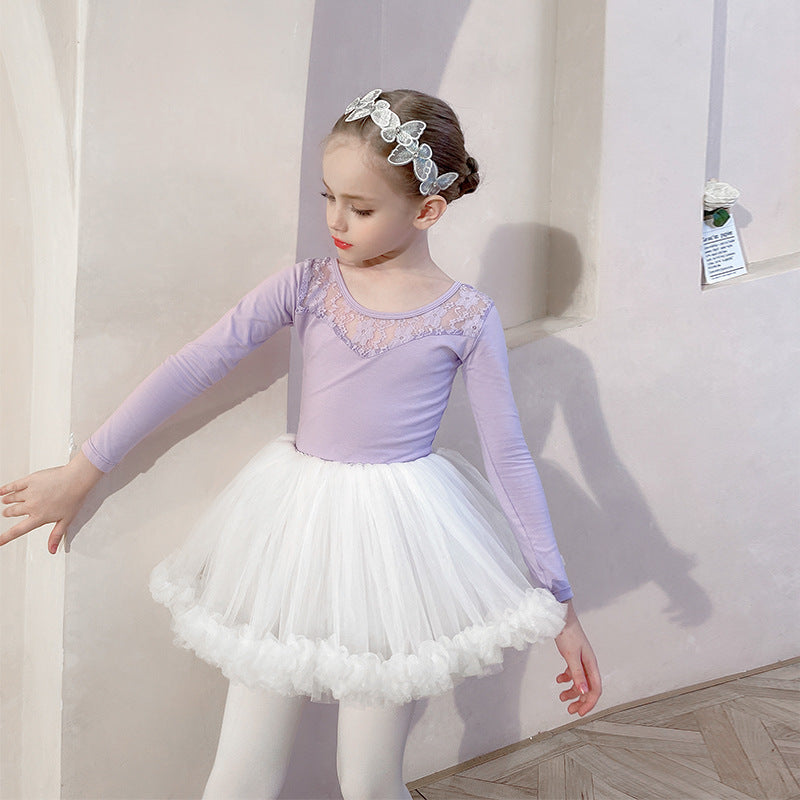 Lace strapless for girl ballet leotard+white skirt- long-sleeved kids' gymnastics suit / Performance Costumes Solid/Training Dress