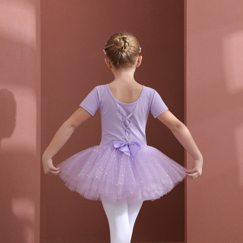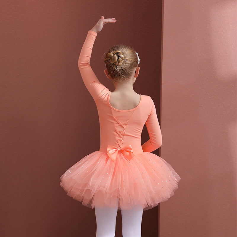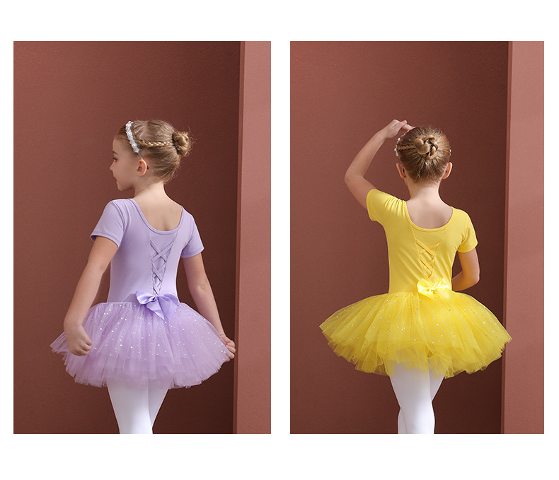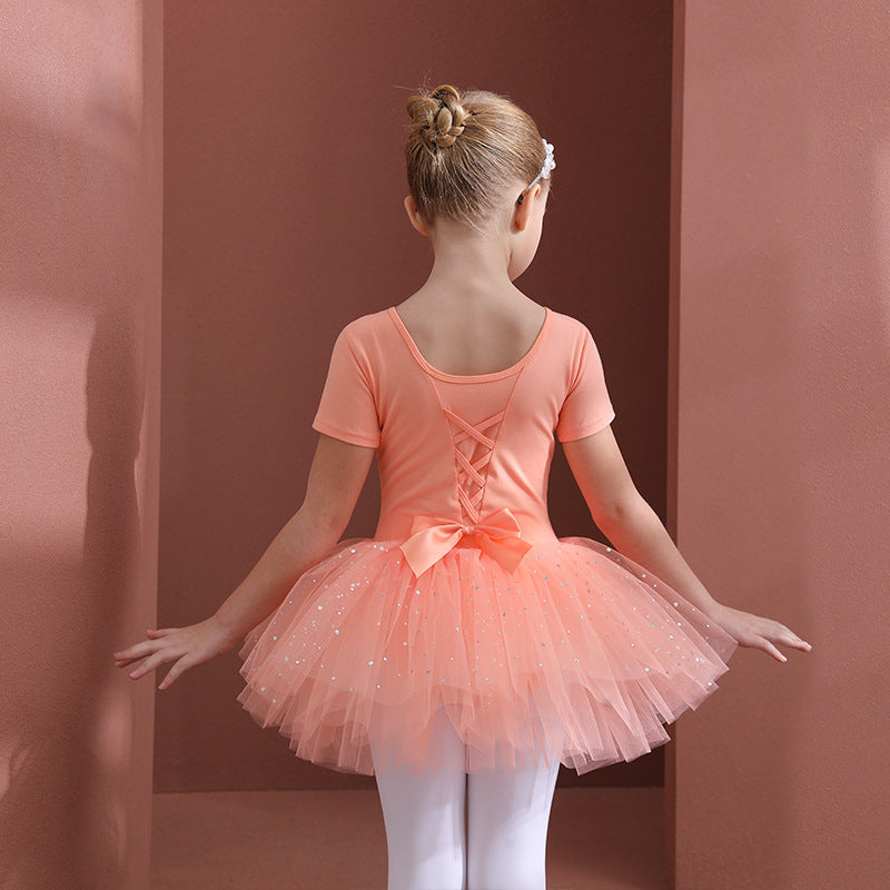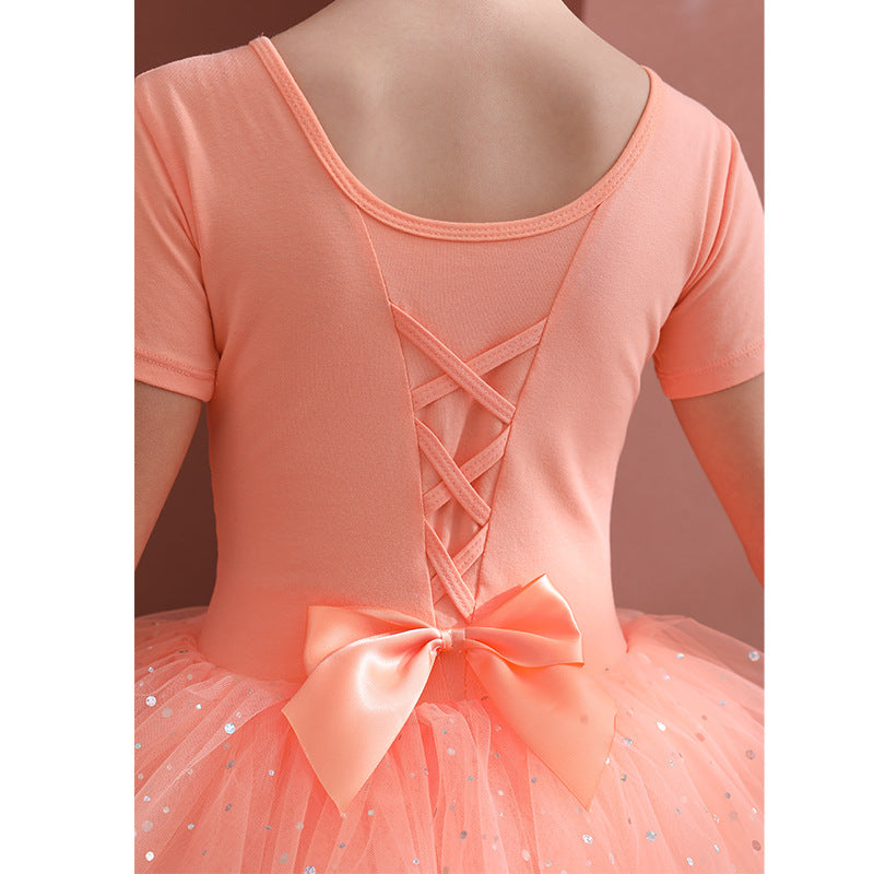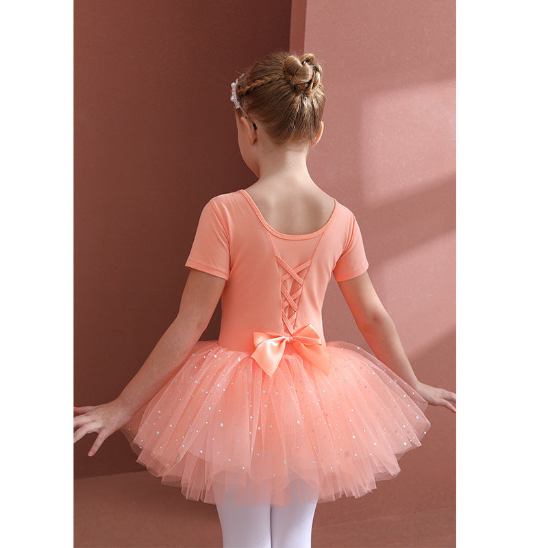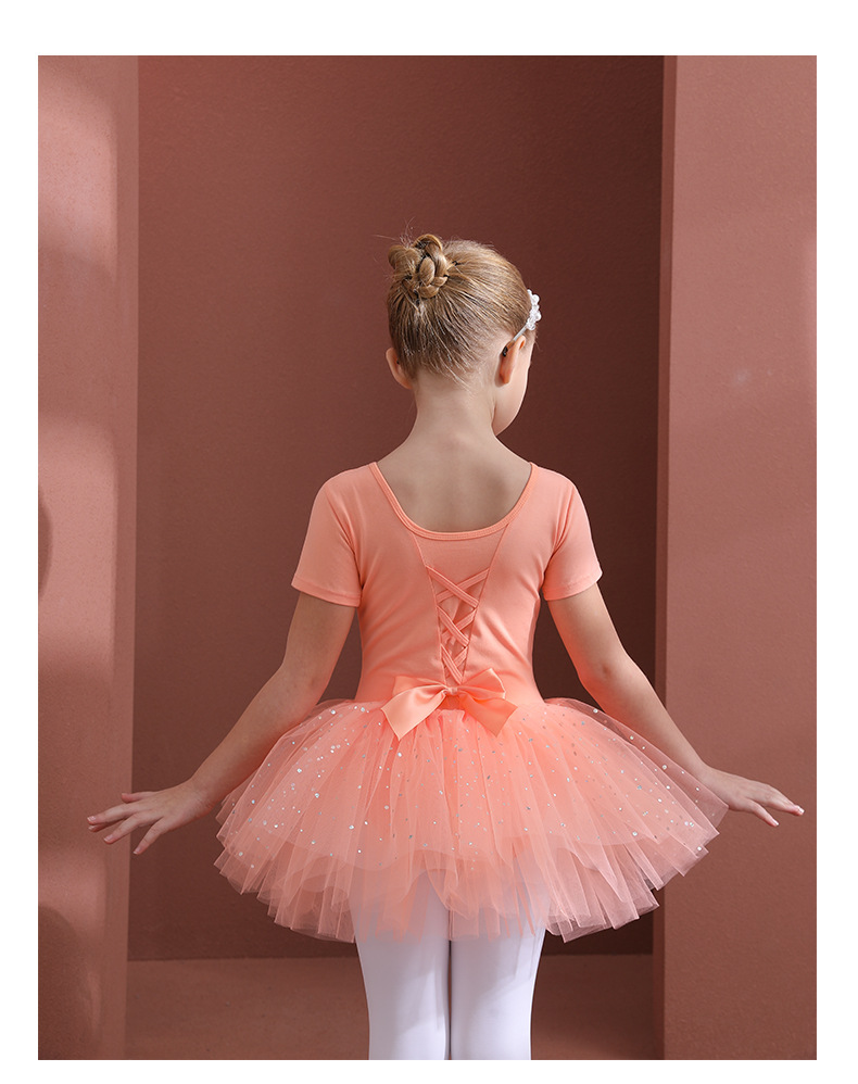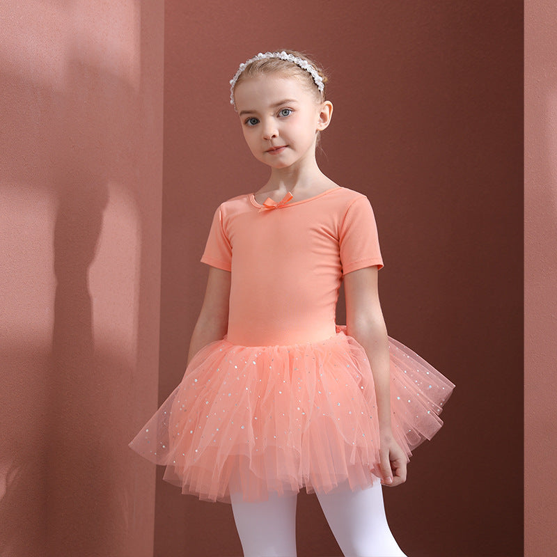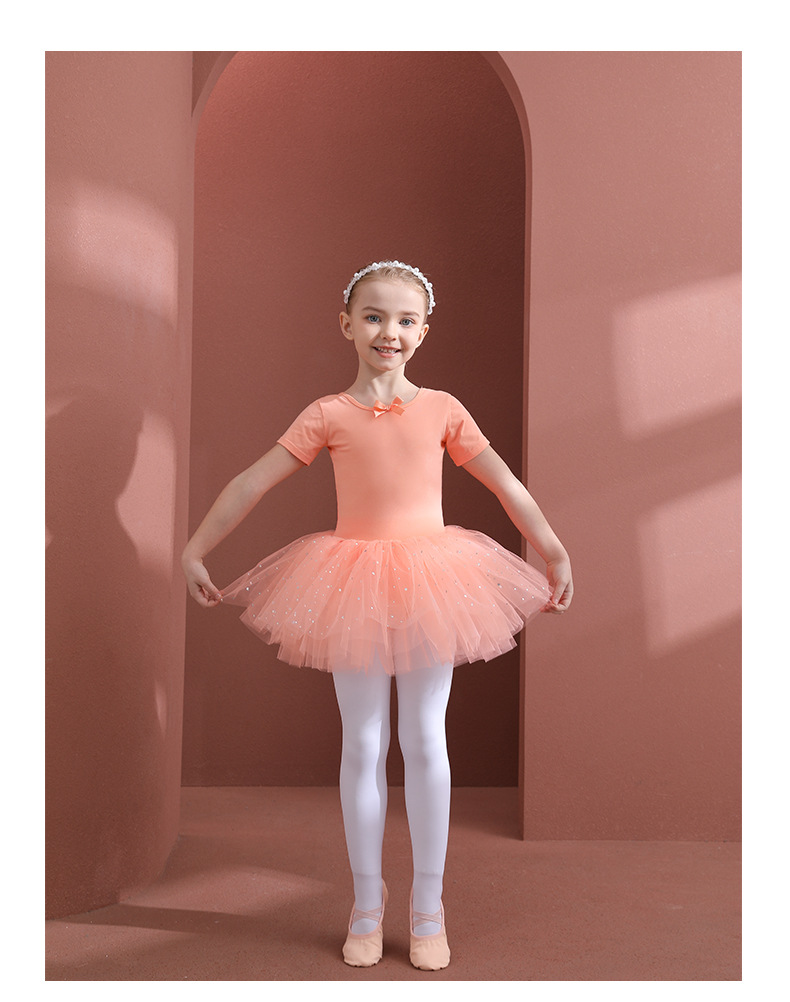 Orange girl ballet dress Kids Leotards Dance Tutu Skirt - Gymwear Professional Tutu Outfit Ballerina short-sleeved cotton