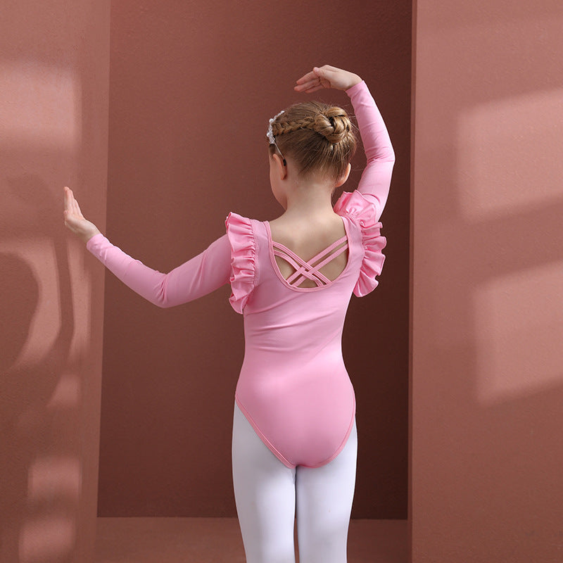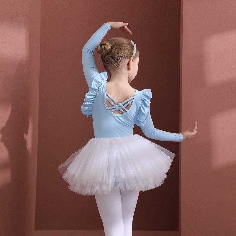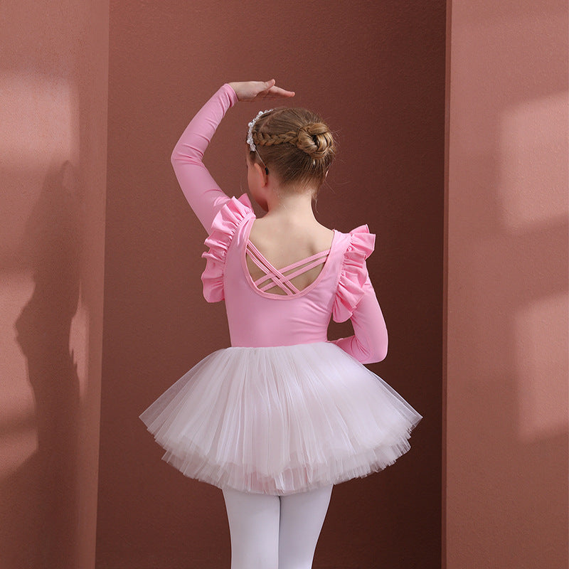 Pink Flutter Sleeve Girls Dance tutu for Ballet Ballerina Outfit for girls Princess Little Swan Artistic Skate wears long/short sleeve