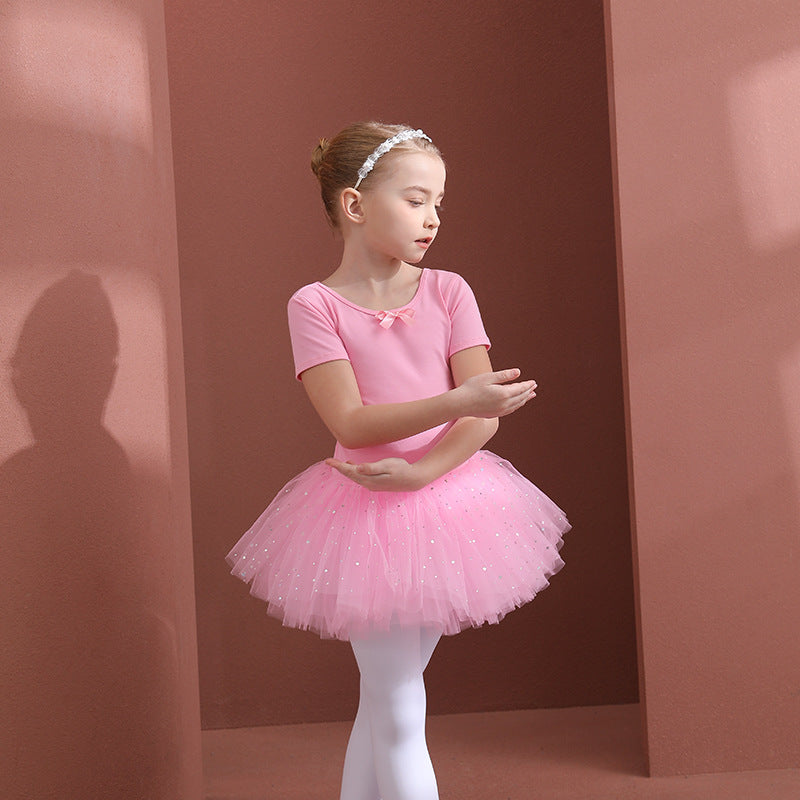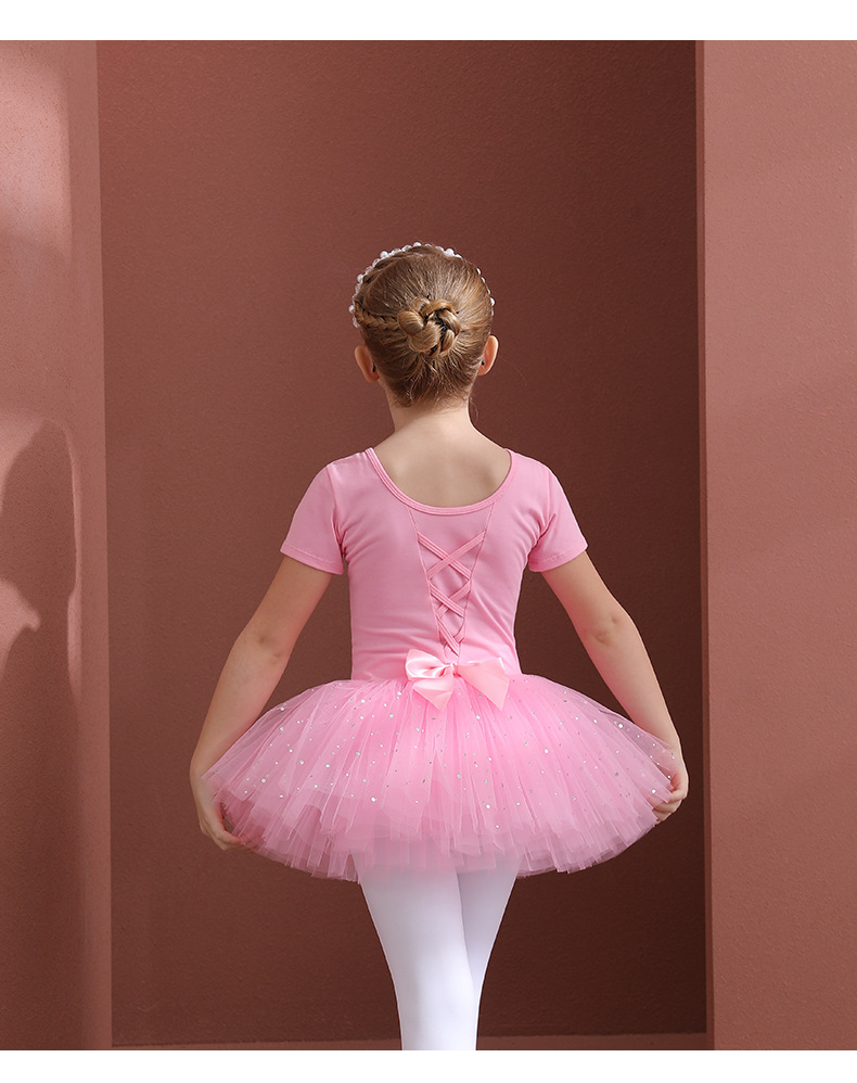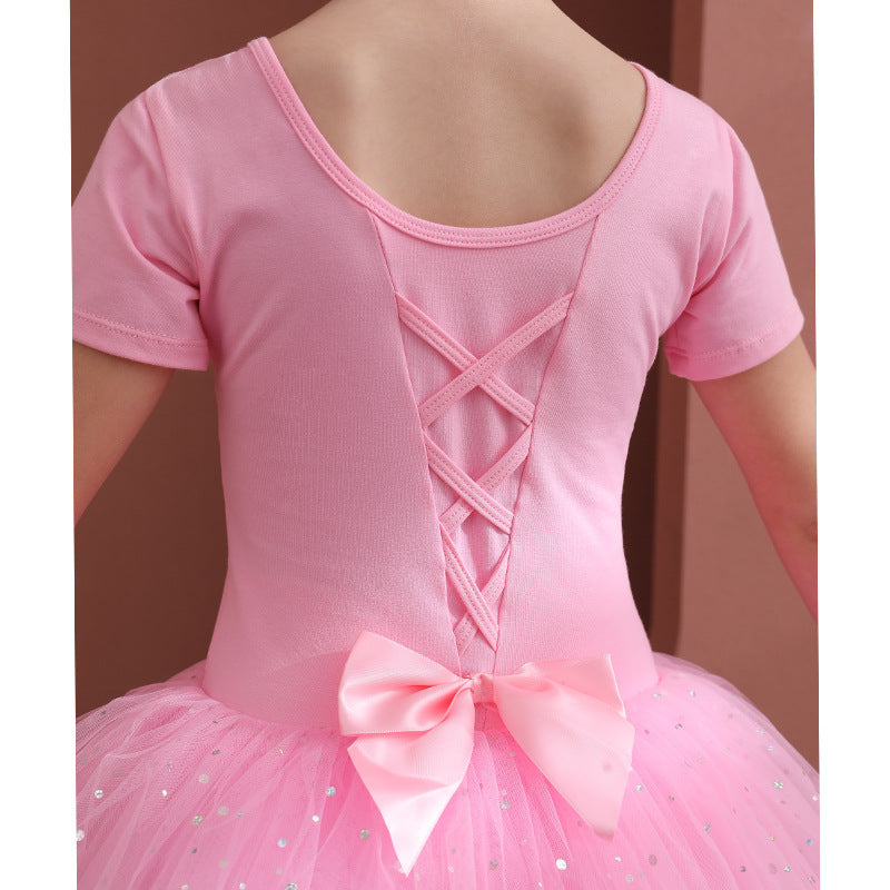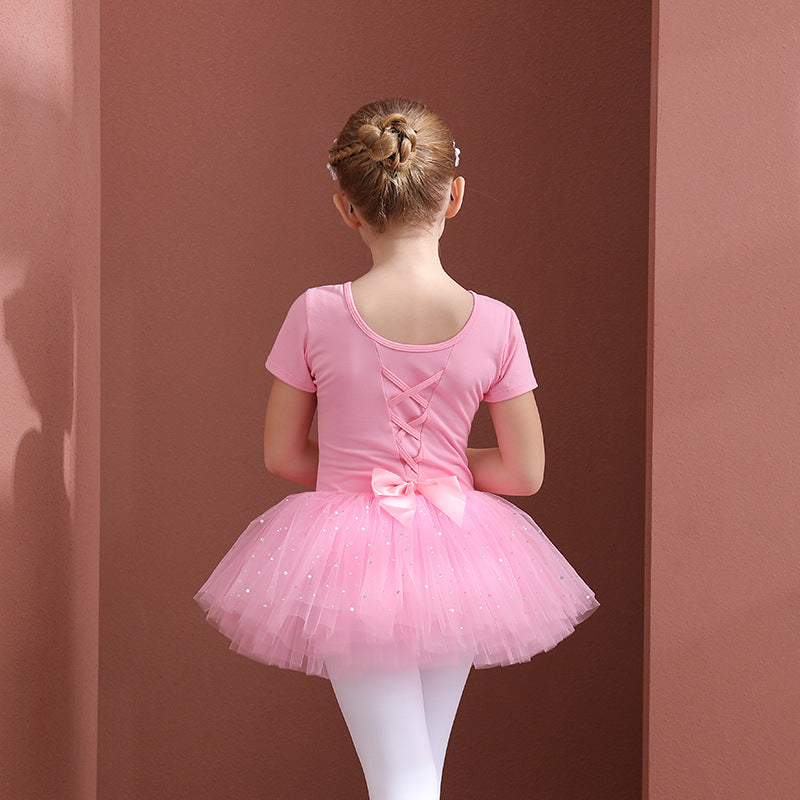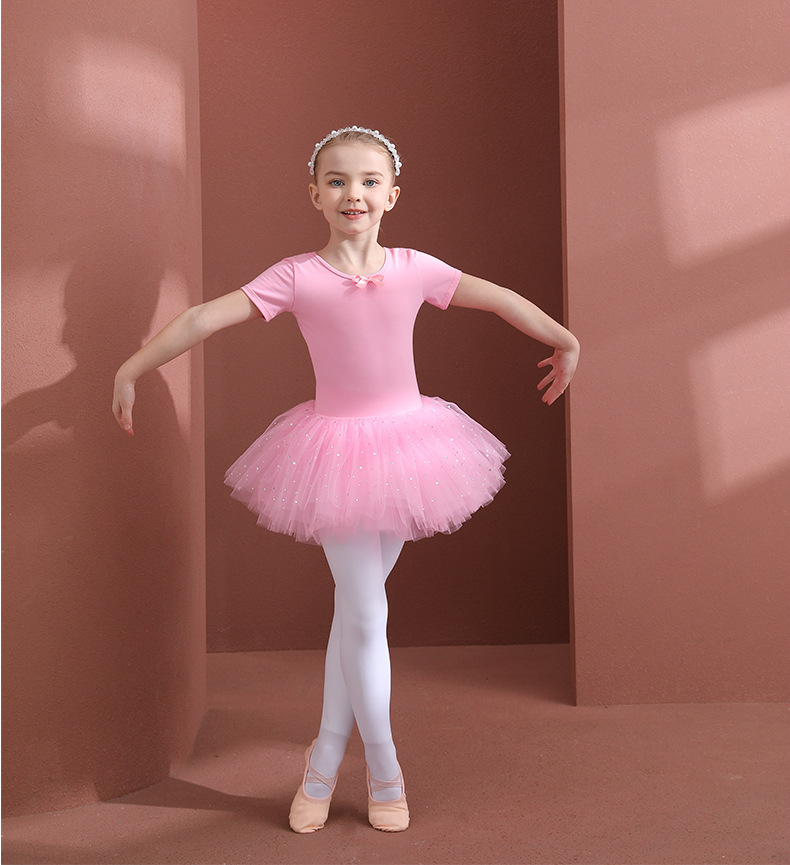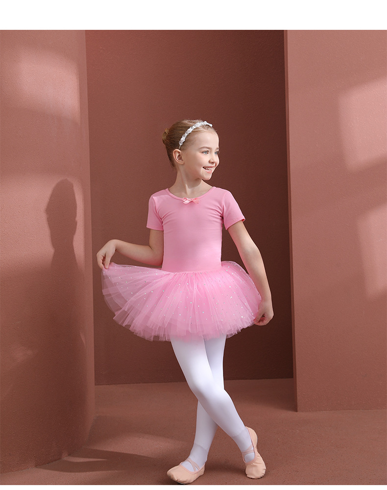 Pink girl ballet dress cotton kids leotard dance tutu skirt - Short-sleeved gymnastic outfit professional Tutu Outfit Ballerina
