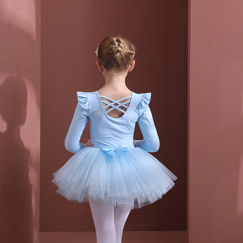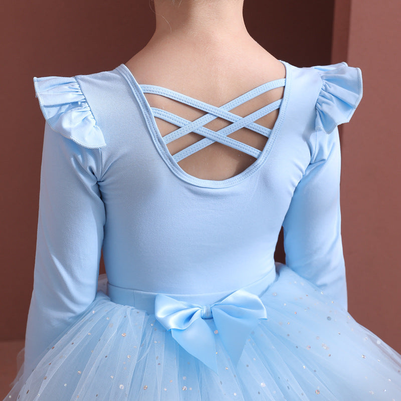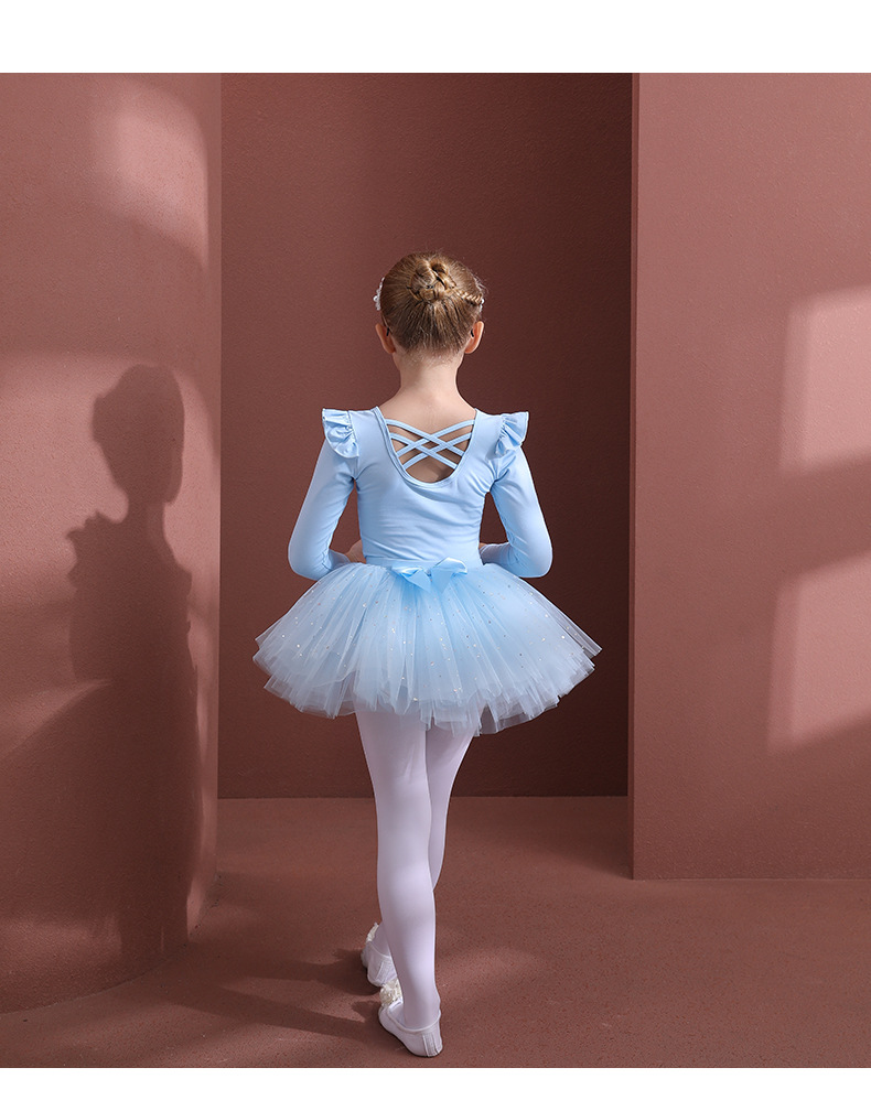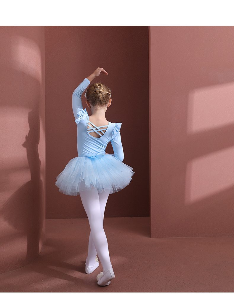 Sky blue girls Detachable Tutu Dance Costume kids Ballet Leotards with Skirt Ballerina Outfit Crisscross Back