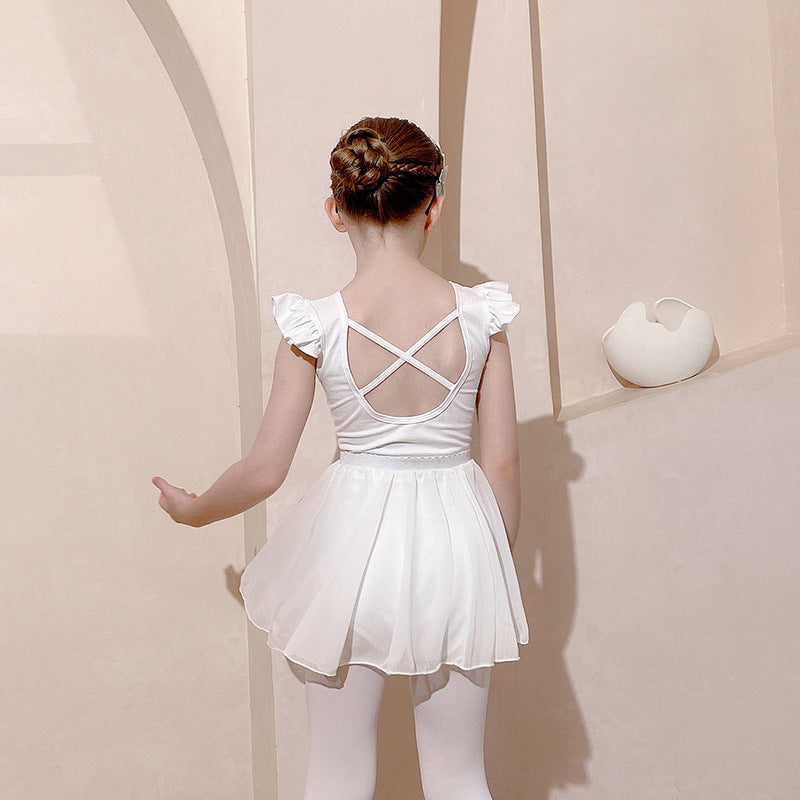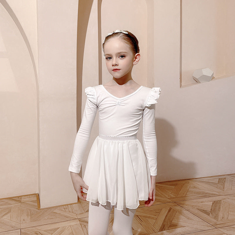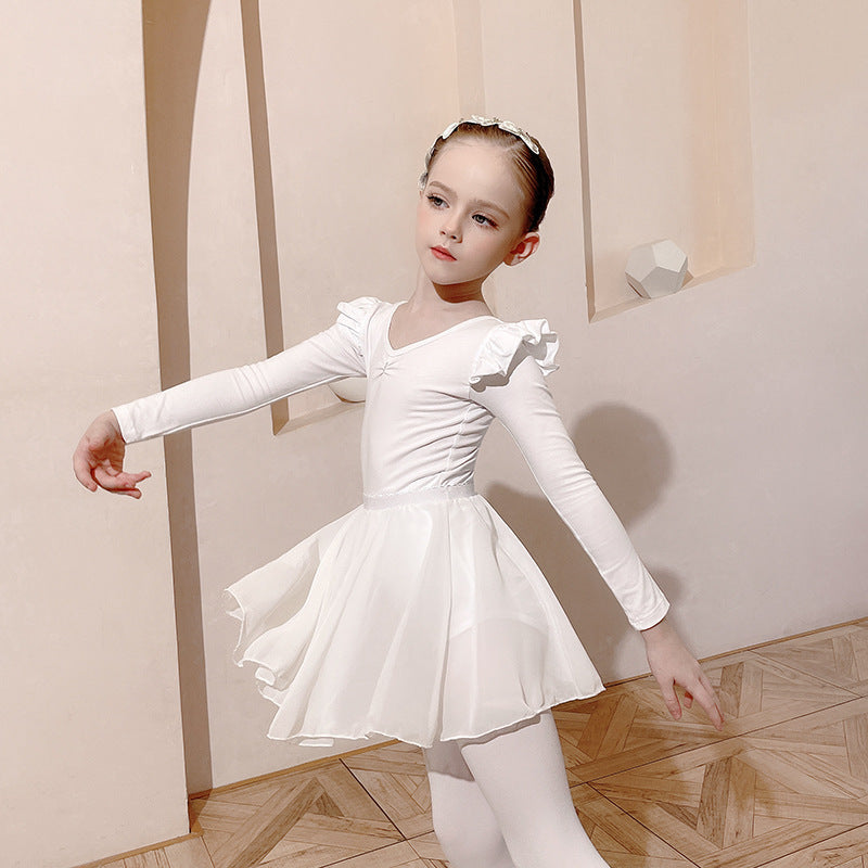 Girl white Ballet Leotards with Chiffon Skirt Autumn and winter kids Detachable Tutu Dance Costume Dance Performance Clothing