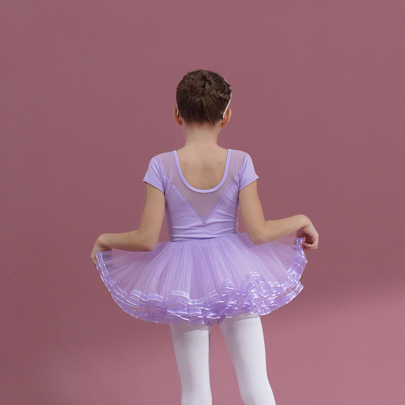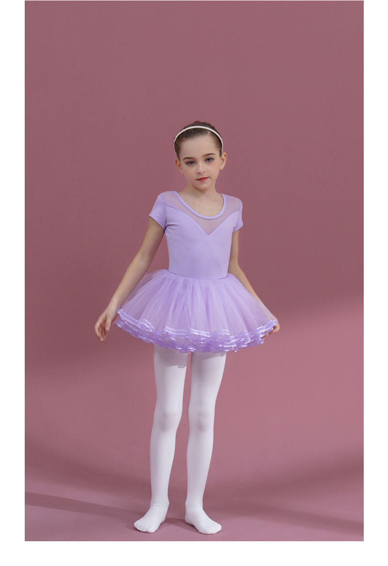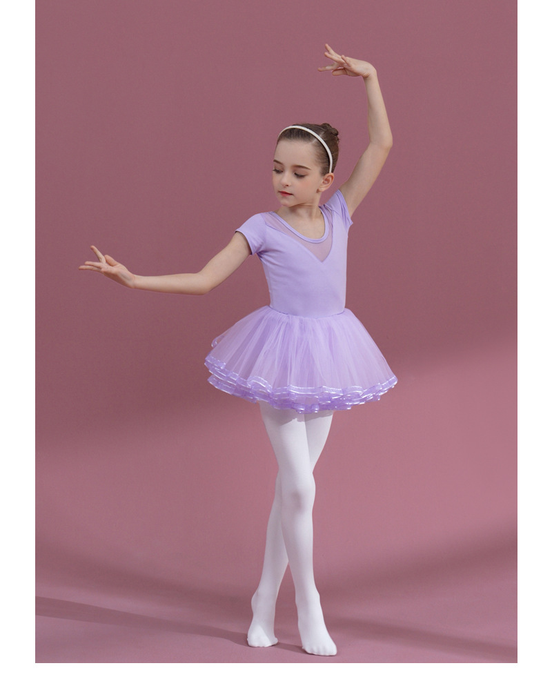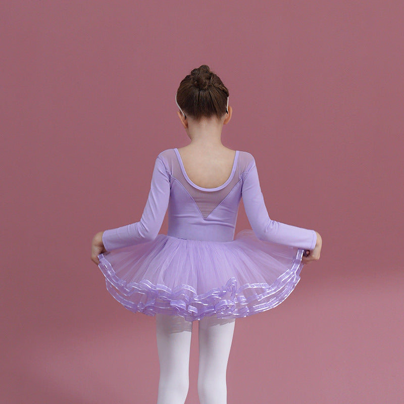 Girls Ballet Gauze Dress purple Ballerina Outfit Detachable Tutu Dance Costume short /long sleeve cotton Leotards