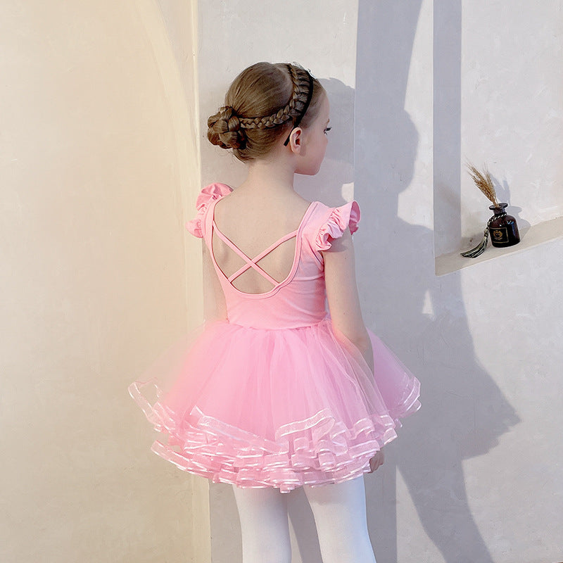 Girls dance Princess dress pink Detachable Tutu Dance Costume kids Ballerina Outfit Crisscross Back Flutter Sleeve