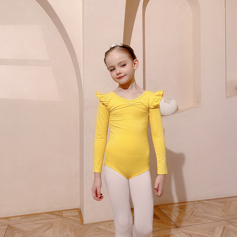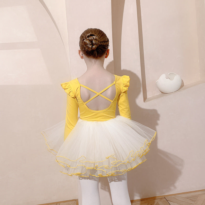 High-quality yellow children Ballet dress Detachable set Dance cotton Leotards with white Skirt