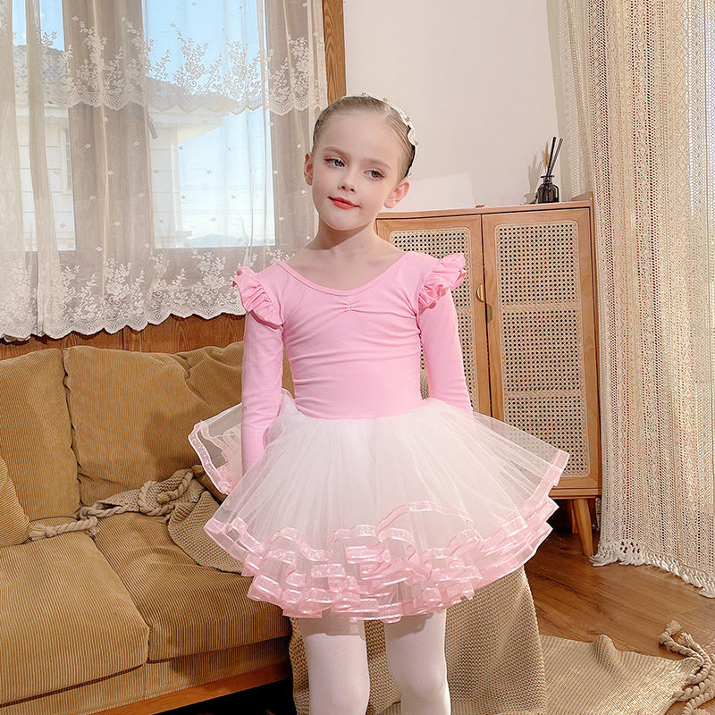 Long sleeve children ballet Princess dress Autumn and winter pink Detachable dance Leotards with Gauze Skirt