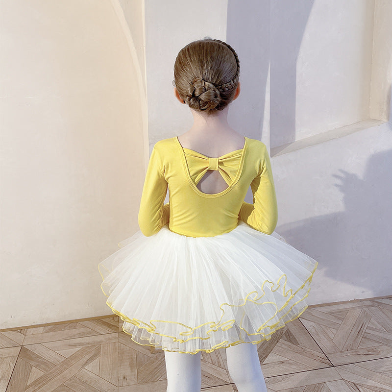Long sleeve kids ballet dress Separate Ballet Leotards with white Gauze Skirt Performance Costume Ballerina Outfit