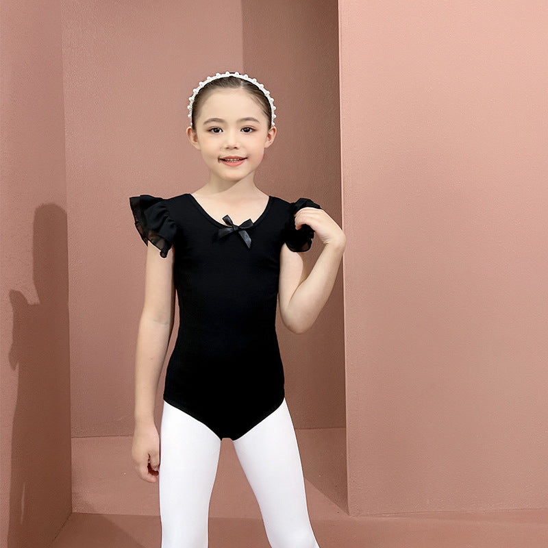 Princess dance dress for kids  Little Swan Artistic Skate wears Black dots Flutter Sleeve Ballet Leotards with tutu Gauze Skirt