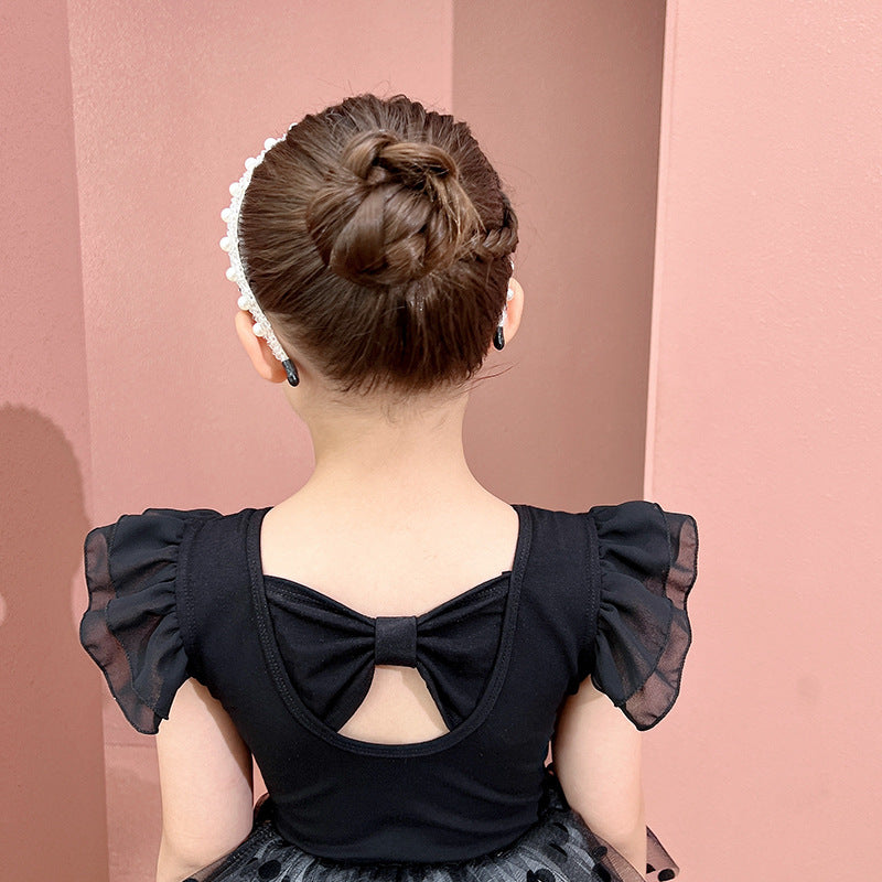 Princess dance dress for kids Little Swan Artistic Skate wears Black dots Flutter Sleeve Ballet Leotards with tutu Gauze Skirt