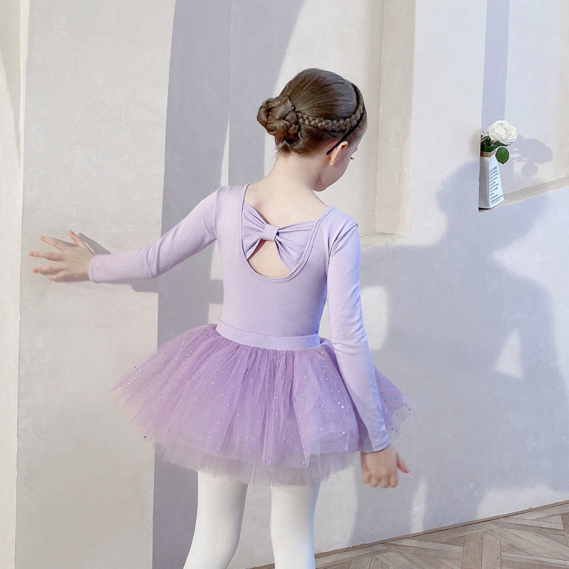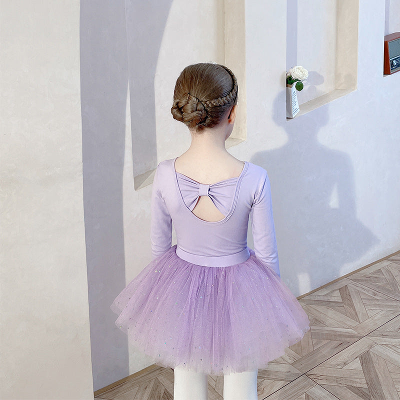 Princess dance girls dress Little Swan Artistic Skate wears detachable Tutu Dance Costume purple Knowkot Back long sleeve