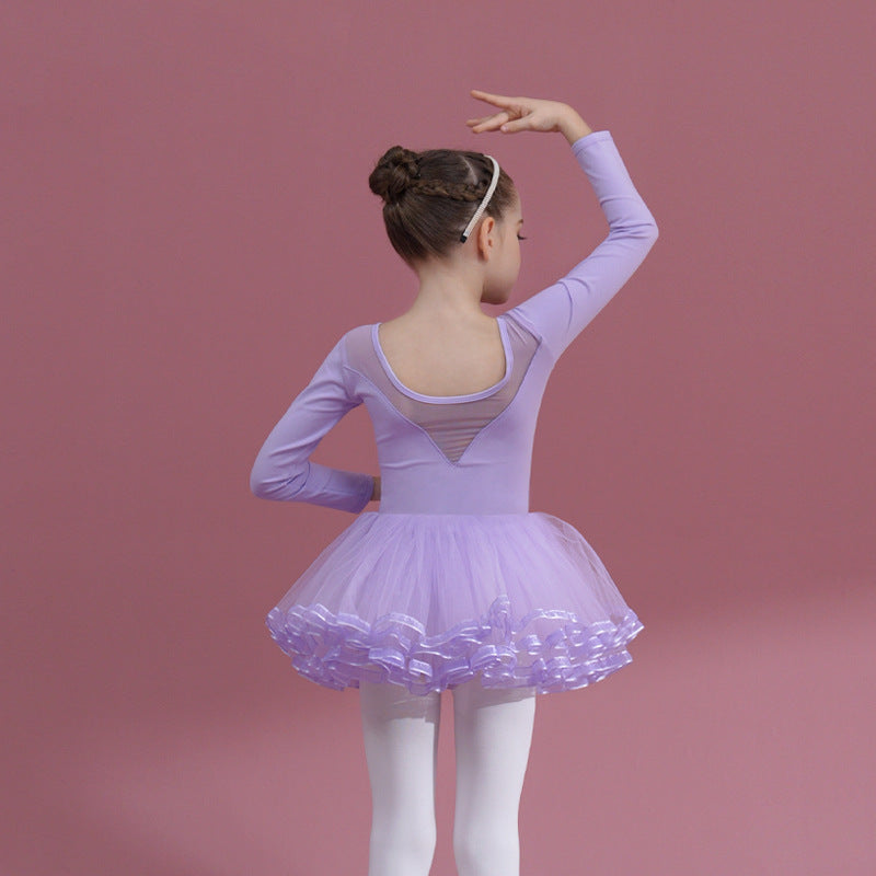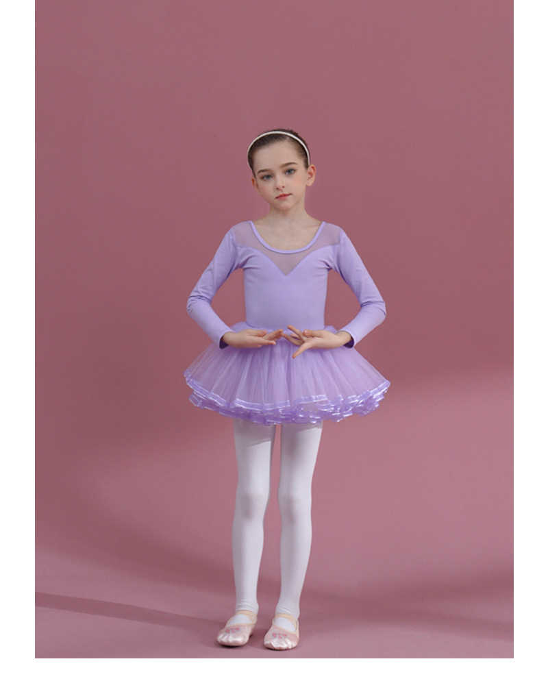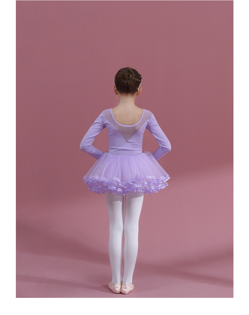 Purple short/long sleeve Girl Ballet Leotards with Skirt kids Jumpsuit Detachable Tutu Dance Costume Princess dress