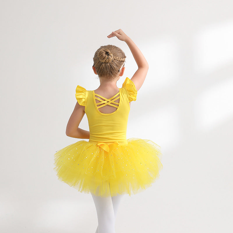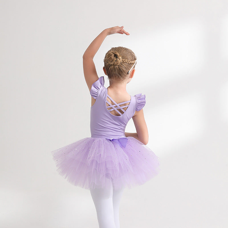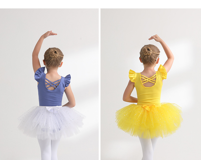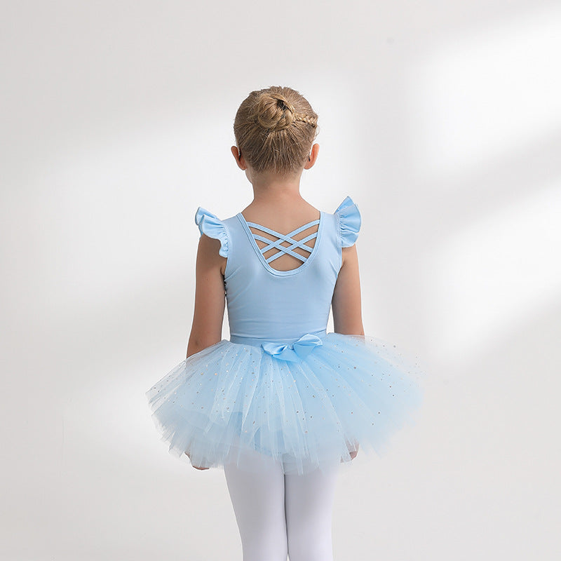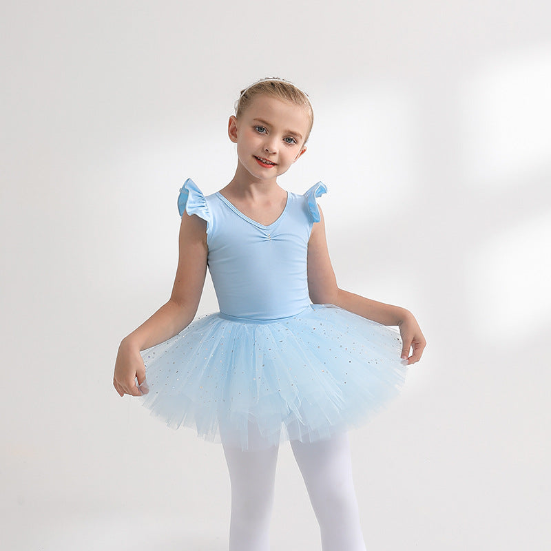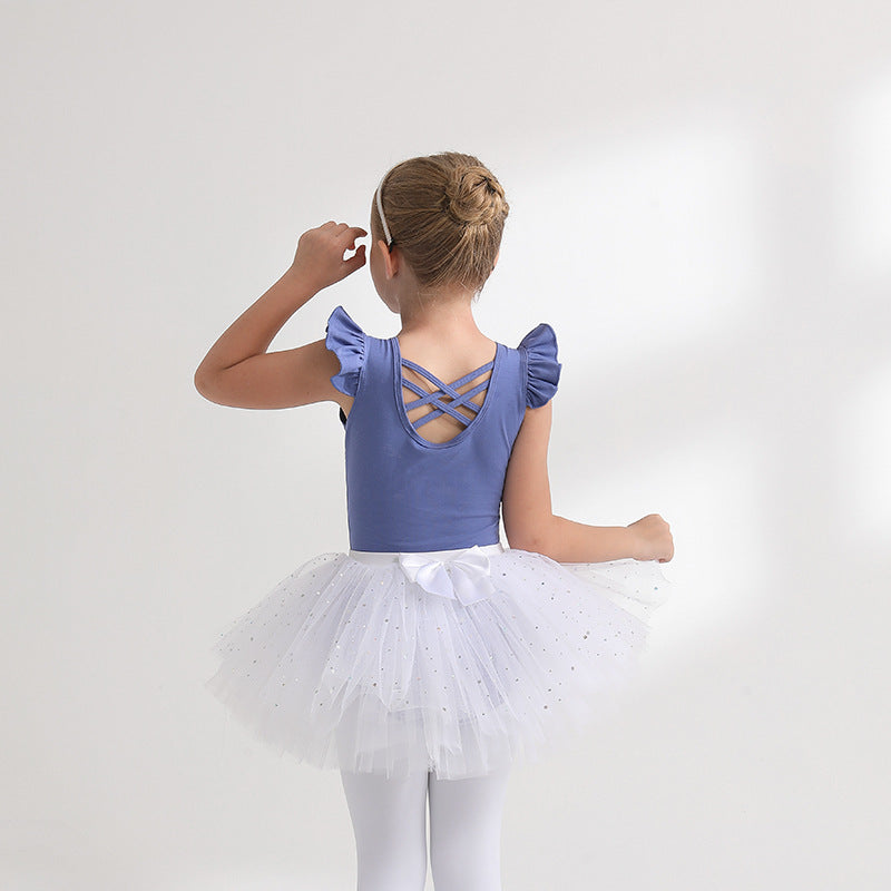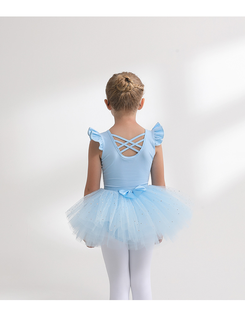 Sky blue Girl Ballet Leotards with Gauze Skirt Detachable kids Flutter Sleeve Ballet dance Princess dress