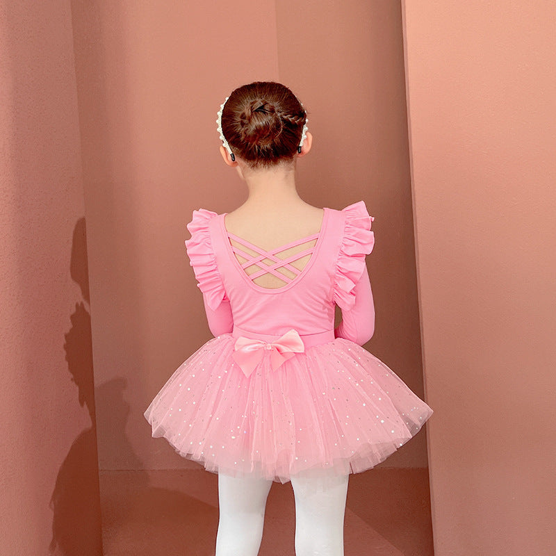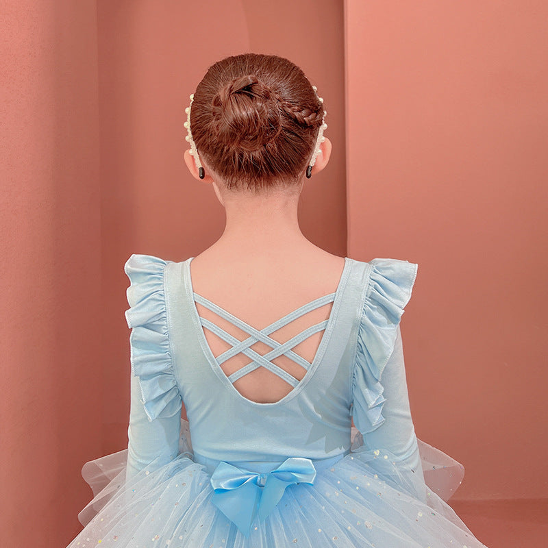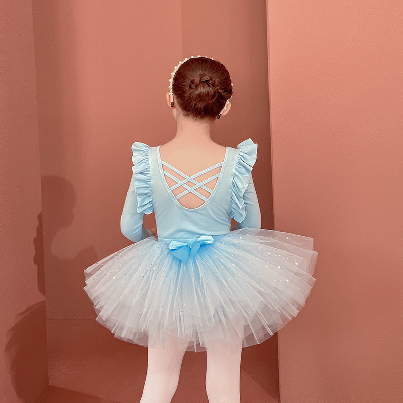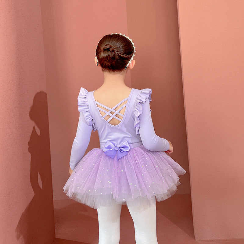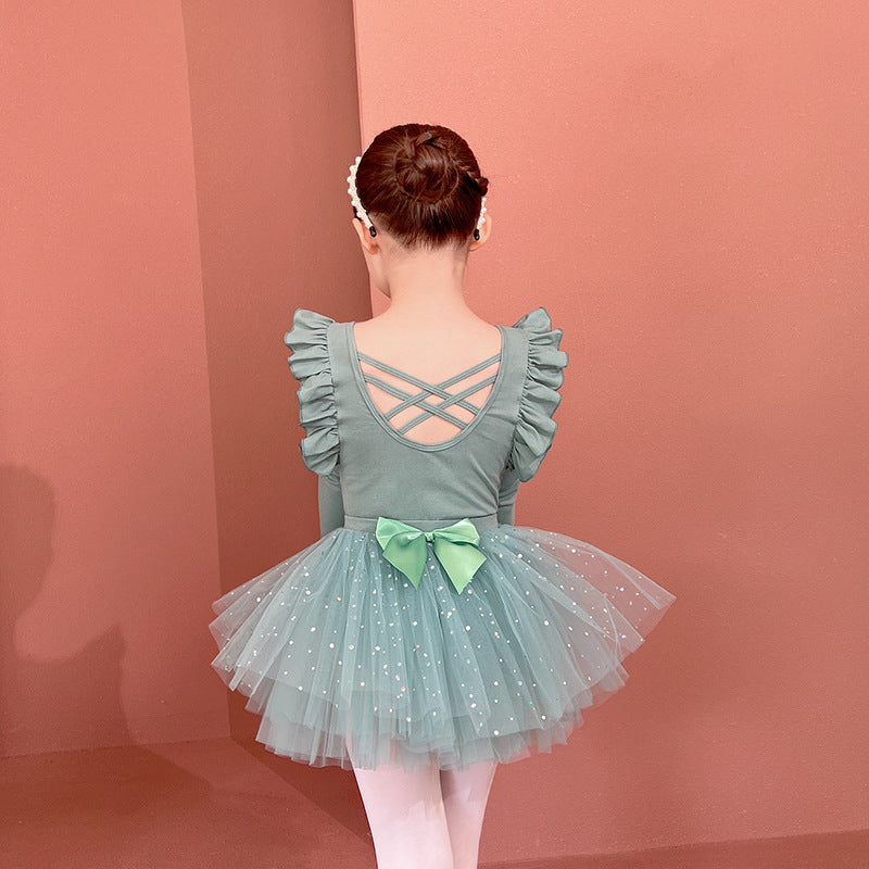 Sparkly chiffon Dance Dress for kids Detachable Tutu Dance Costume Ballerina Outfit Girls Flutter Sleeve Ballet Leotards