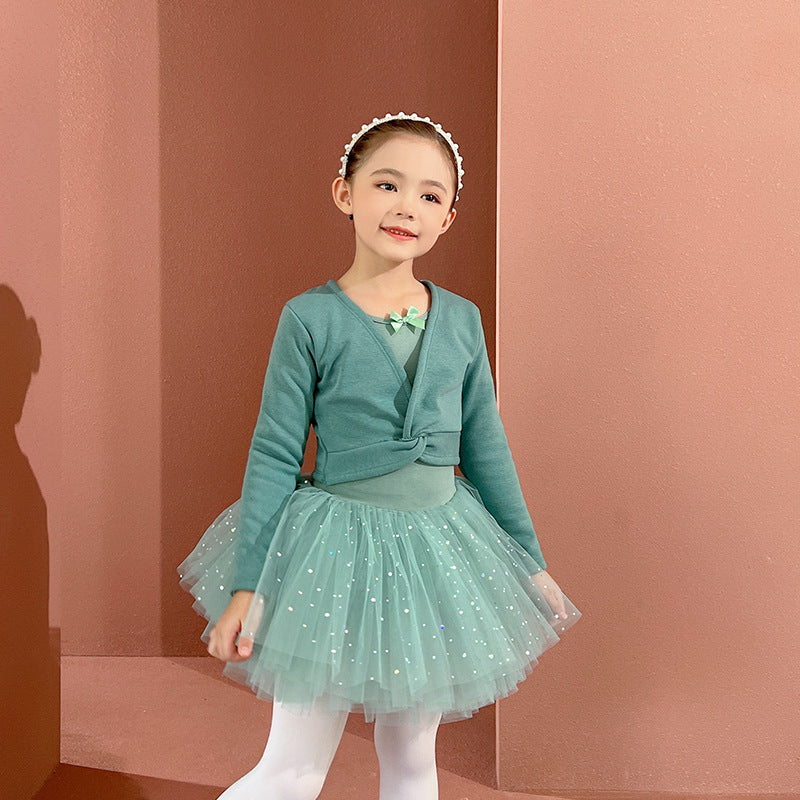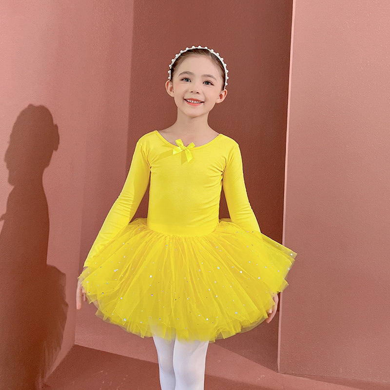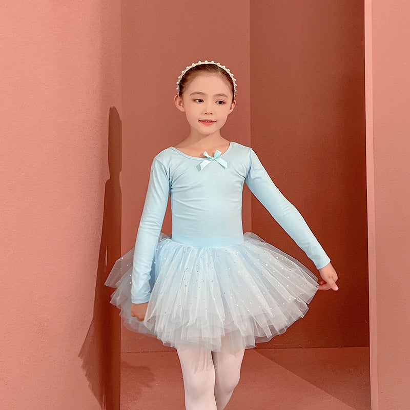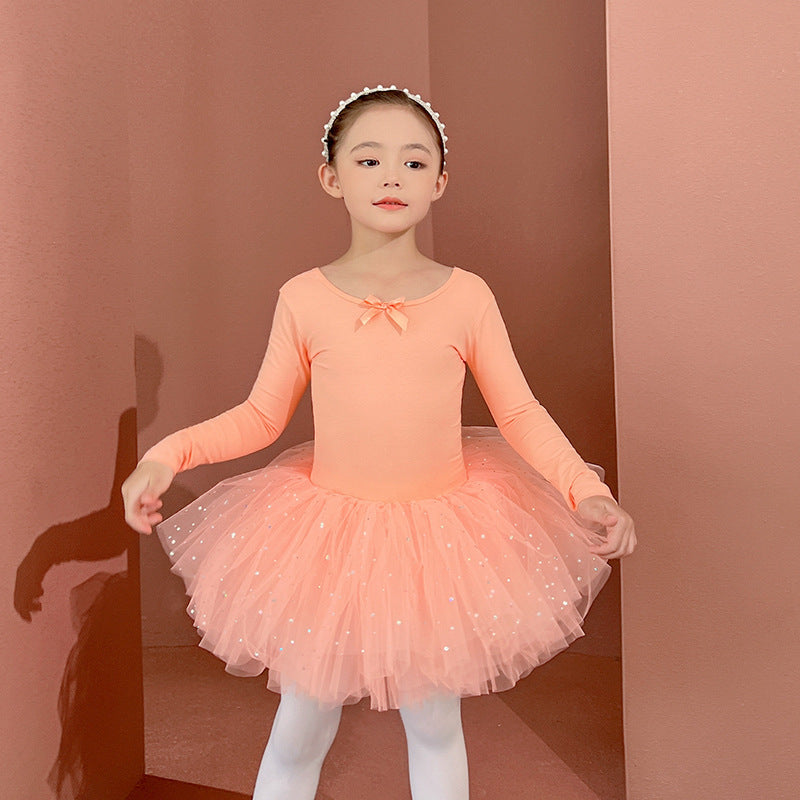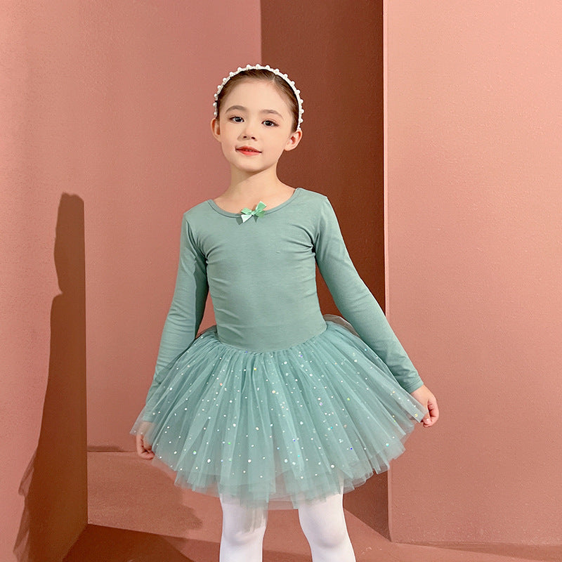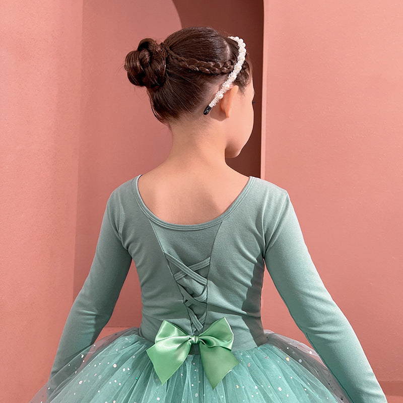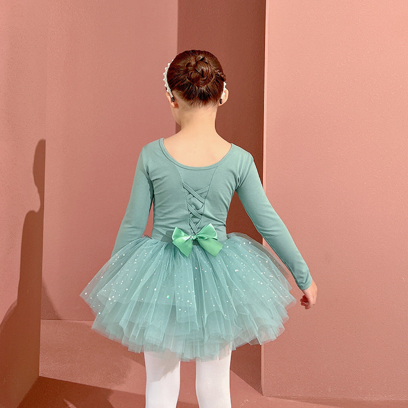 Sparkly chiffon Dance Dress kids Princess Tutu Dance Costume Autumn and winter long sleeve cotton Ballerina Outfit