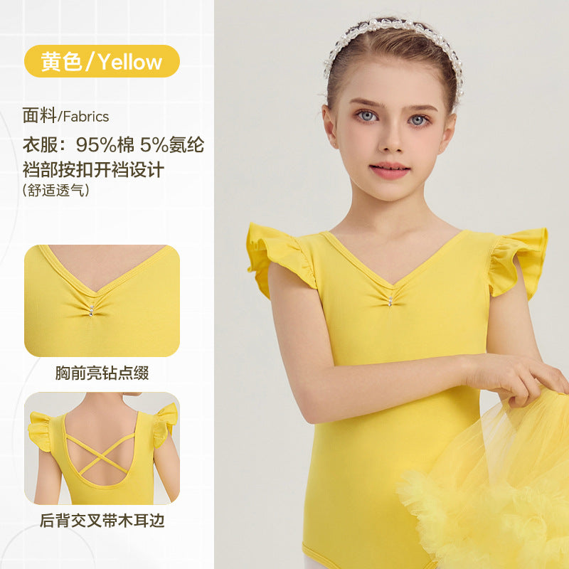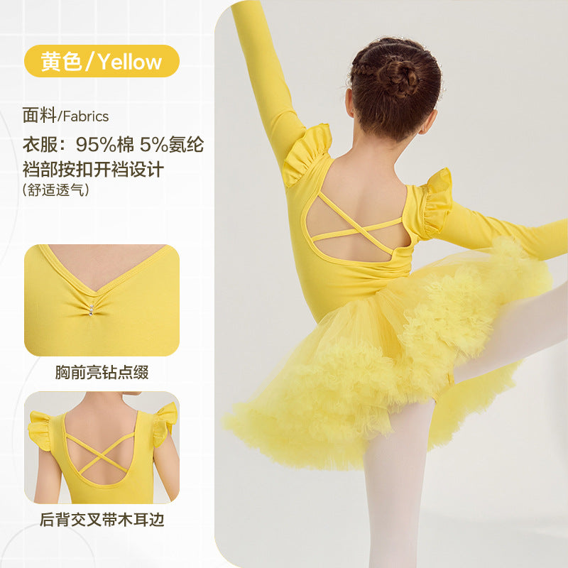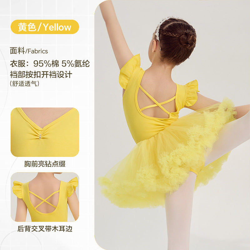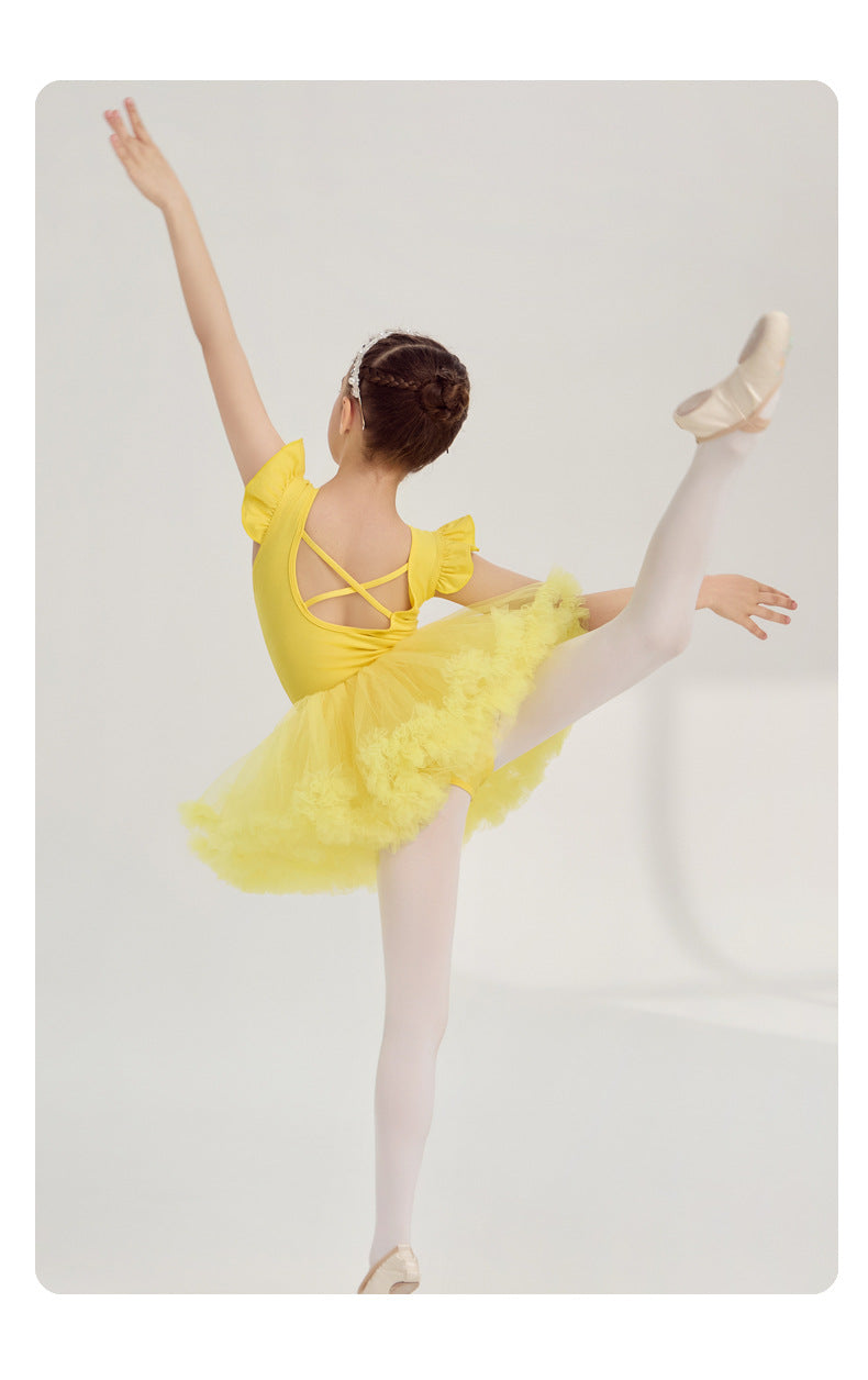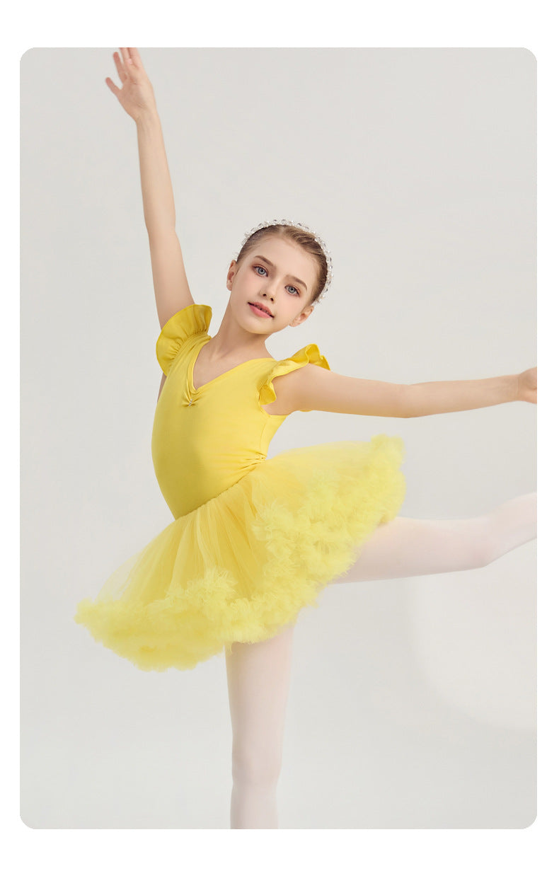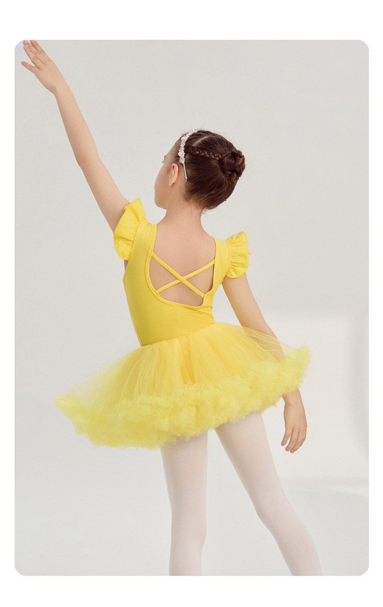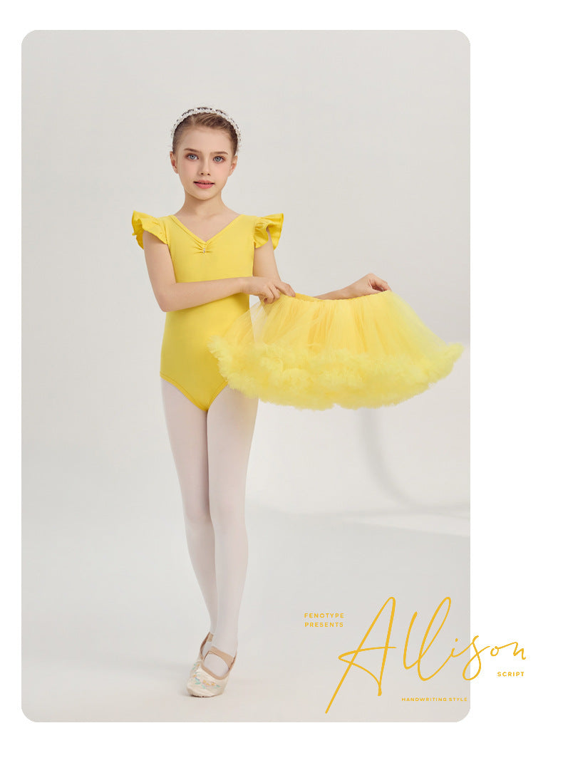 yellow kids Ballet Leotards with Gauze Skirt Princess dance dress Flutter Sleeve Detachable Tutu Dance Costume