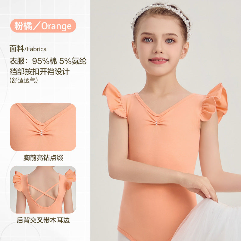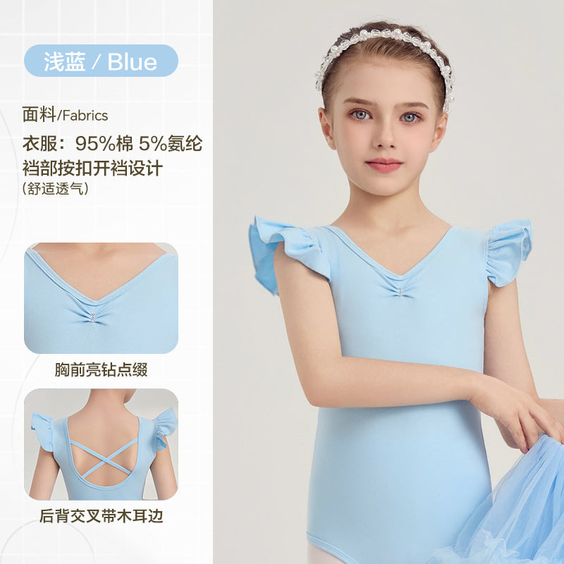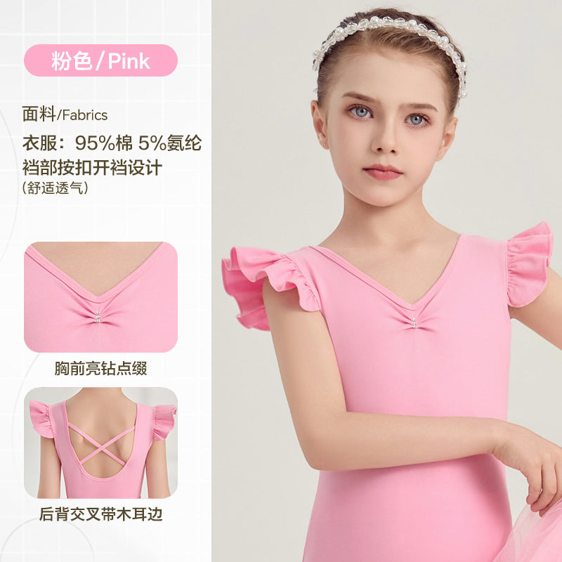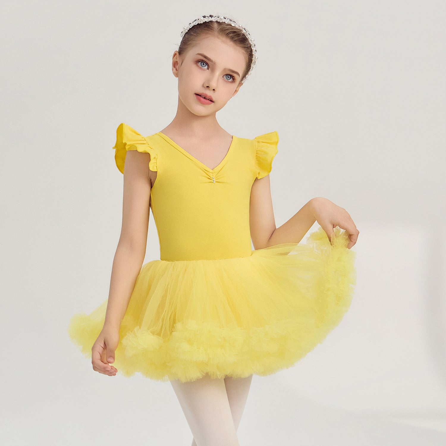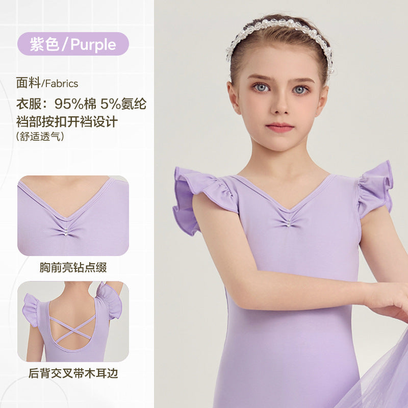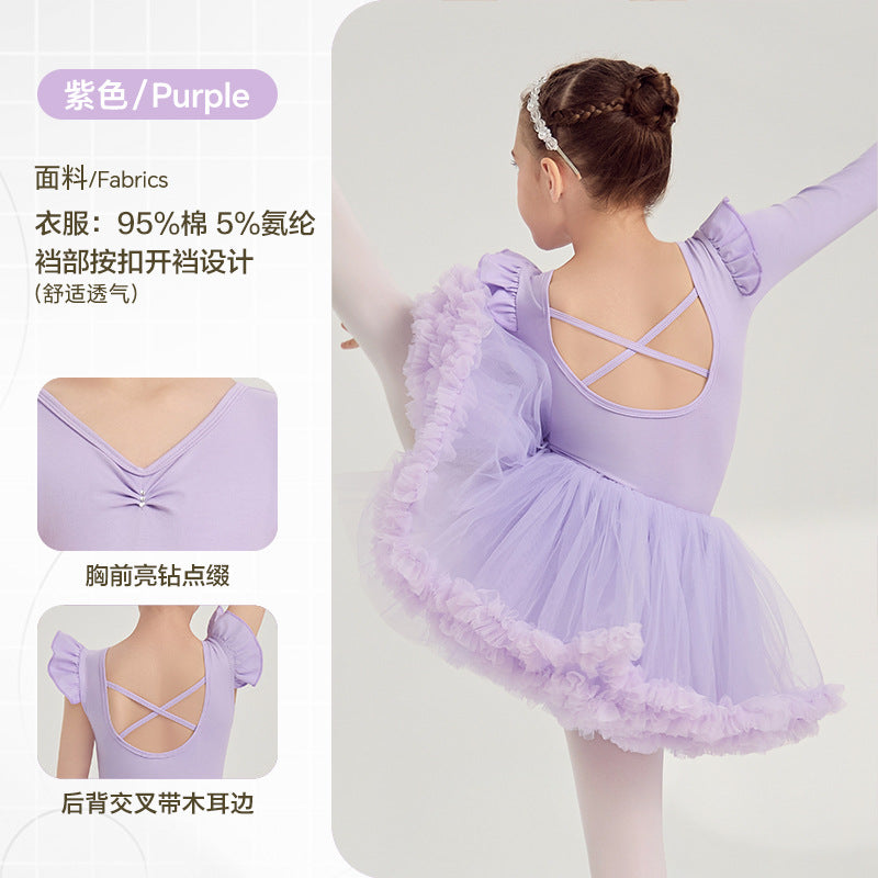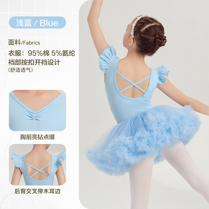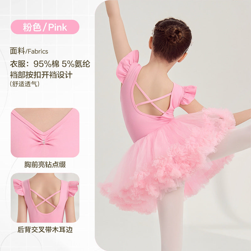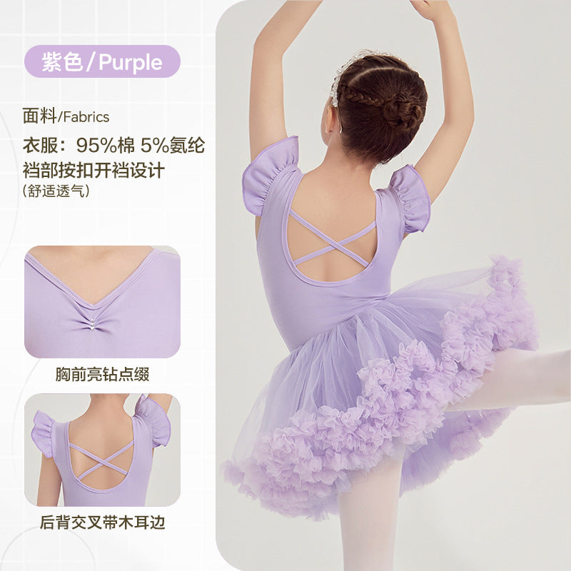 yellow kids Ballet Leotards with Gauze Skirt Princess dance dress Flutter Sleeve Detachable Tutu Dance Costume