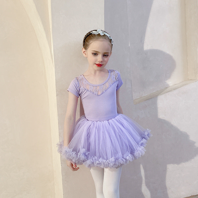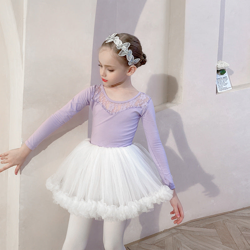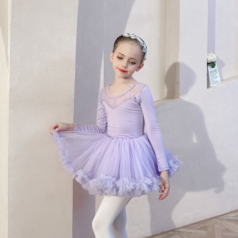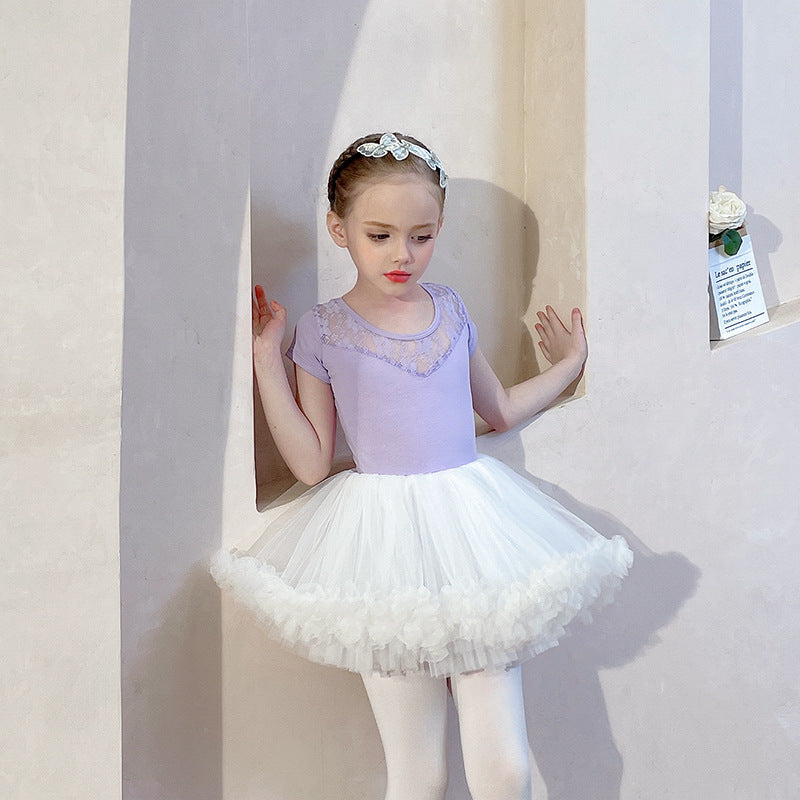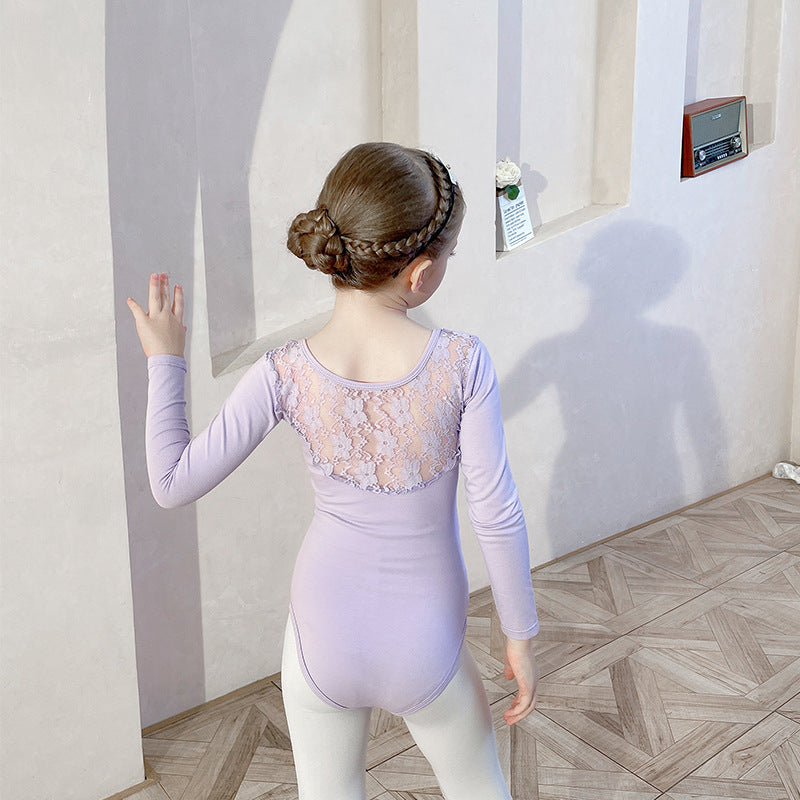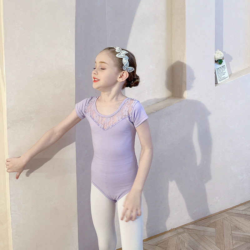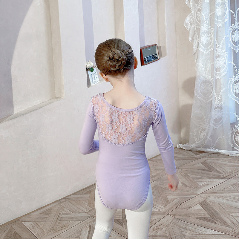 Purple lace back ballet leotard for kids Gymwear / Performance Costumes Solid/Training wear for kids /short/long sleeve