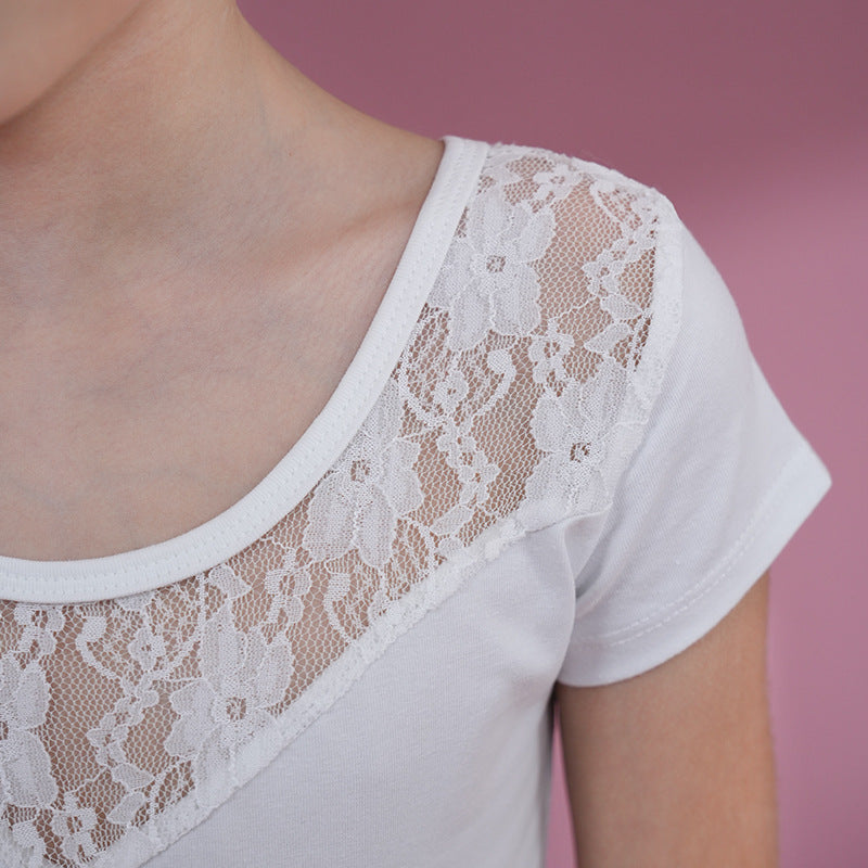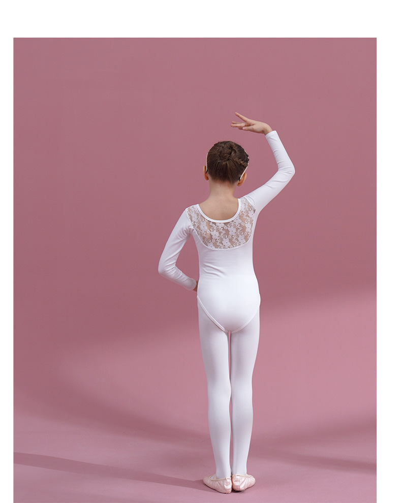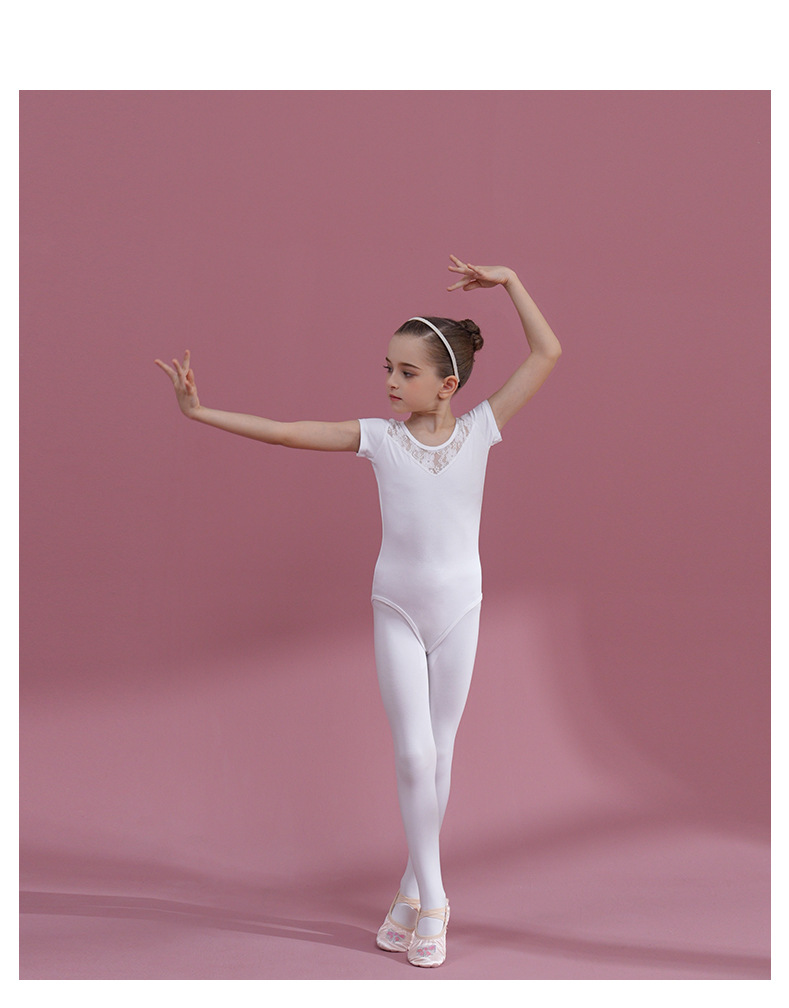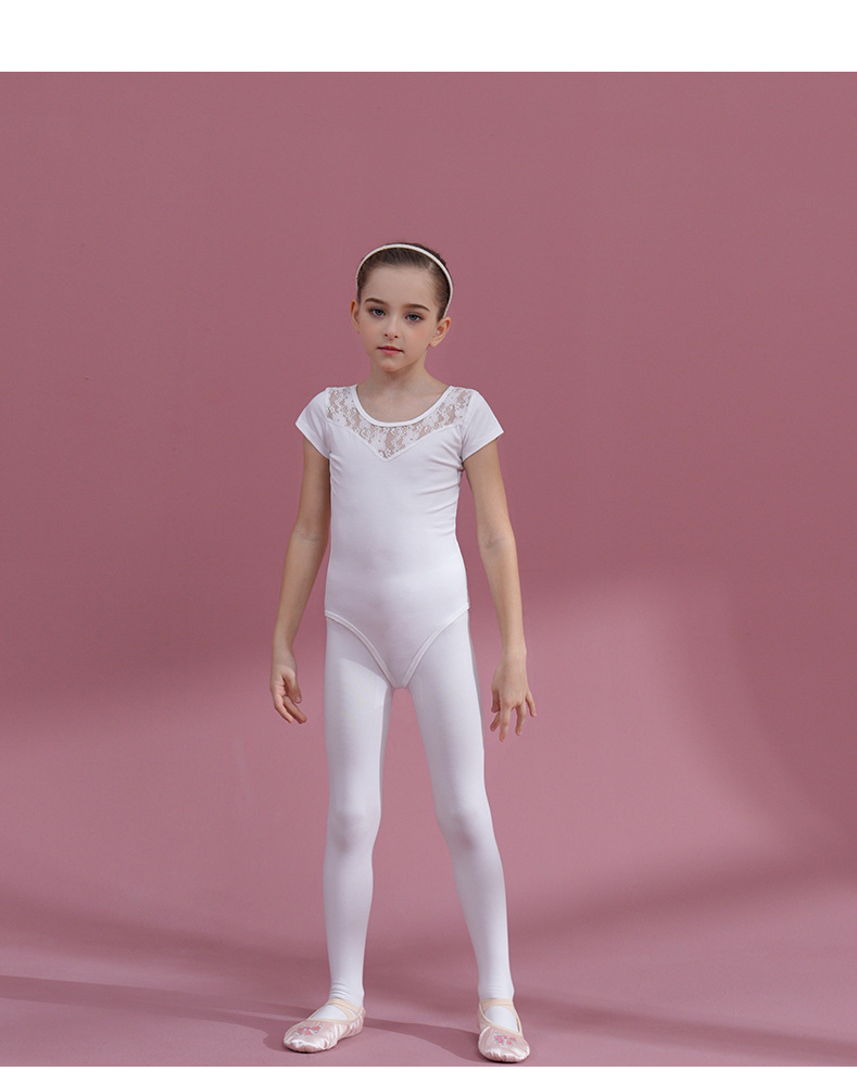 White Lace back kids dance Leotards 100% cotton girls ballet jumpsuits short/long sleeve Dance Costume