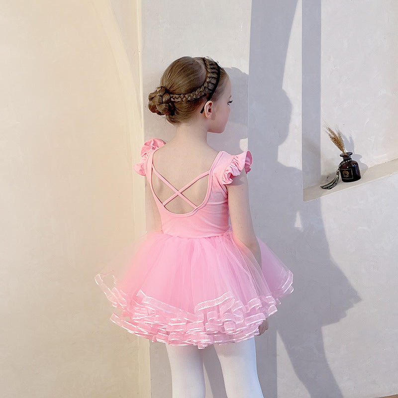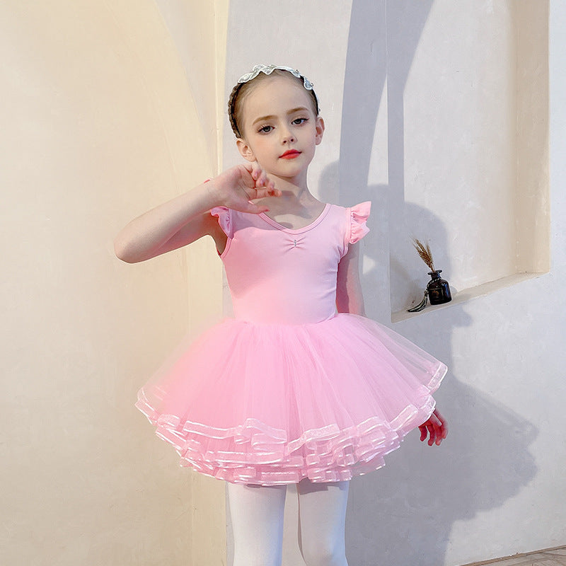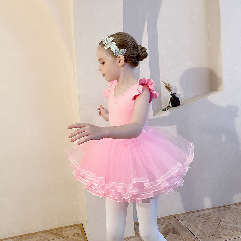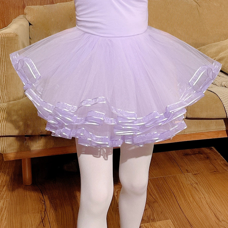 Four-layer chiffon pink children skirt short skirt Ballerina tutu skirt Girls Ballet Gauze skirt