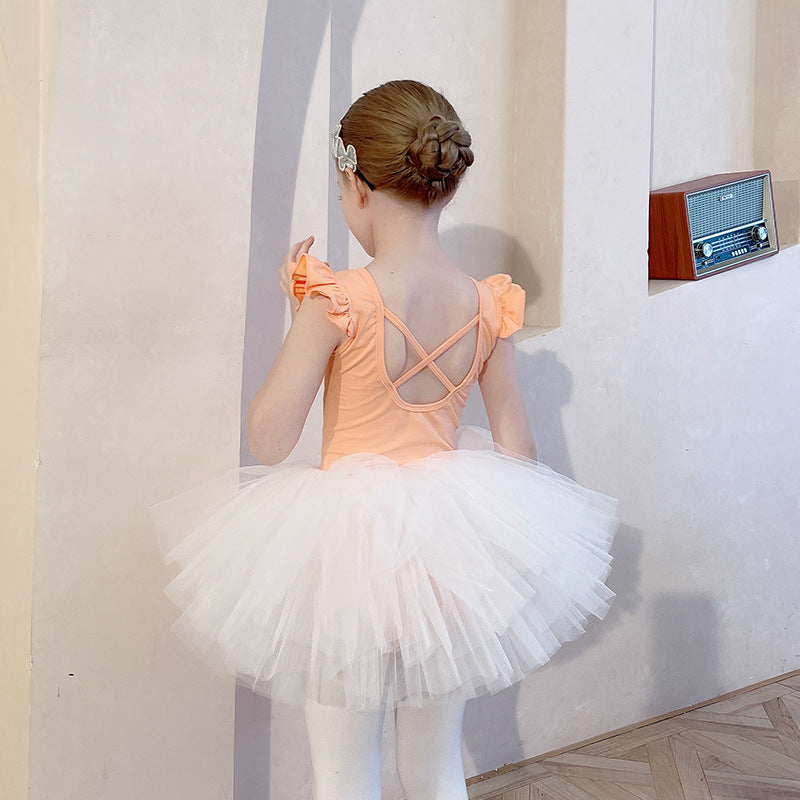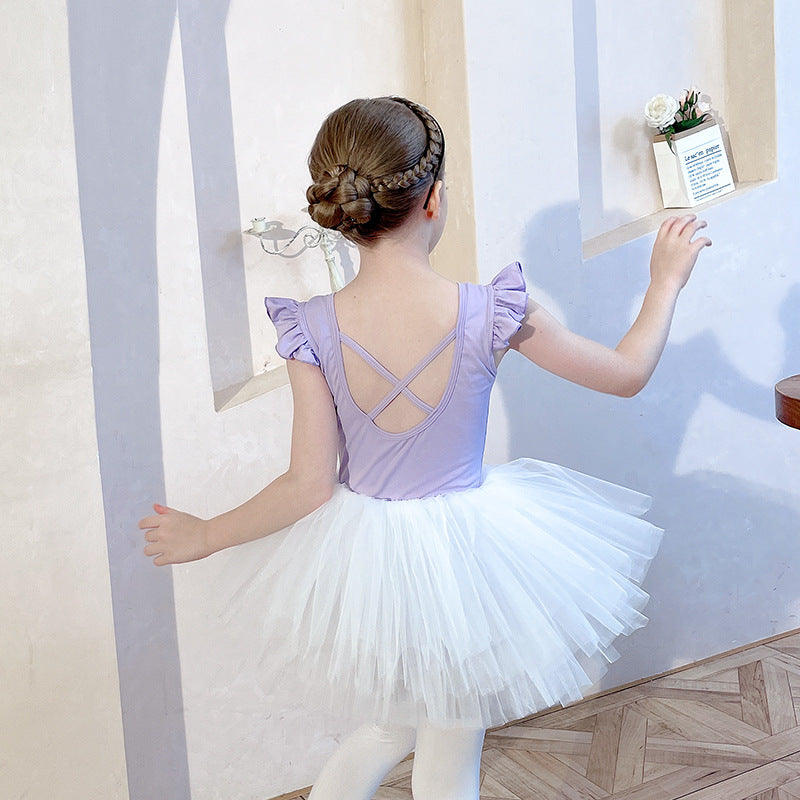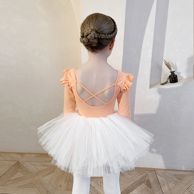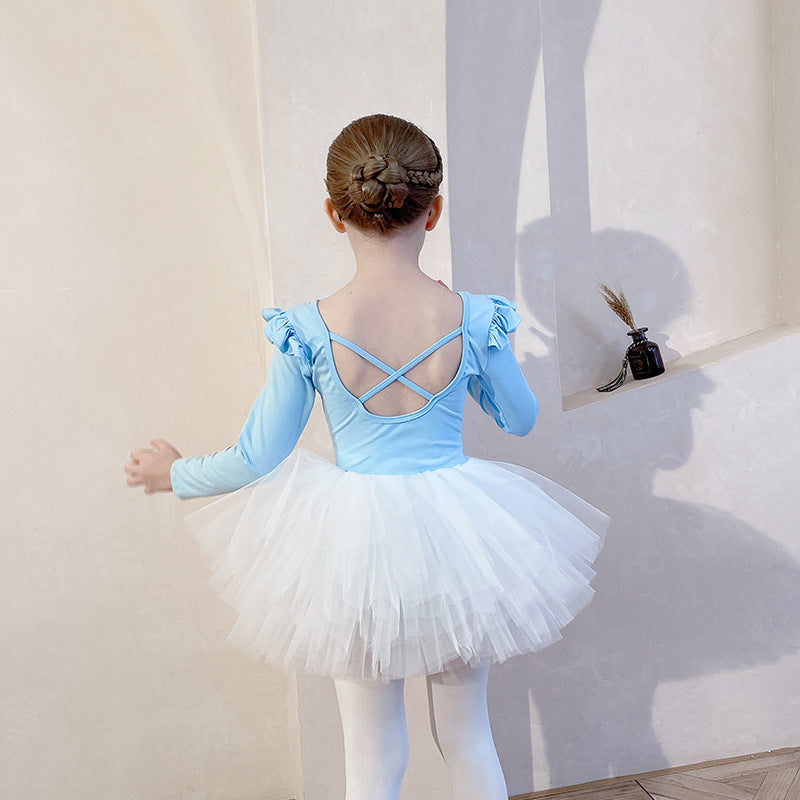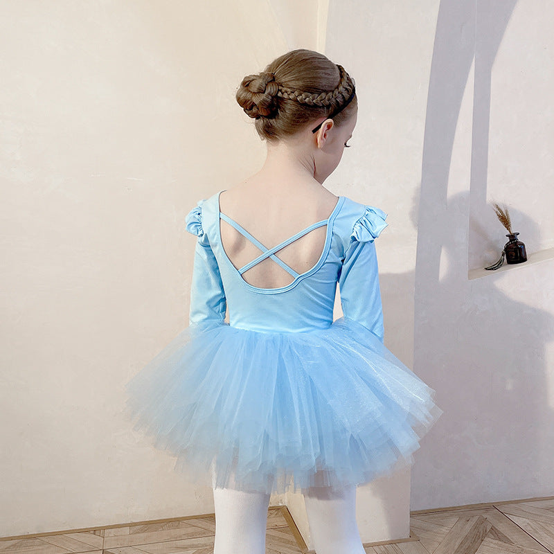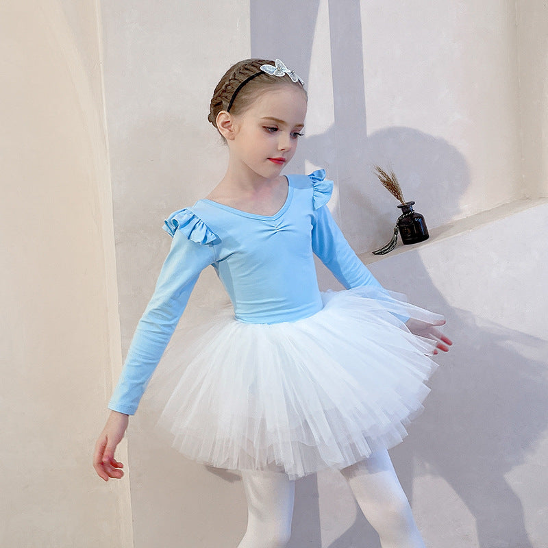 Ballet Leotards 4 Layers Puffy Tutu Skirt for girls short/long slevee Dance Dancer Outfit Rhythmic Gymnastics Bodysuit Dress bule