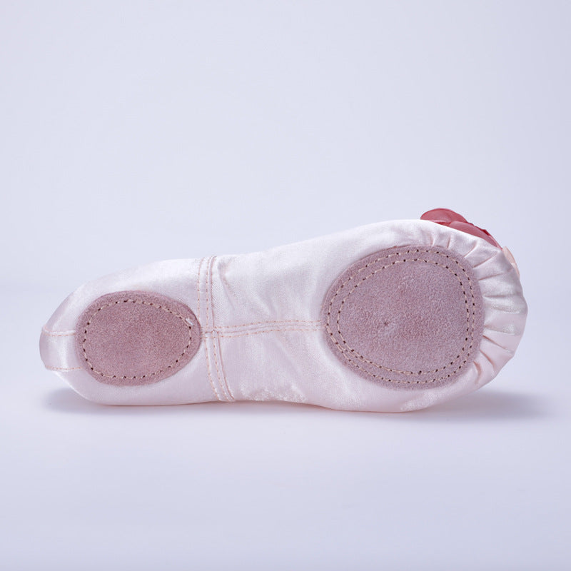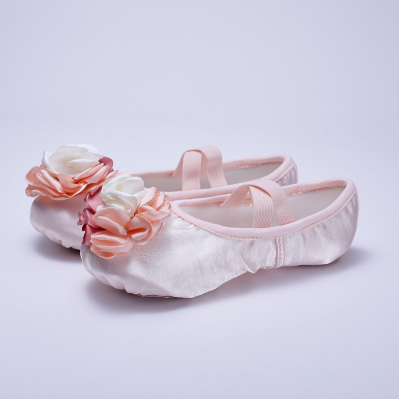 Beige large rose kids' dance shoes, pink yoga practice shoes, children's ballet dance shoes,Anti-slip shoes