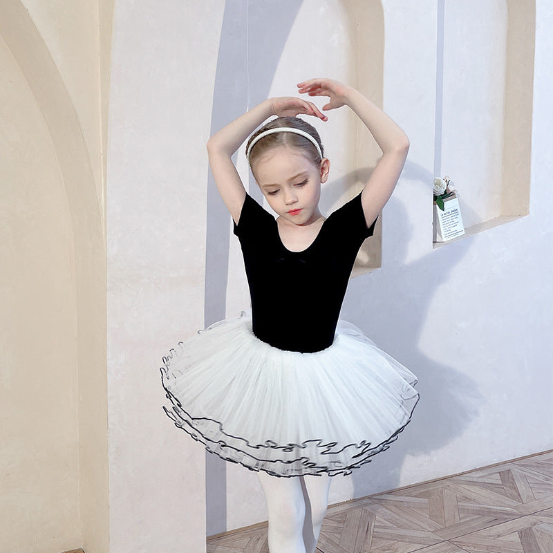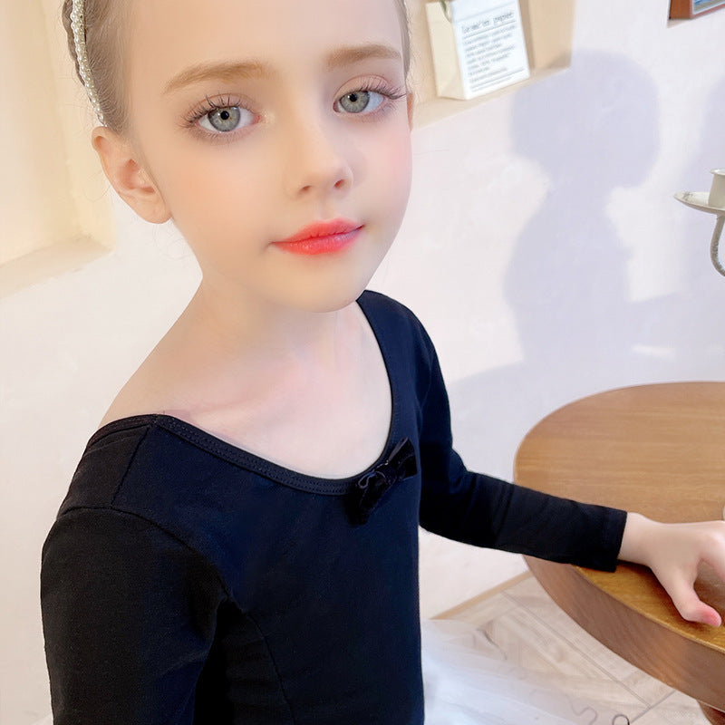 Black Backless Girls' Ballet Dress 4 Layers Silk Dance Clothes Grading Split Ballet Dress for Kids Leotard Gymnastics Long Sleeve