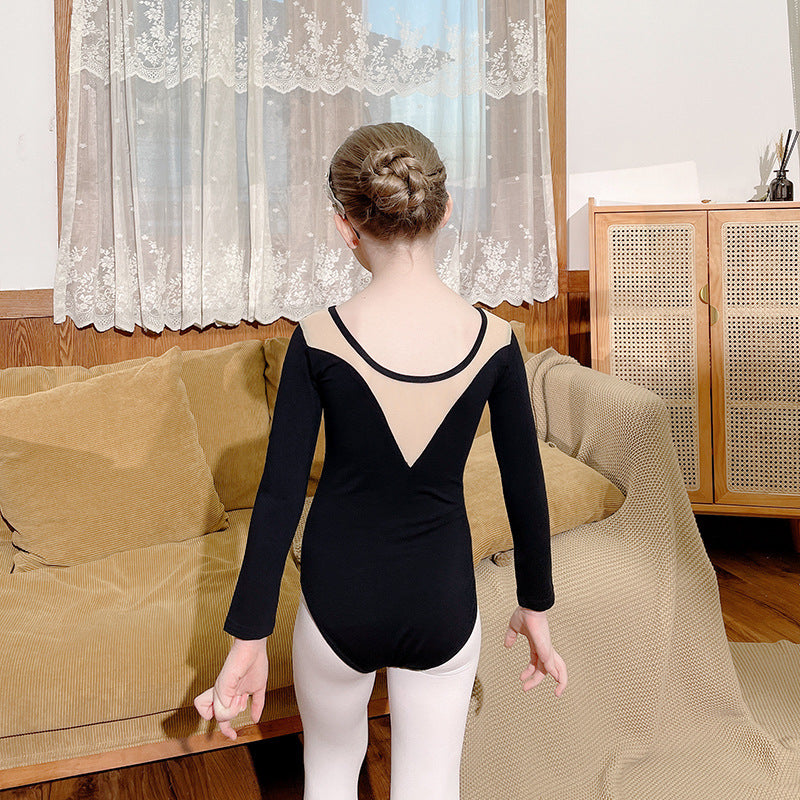 Black Dots Girls Training Skirt Children's Dance Clothes Grading Split Ballet Dress Kids Leotard For Gymnastics Long Sleeve Soft