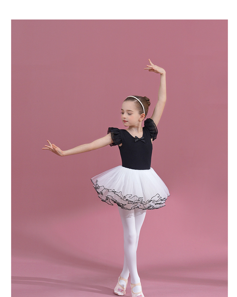 Black kids Ballet Leotards with white 4 layers of gauze white Skirt Detachable Tutu Dance Costume Flutter Sleeve cotton