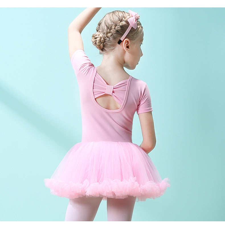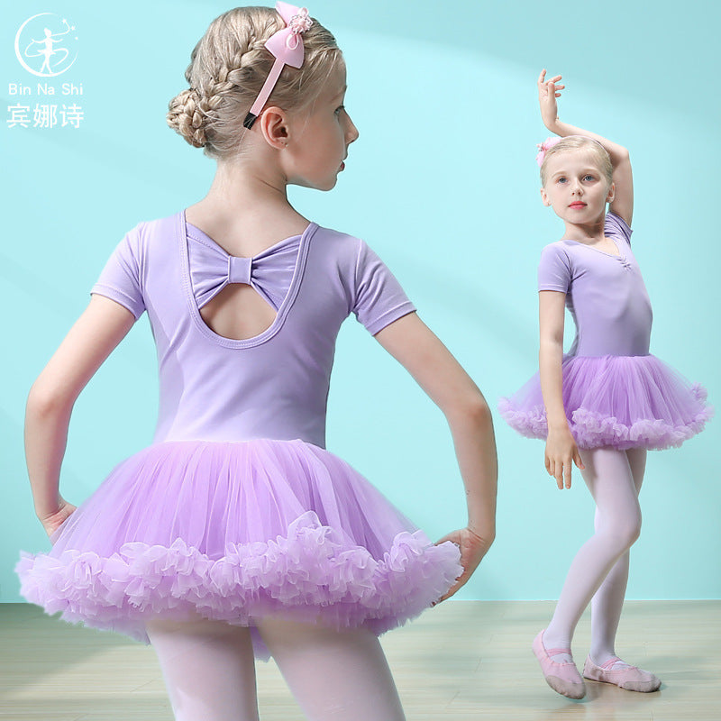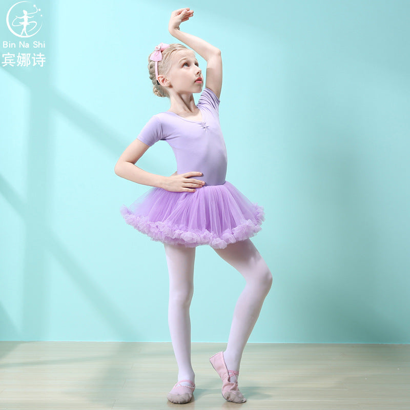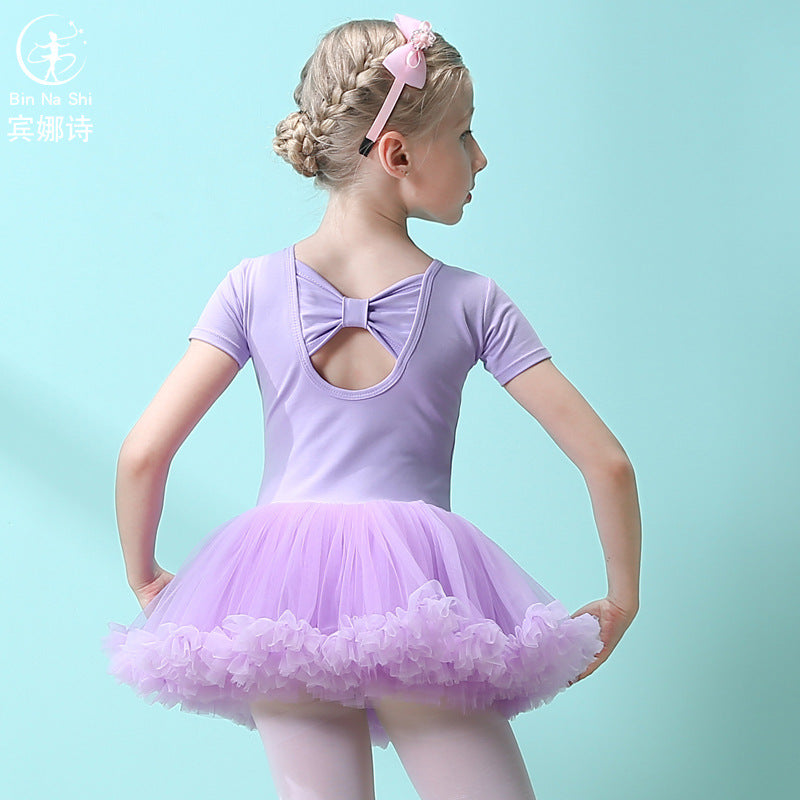 Children purple Ballerina Outfit Girl cotton short sleeve Ballet Princess dress Dance Performance Clothing