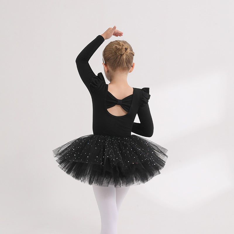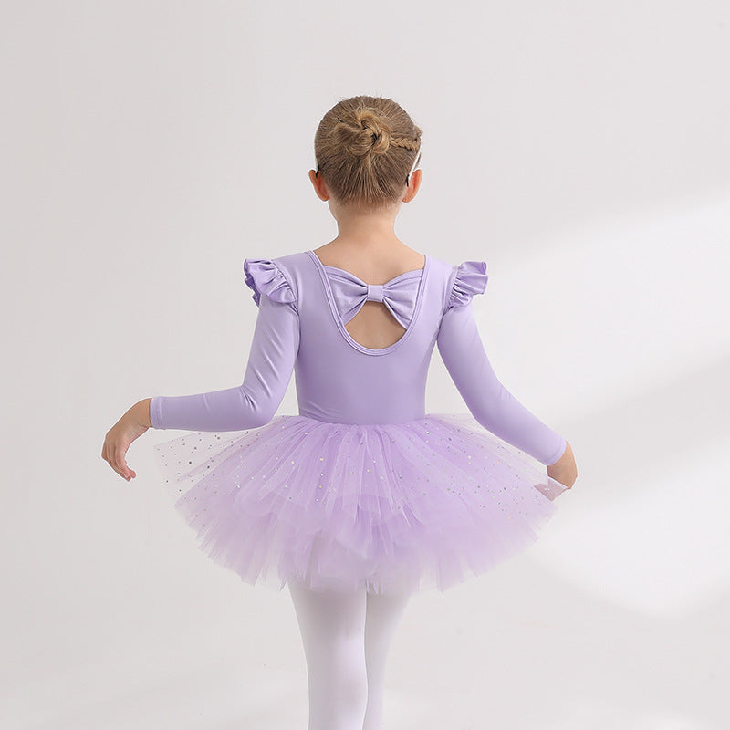 Children sparkly chiffon Dance Dress Separate Detachable Tutu Dance Costume cotton short/long sleeve risscross Back