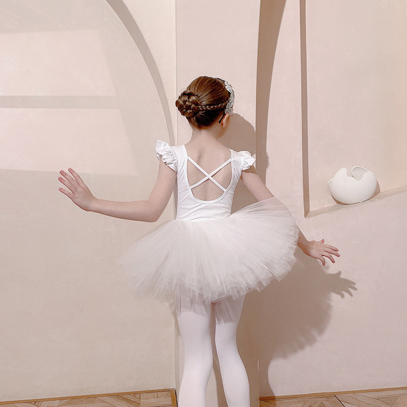 Children white ballet Princess dress Detachable Tutu Dance Costume girls cotton Ballet Leotards with Gauze Skirt
