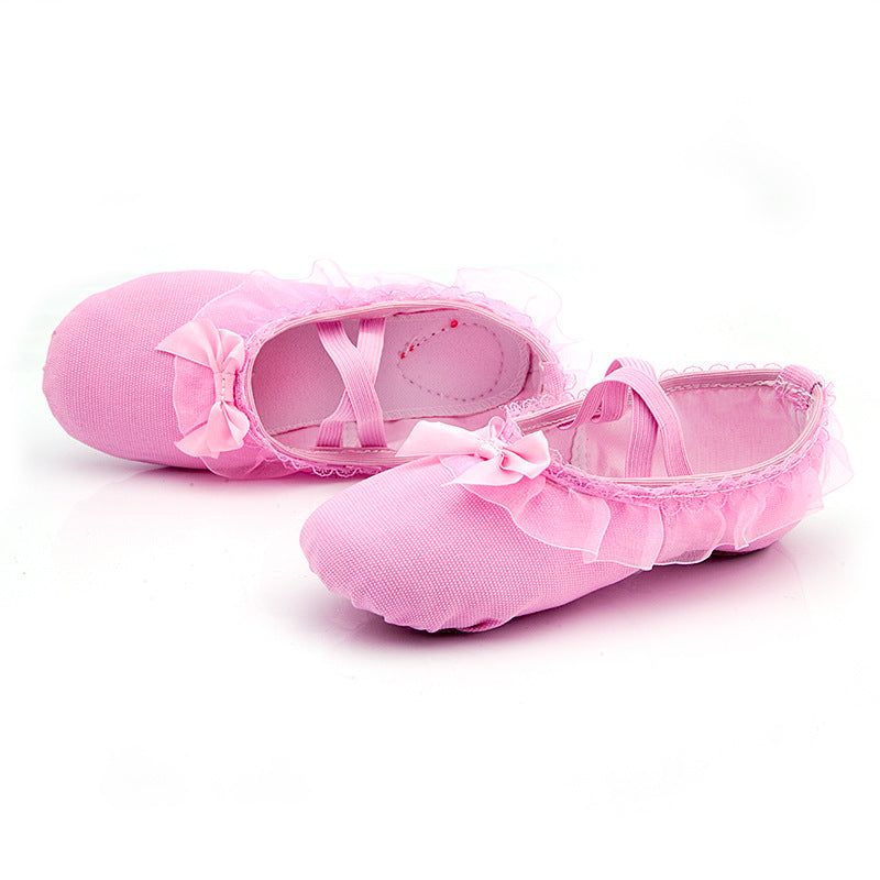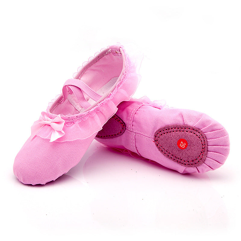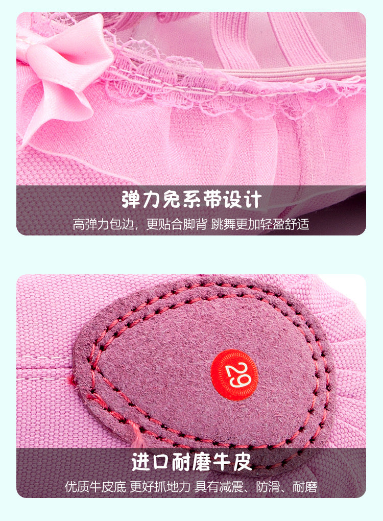 Children's lace-up dance shoes made of canvas, with no laces, elasticated ballet shoes for dancing pink cat-ear shoes