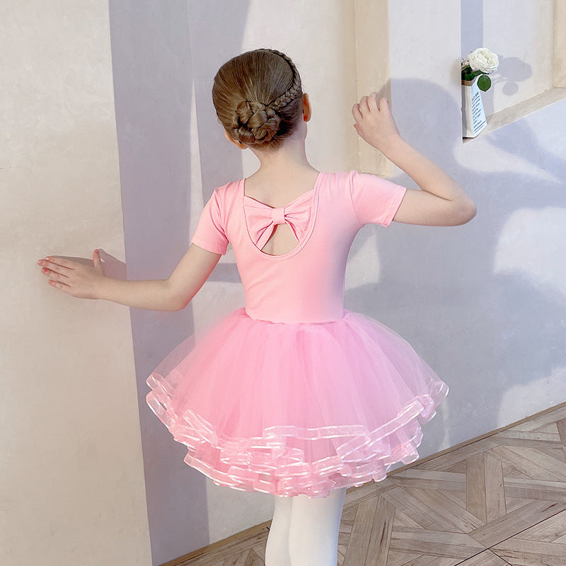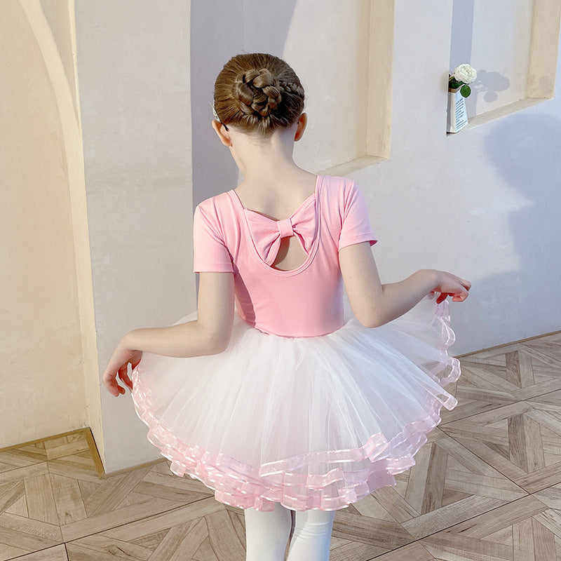 Chilren Leotard dance Dress pink Detachable Butterfly Back Princess dress girls Training Performance Costume